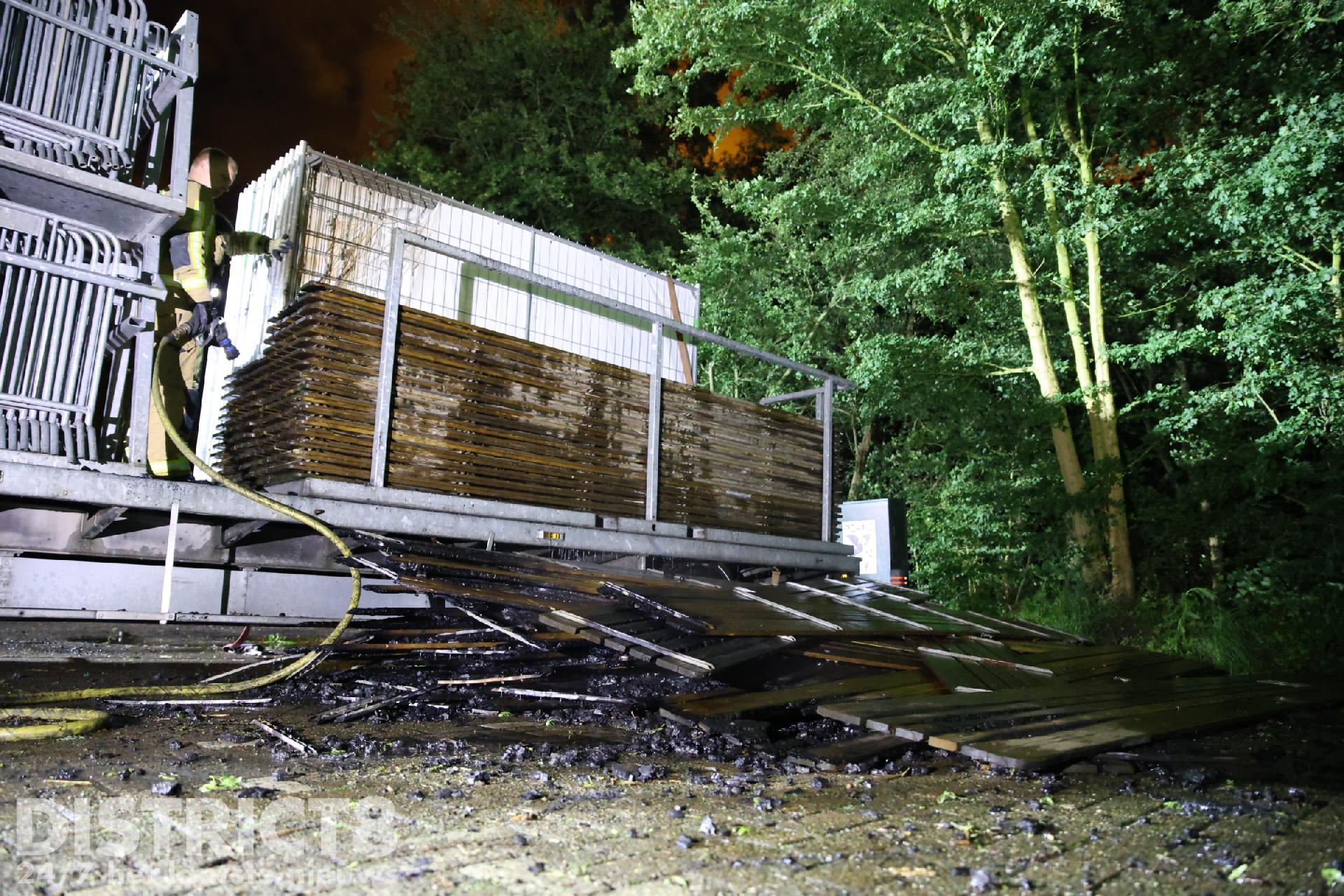 Delft – Dinsdagavond 10 juni is er omstreeks 23:50 brand gesticht bij een stapel houten planken die op een aanhanger lagen. De aanhanger stond geparkeerd op een parkeerplaats aan de Tweemolentjeskade in de Delftse Hout.