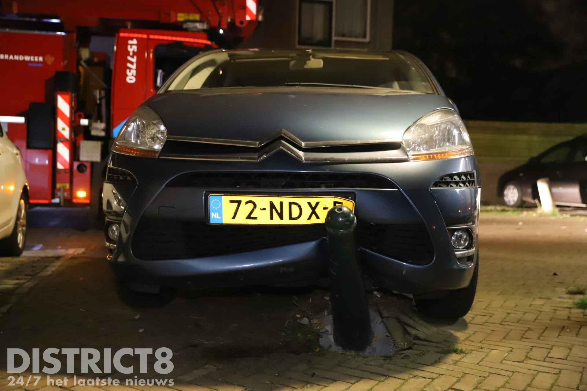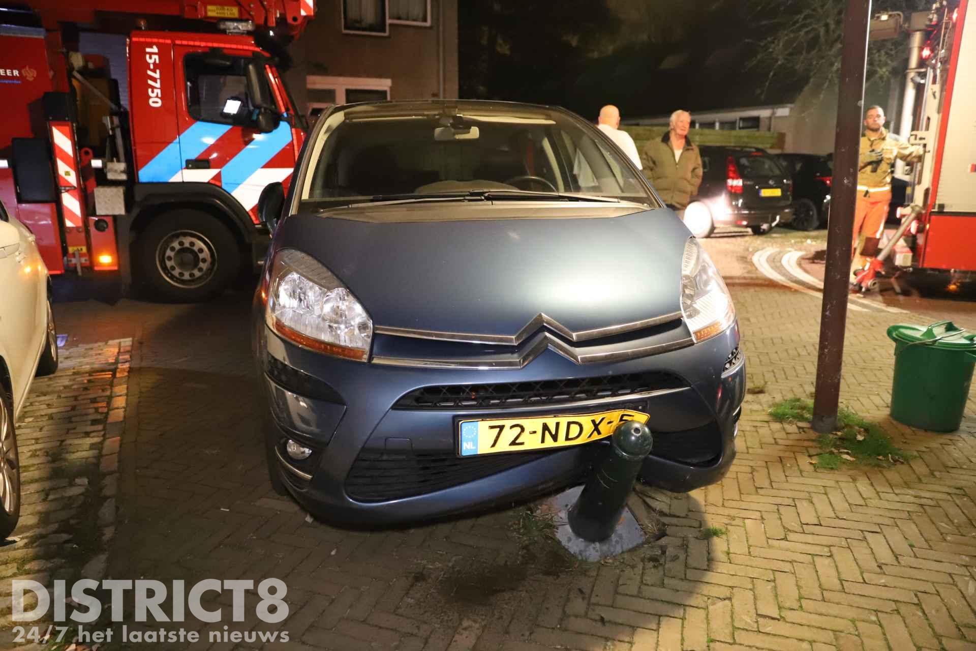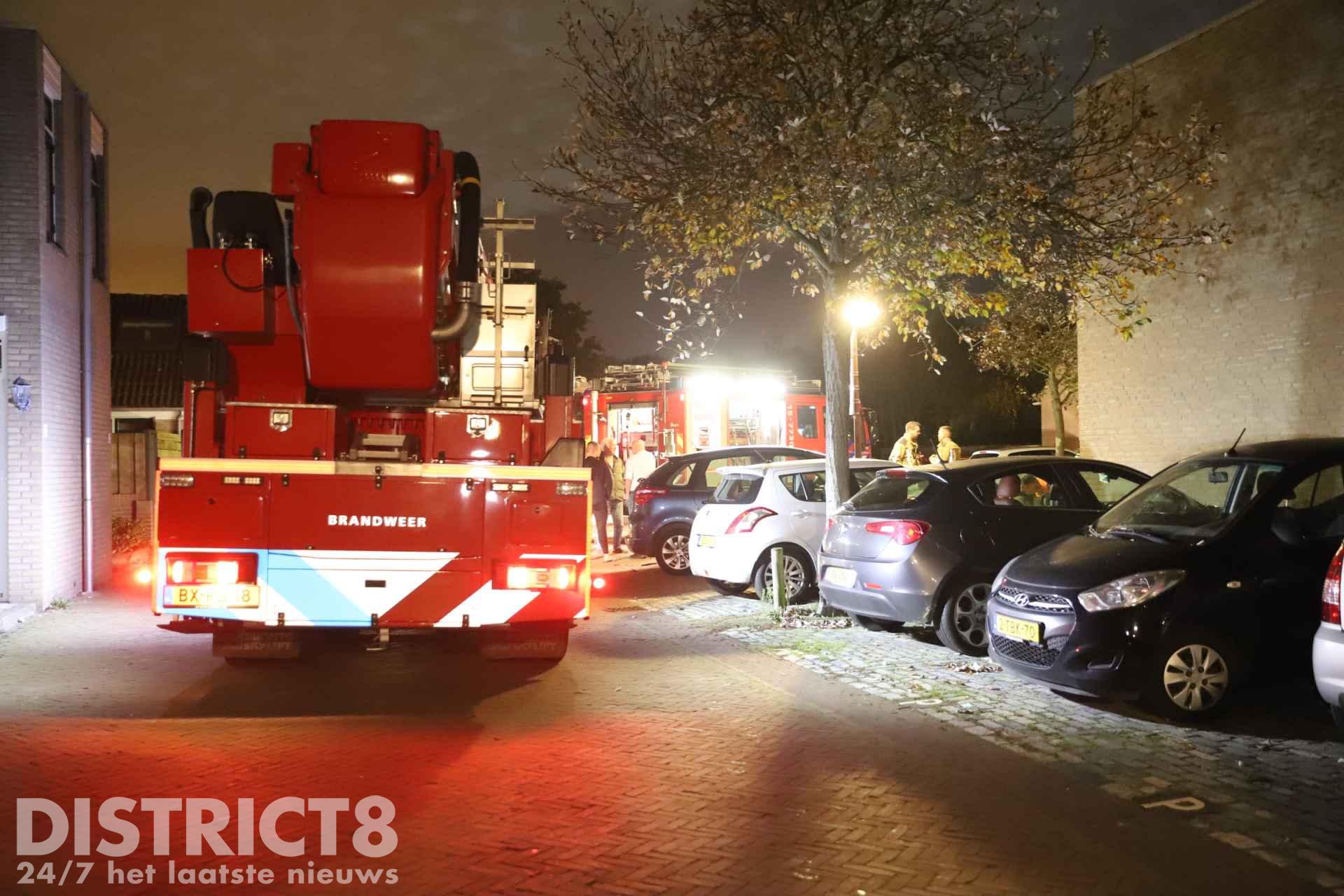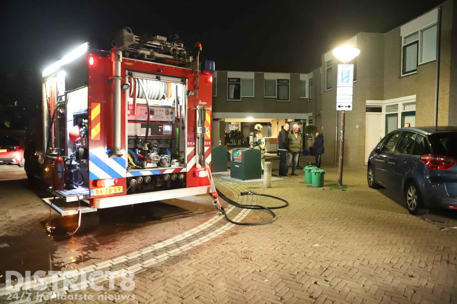 Bij aankomst bleek dat naastgelegen straten al blauw stonden van de rook. Een verkeerd geparkeerde voertuig liep schade op toen de brandweer de straat in reed.