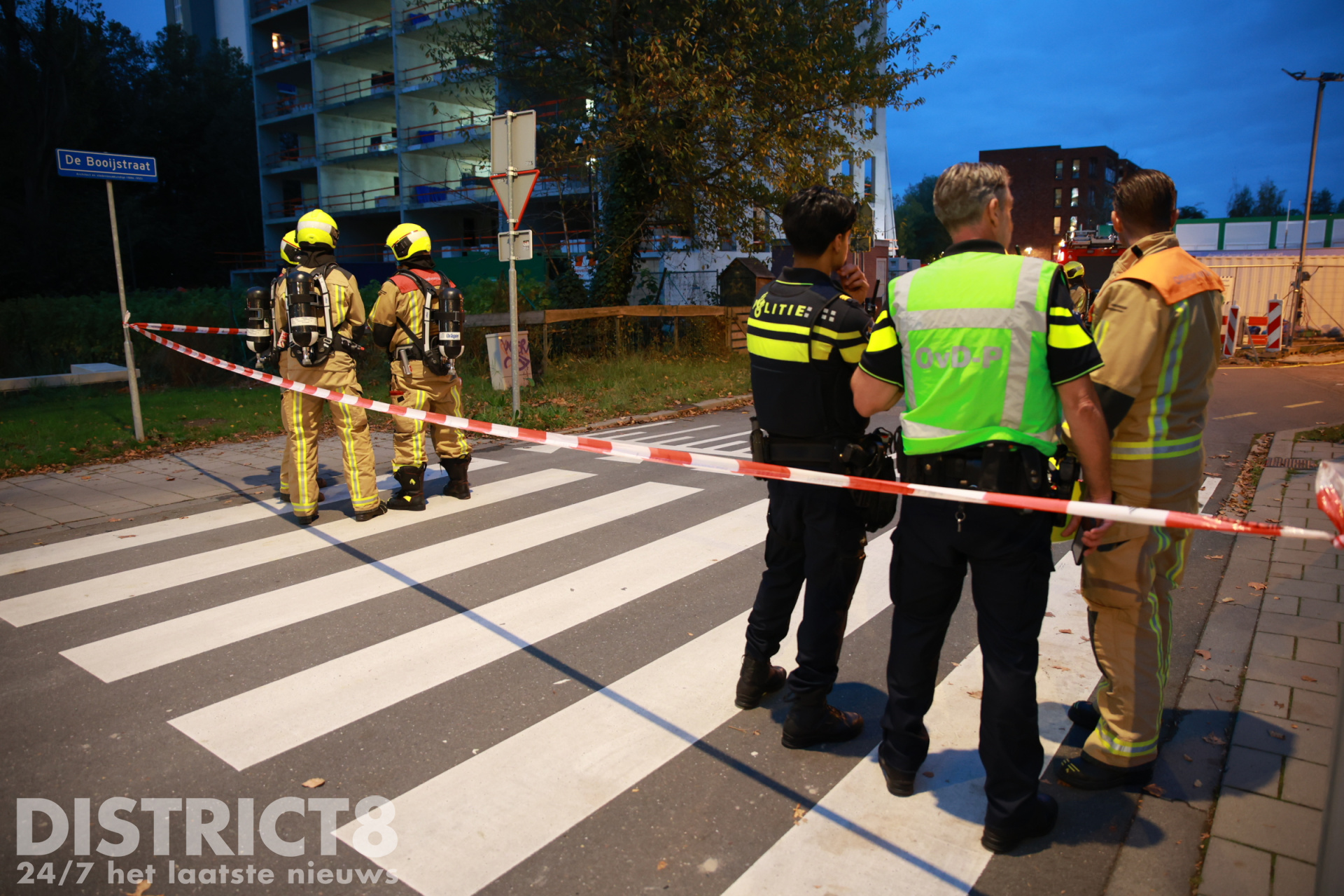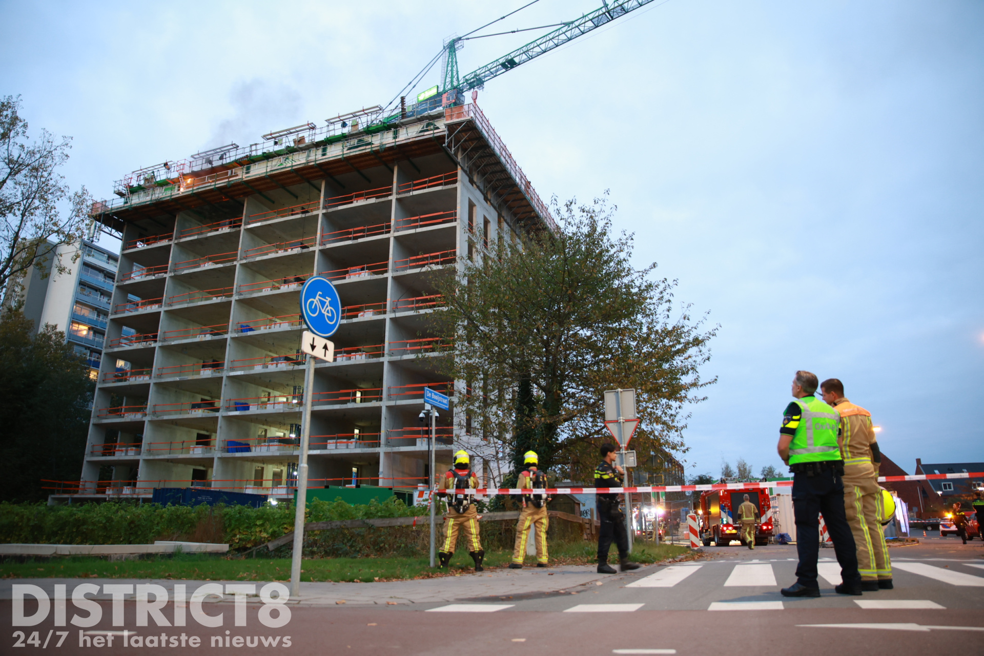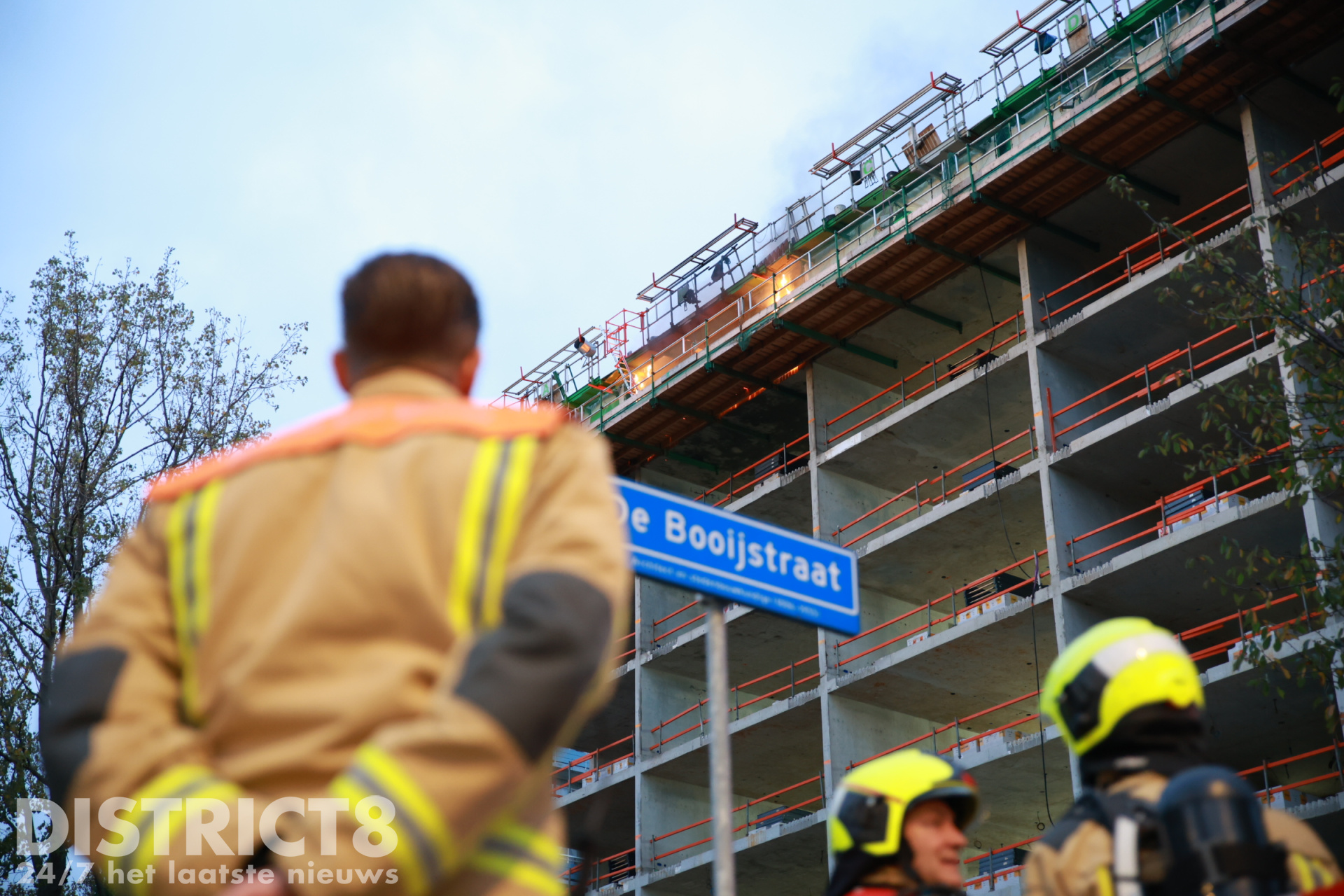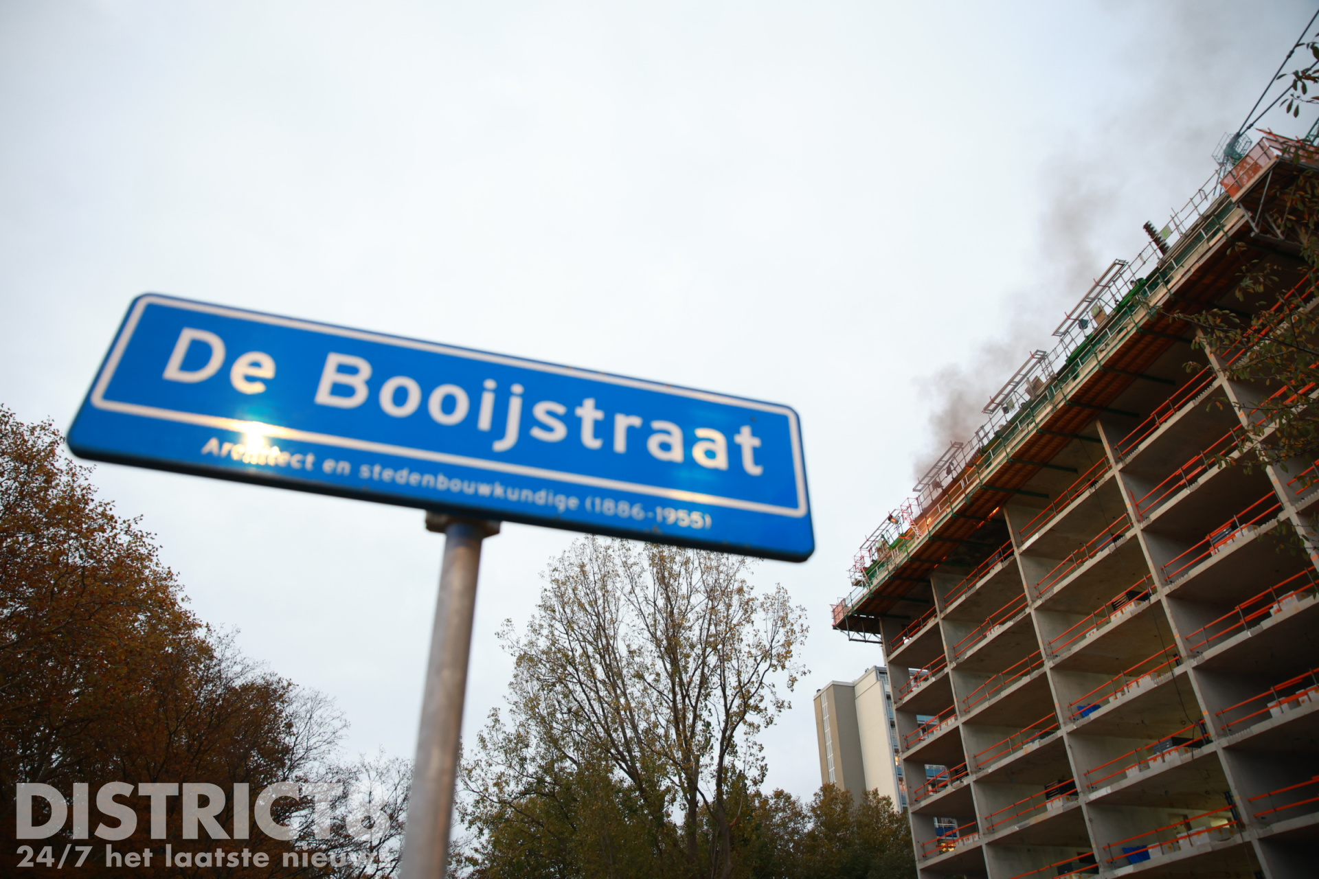 Delft – Vrijdagavond 17 oktober werden de hulpdiensten opgeroepen voor een brand in een flatgebouw in aanbouw aan de De Booijstraat in Delft. Rond half zeven werd de brand ontdekt, waarbij flinke rookpluimen zichtbaar waren. Ook een politiehelikopter cirkelde enige tijd boven het incident.