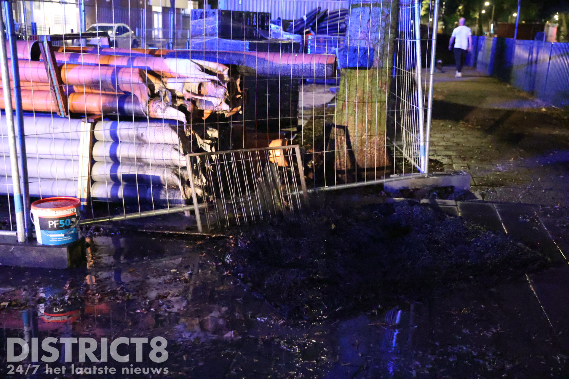 Den Haag – Op zaterdagavond 7 september is er brand uitgebroken op een opslagterrein aan de Heilostraat in Den Haag. Het terrein is tijdelijk ingericht op de parkeerplaatsen en de stoep langs de straat, en wordt gebruikt voor de opslag van materialen ten behoeve van rioleringswerkzaamheden in de wijk.