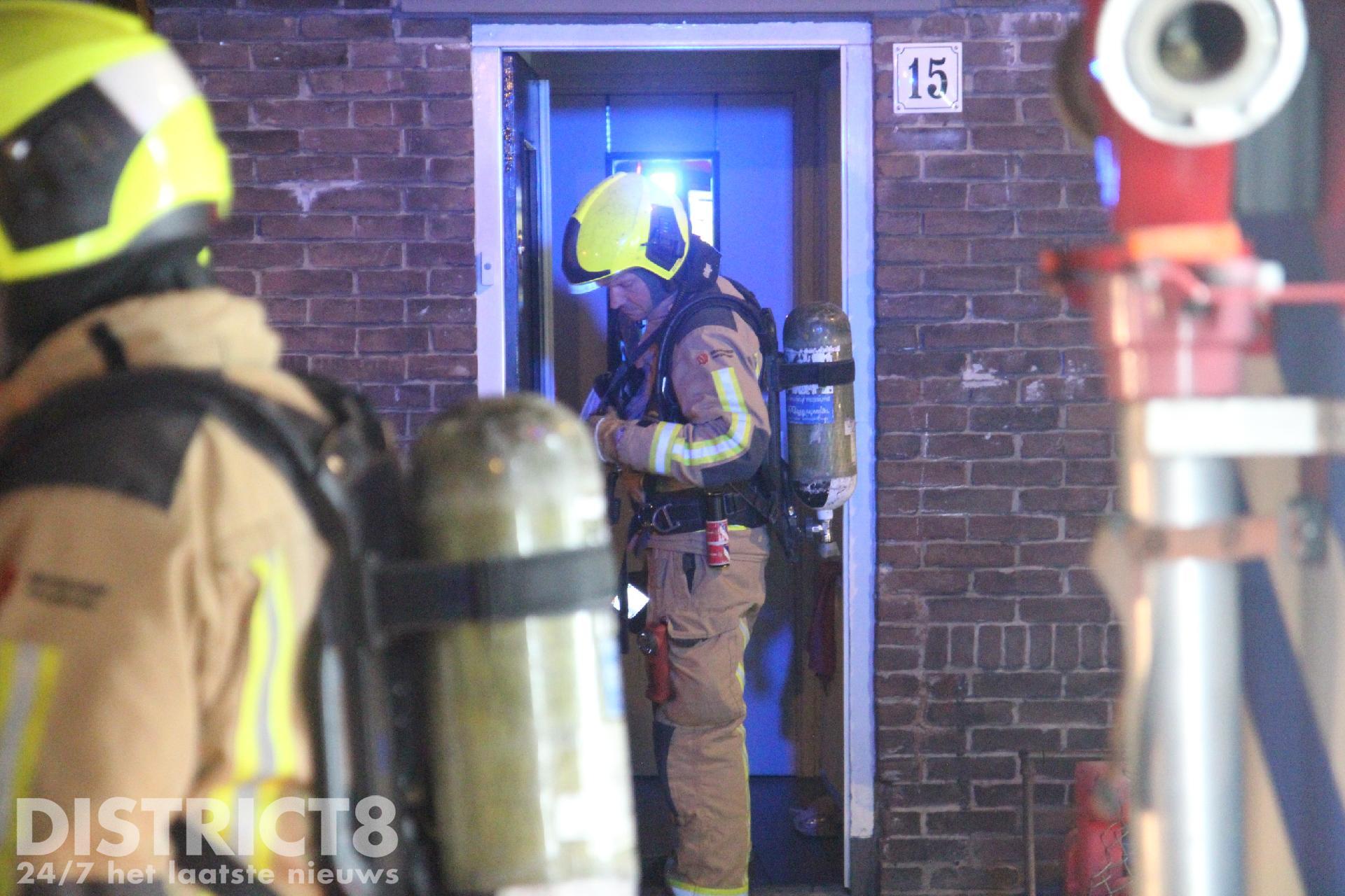 Er is sprake van veel rookontwikkeling, ook zijn meerdere bewoners hun huis uit vanwege de brand. De brandweer heeft opgeschaald naar middelbrand.