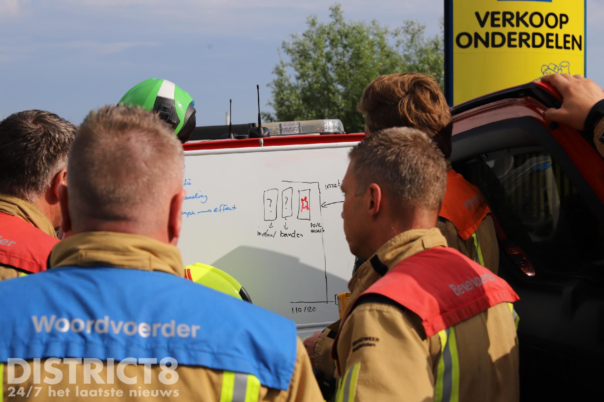 De brand is wel onder controle, maar nog niet meester. Dit betekent in dit geval dat er nog steeds rekening gehouden wordt met het ontbranden van de accu's. Er is op dit moment een kraan bezig om de accu's… meer info: https://t.co/c5Zw9qi9Zx