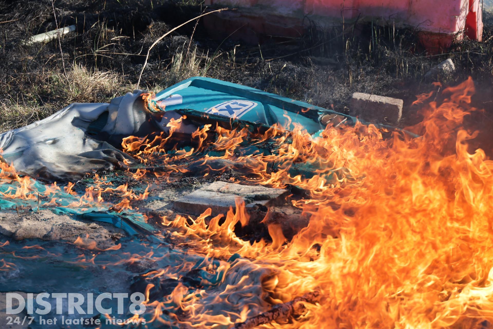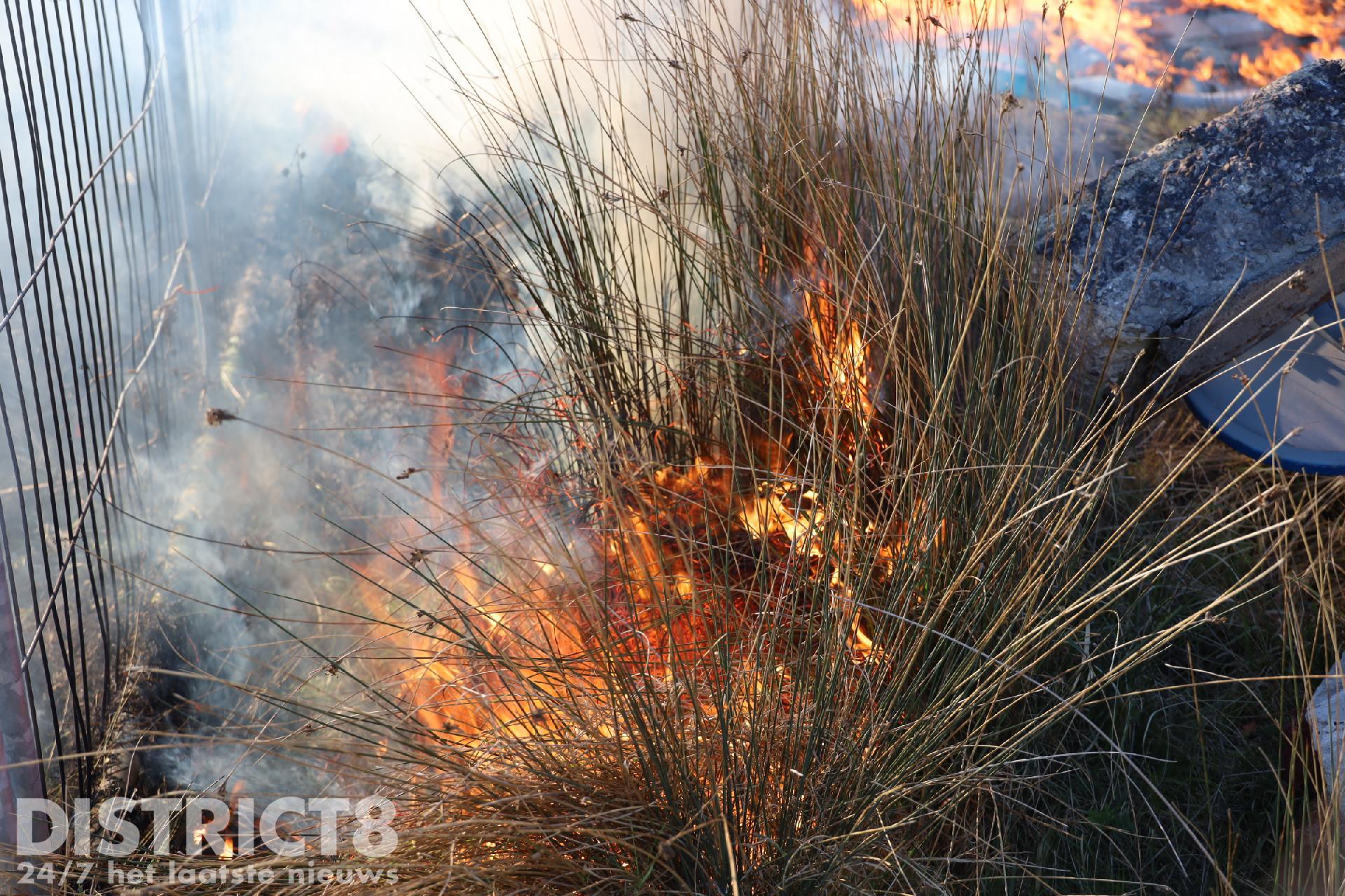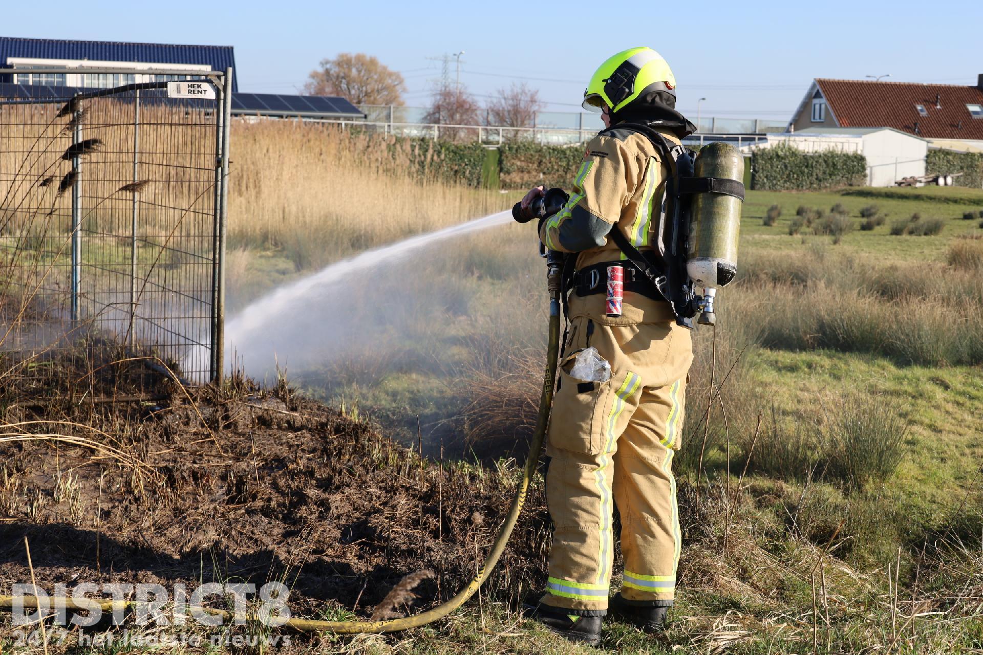 Ter plaatse bleek er een dixi in de brand te staan, het vuur sloeg over naar een bosschage waar veel riet stond.