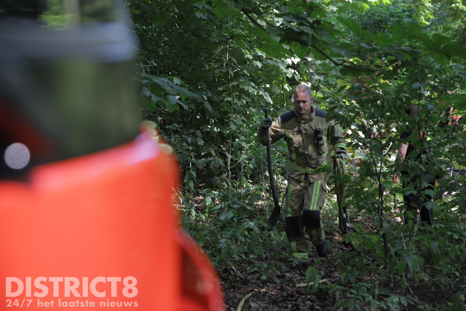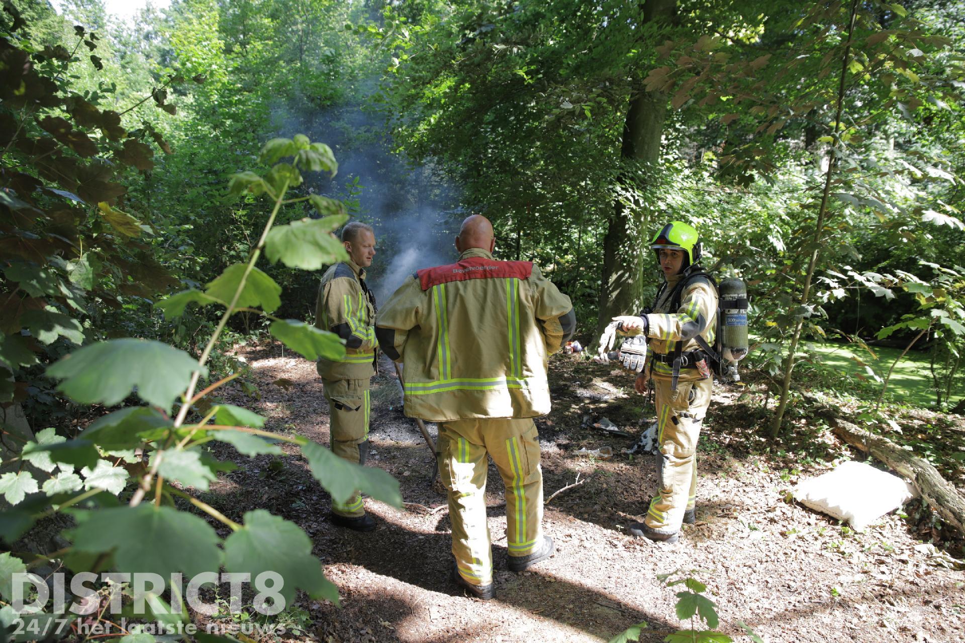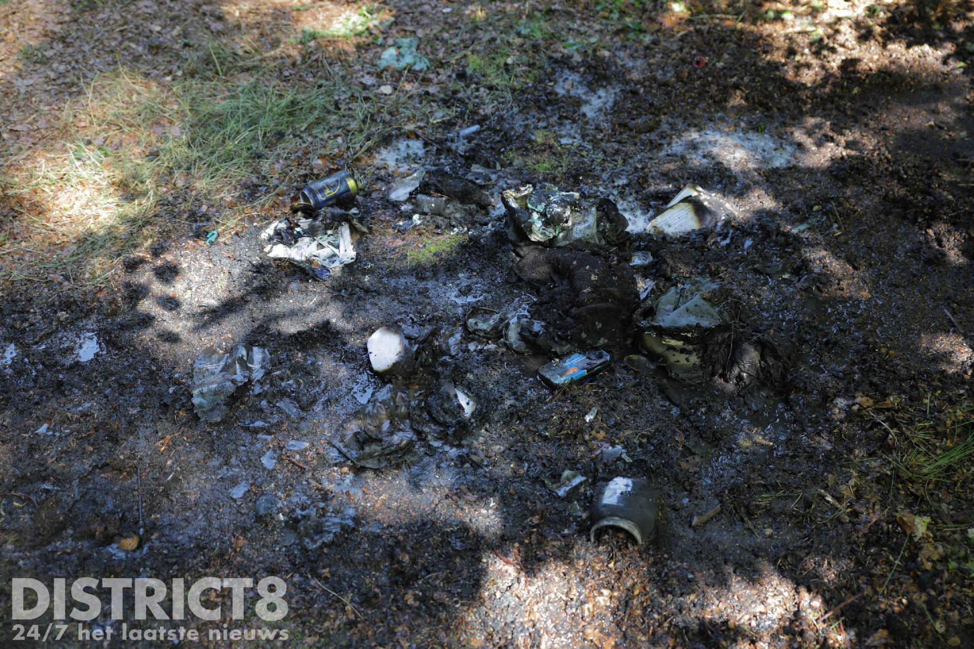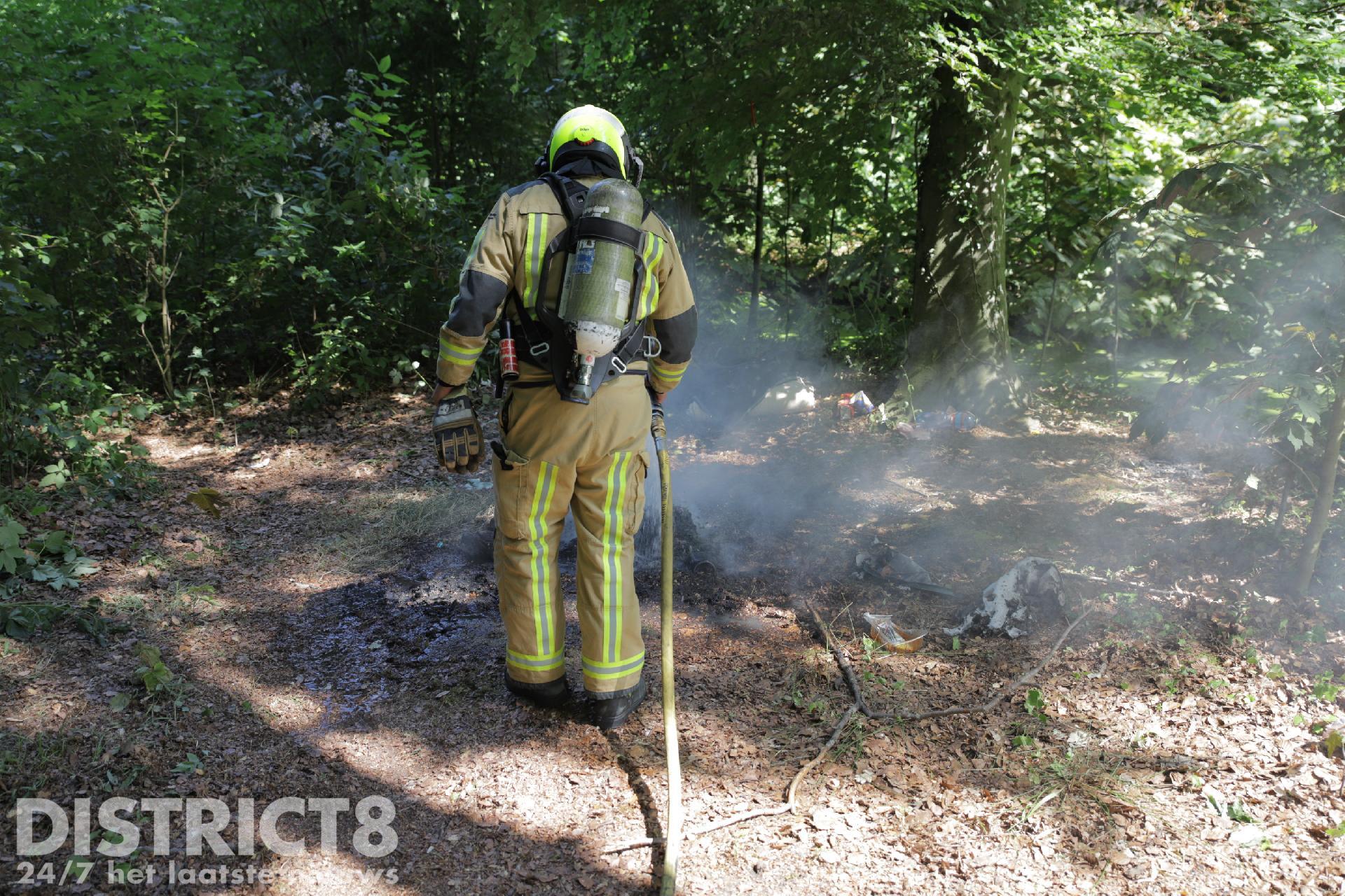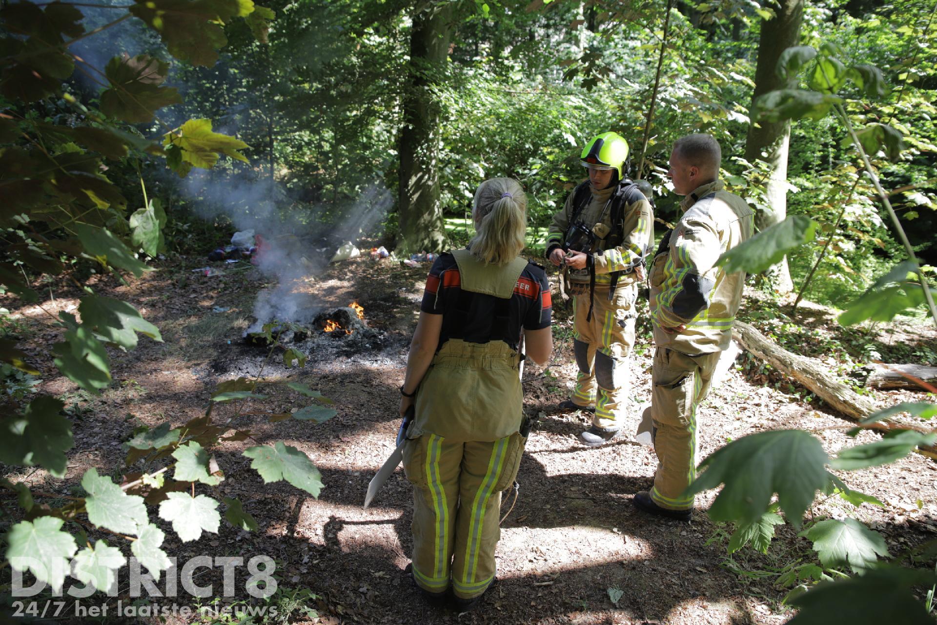 De brandweer heeft de slang uitgerold en het brandje snel geblust. De politie heeft de spullen die hier lagen gecontroleerd.