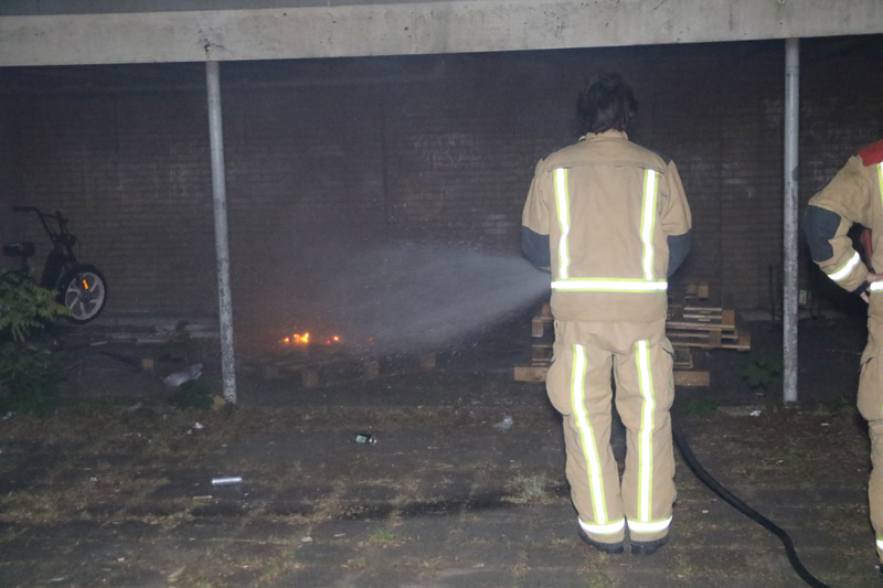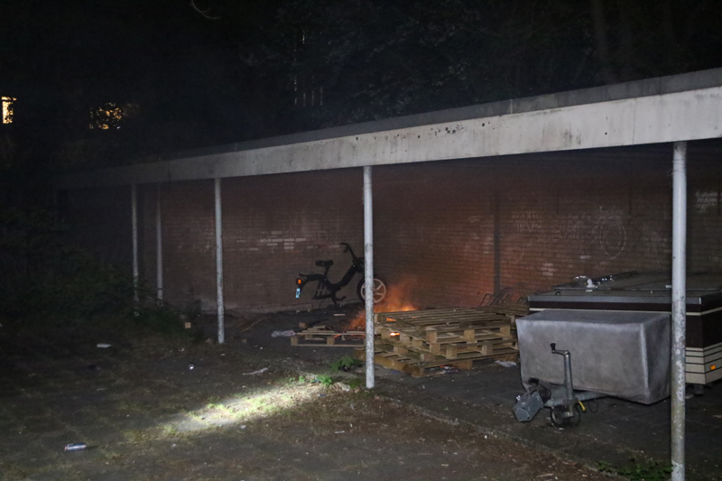 Den Haag – Aan de achterzijde van een kinderopvang aan Het Kleine Loo in Den Haag is in de nacht van zondag op maandag 27 april brand gesticht. Onder een overkapping stonden enkele pallets in brand.