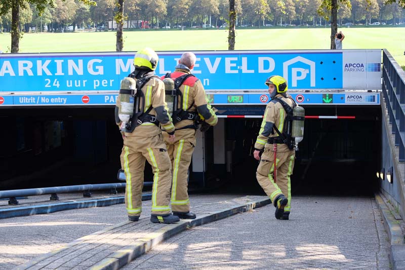 Den Haag- De brandweer kreeg vrijdagochtend een melding van een brand in/bij de parkeergarage onder het Malieveld in Den Haag.