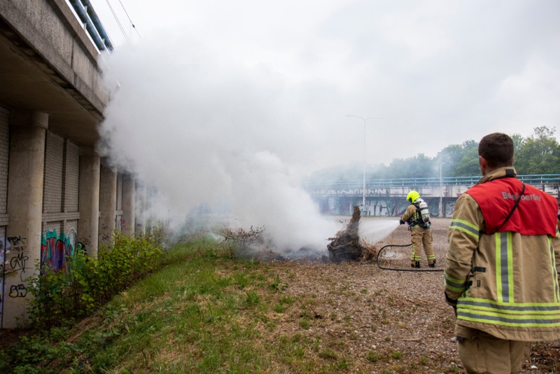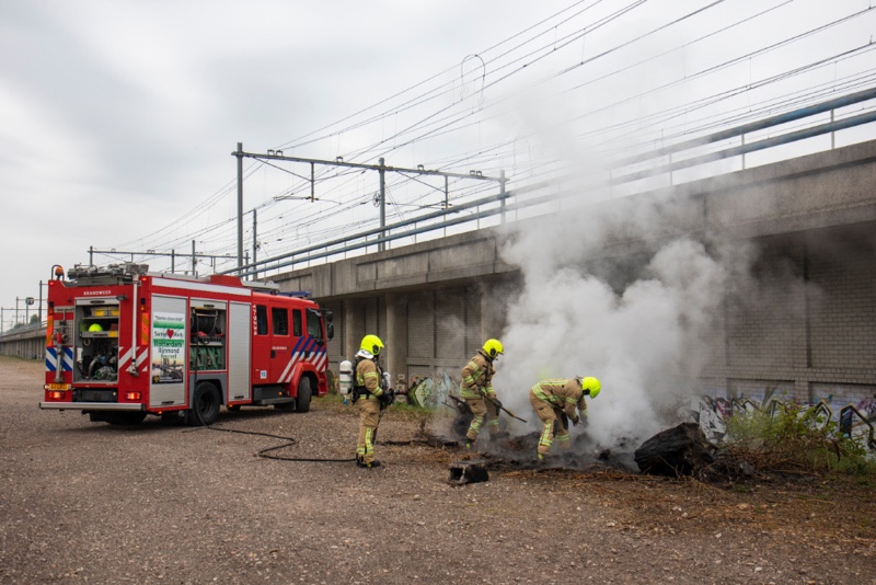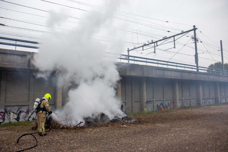 Brandje langs het spoor geblust Horvathweg Rotterdam
