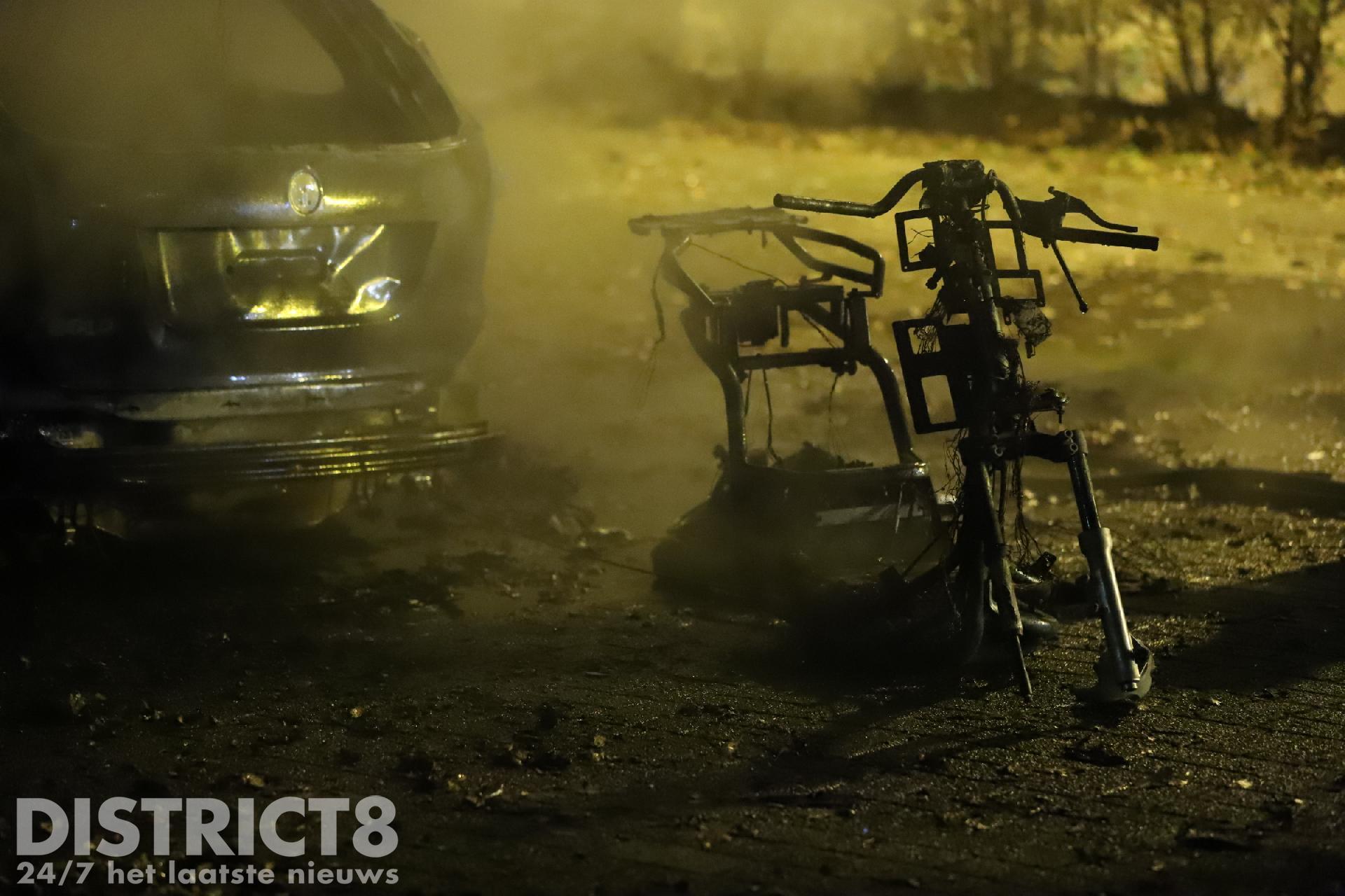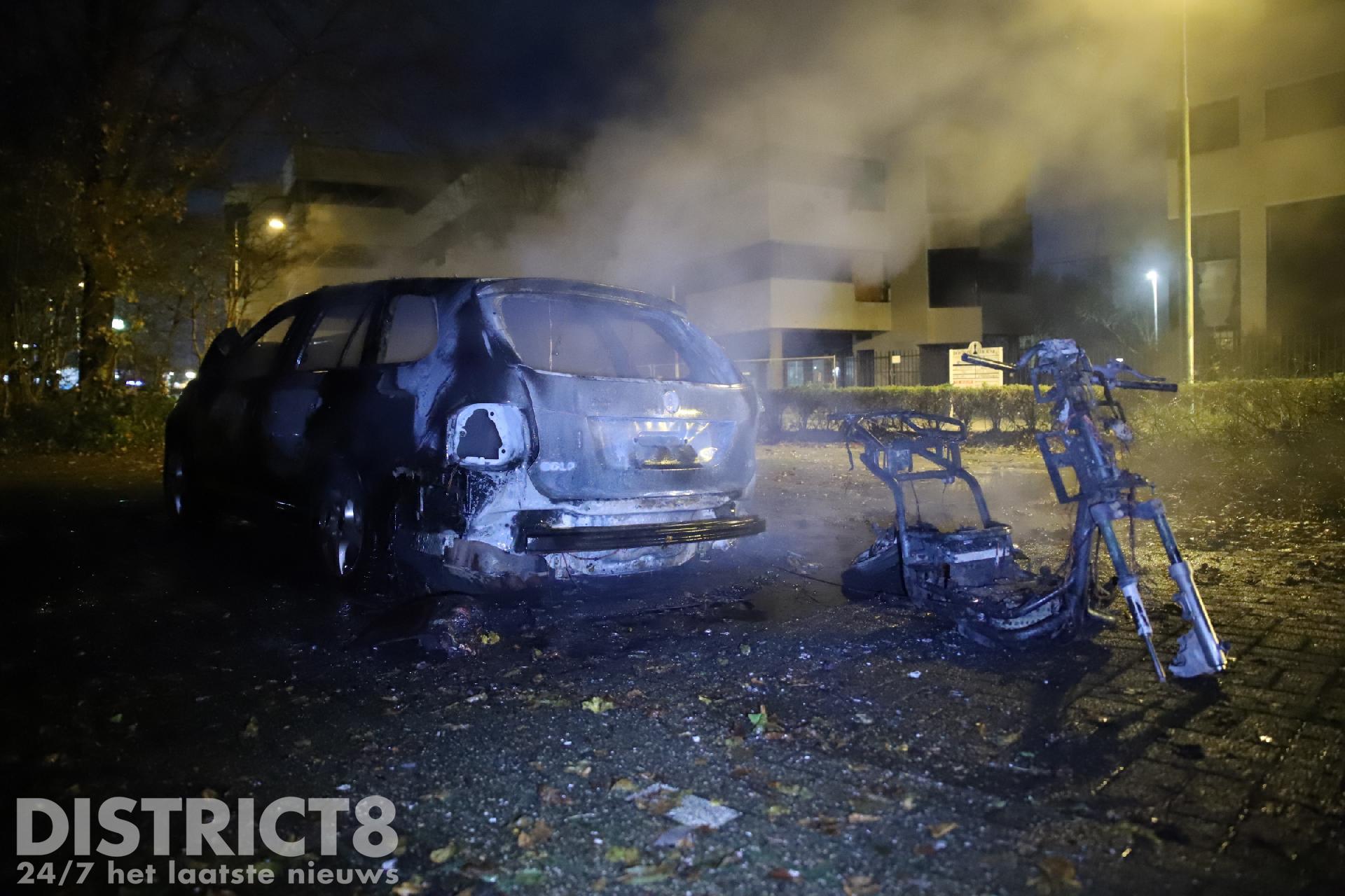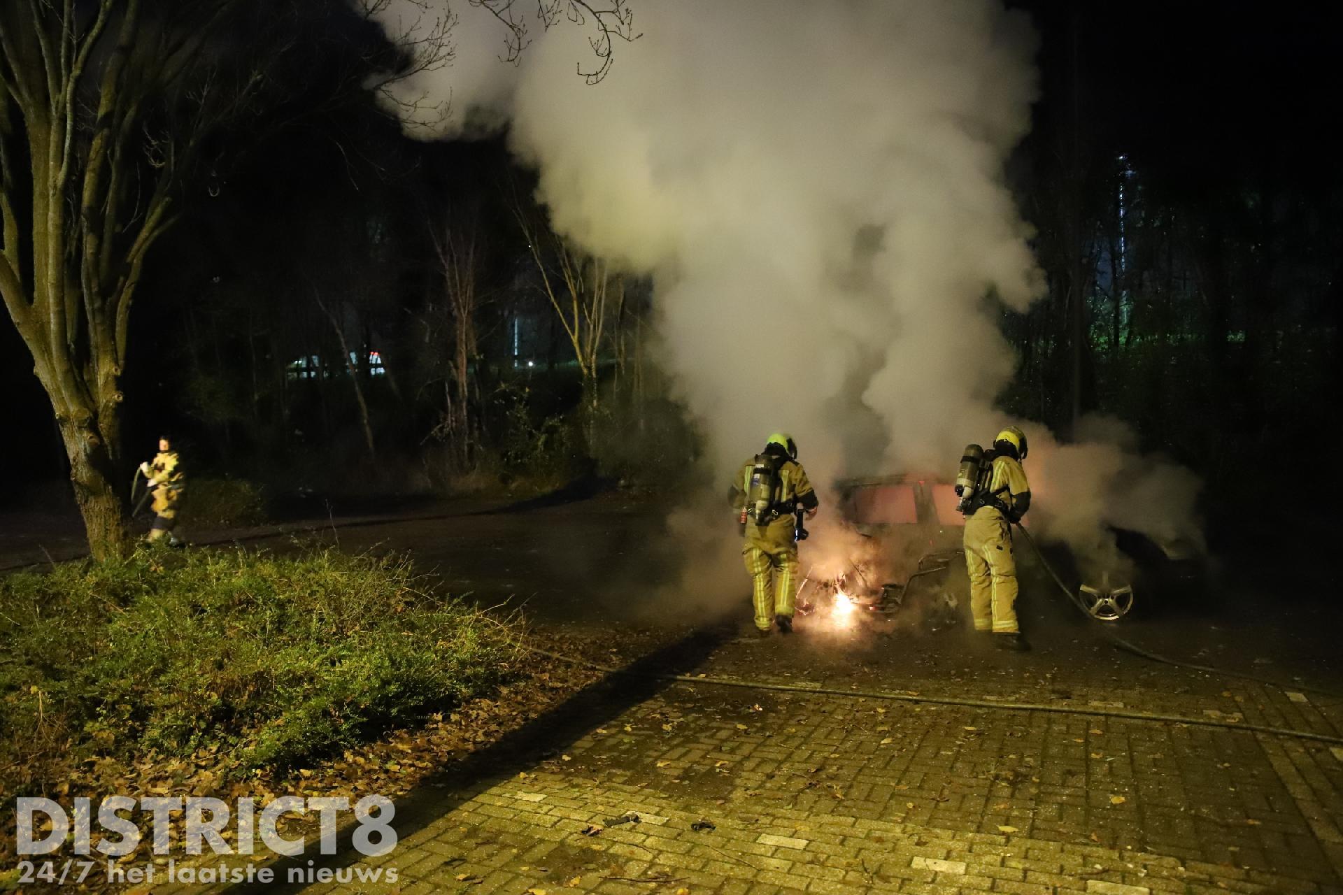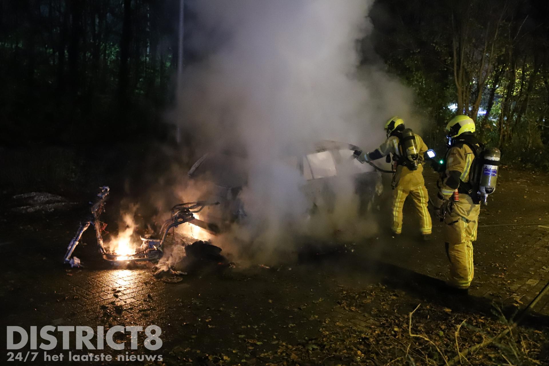 Toen de brandweer ter plaatse kwam stond de auto al grotendeels in brand en sloegen de vlammen uit de auto. De brandweer is hier ook direct begonnen met het blussen van de brand, tijdens het blussen werd duidelijk dat naast de auto een brandende deelscooter stond. De brandweer heeft de deelscooter weggetrokken bij de auto. Hierna heeft de brandweer zowel de auto als de deelscooter geblust.