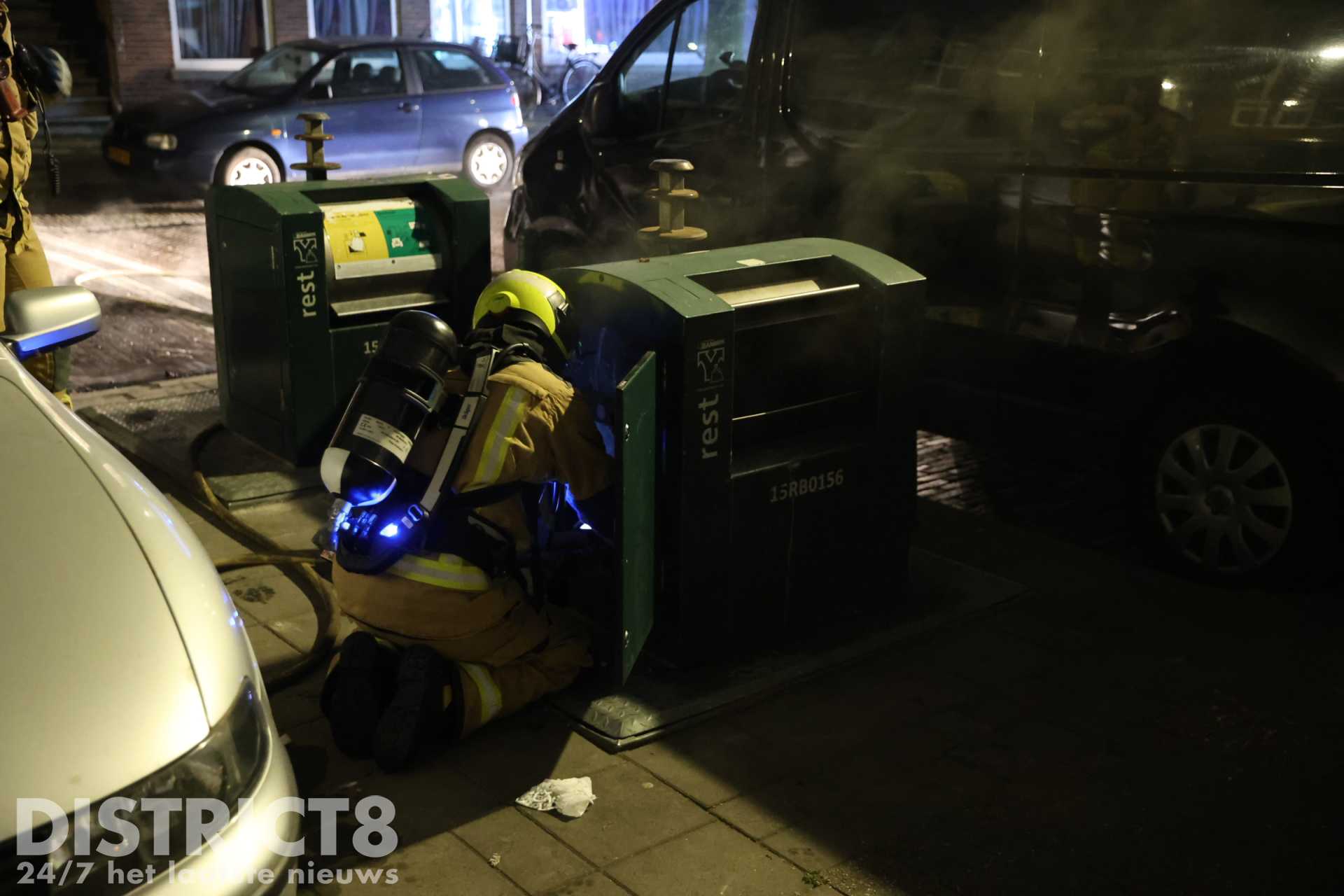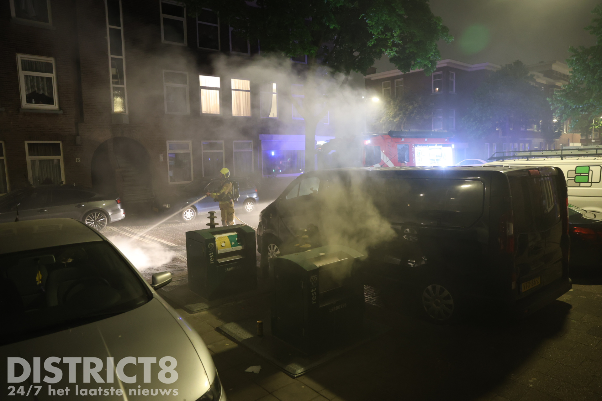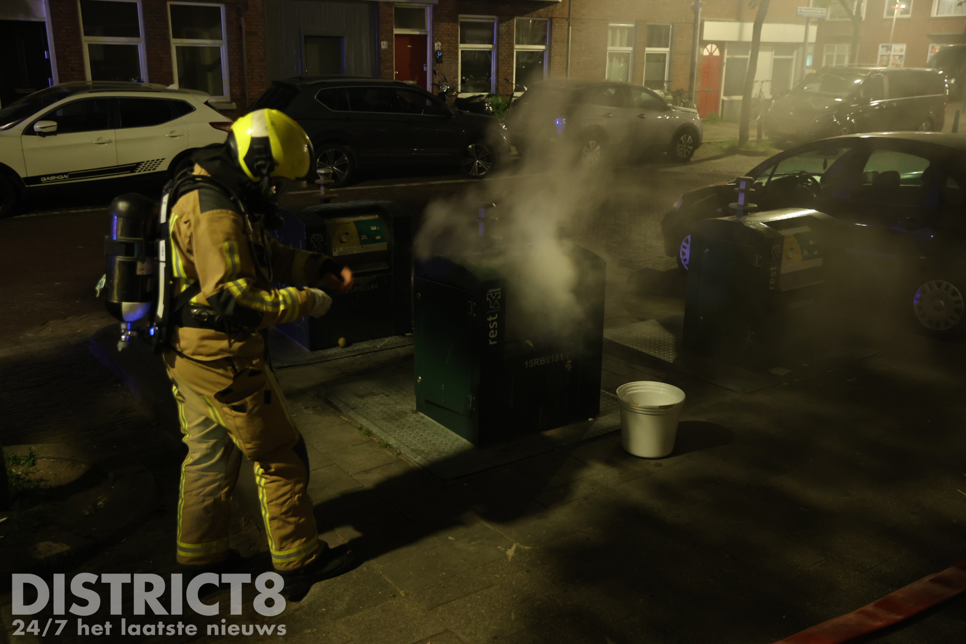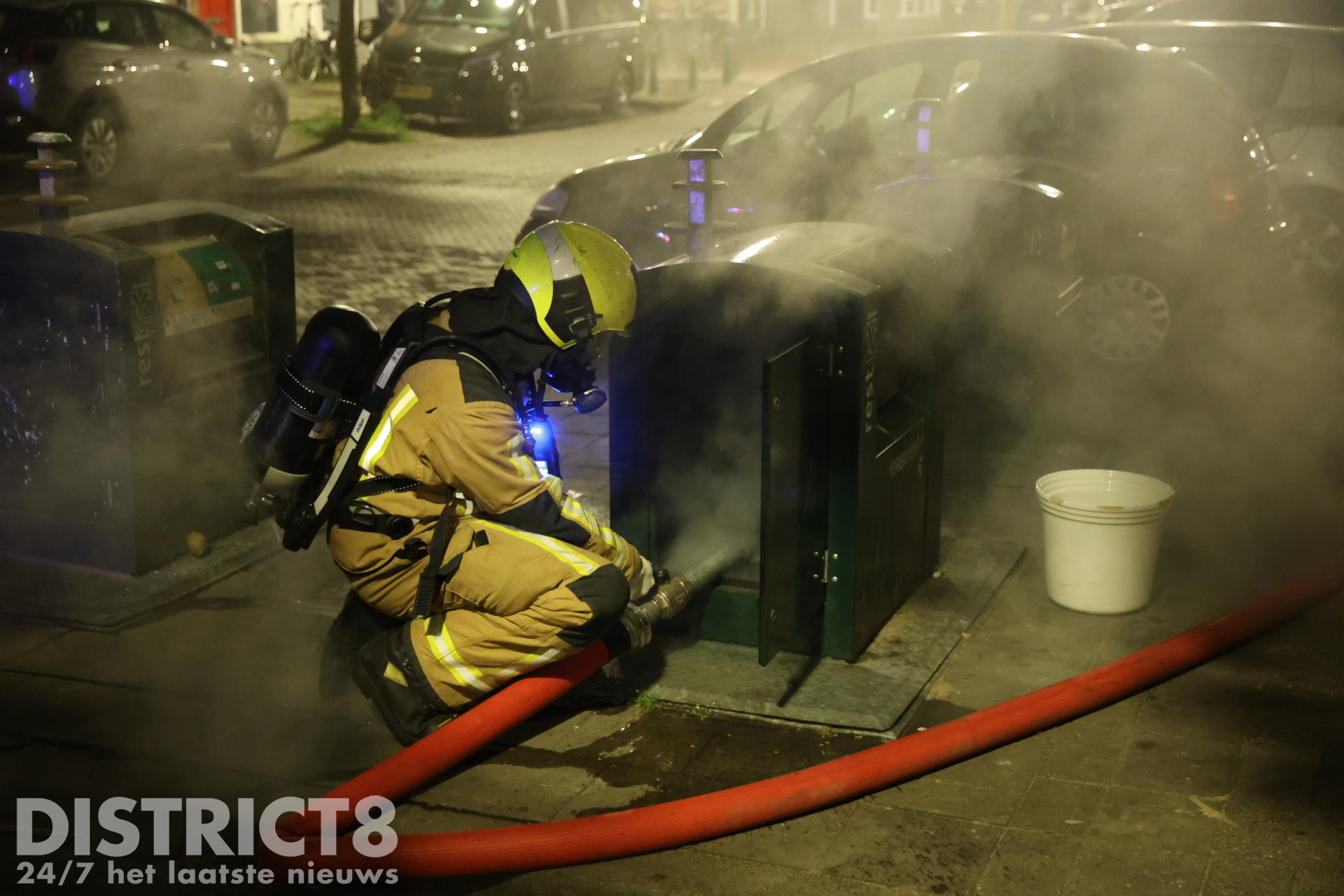 Even na half drie werd de brandweer gealarmeerd vanwege een brand in een ondergrondse container in de Haagse wijk Laakkwartier-West. Al snel bleek dat het niet om één brand ging.