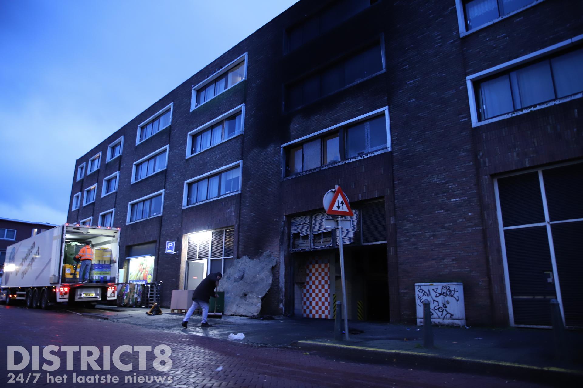 De brand veroorzaakte veel rook in de supermarkt, de naastgelegen parkeergarage en de woningen erboven. De woningen boven de supermarkt zijn korte tijd ontruimd geweest. Na het ventileren en meten mochten de bewoners terug naar hun woning.