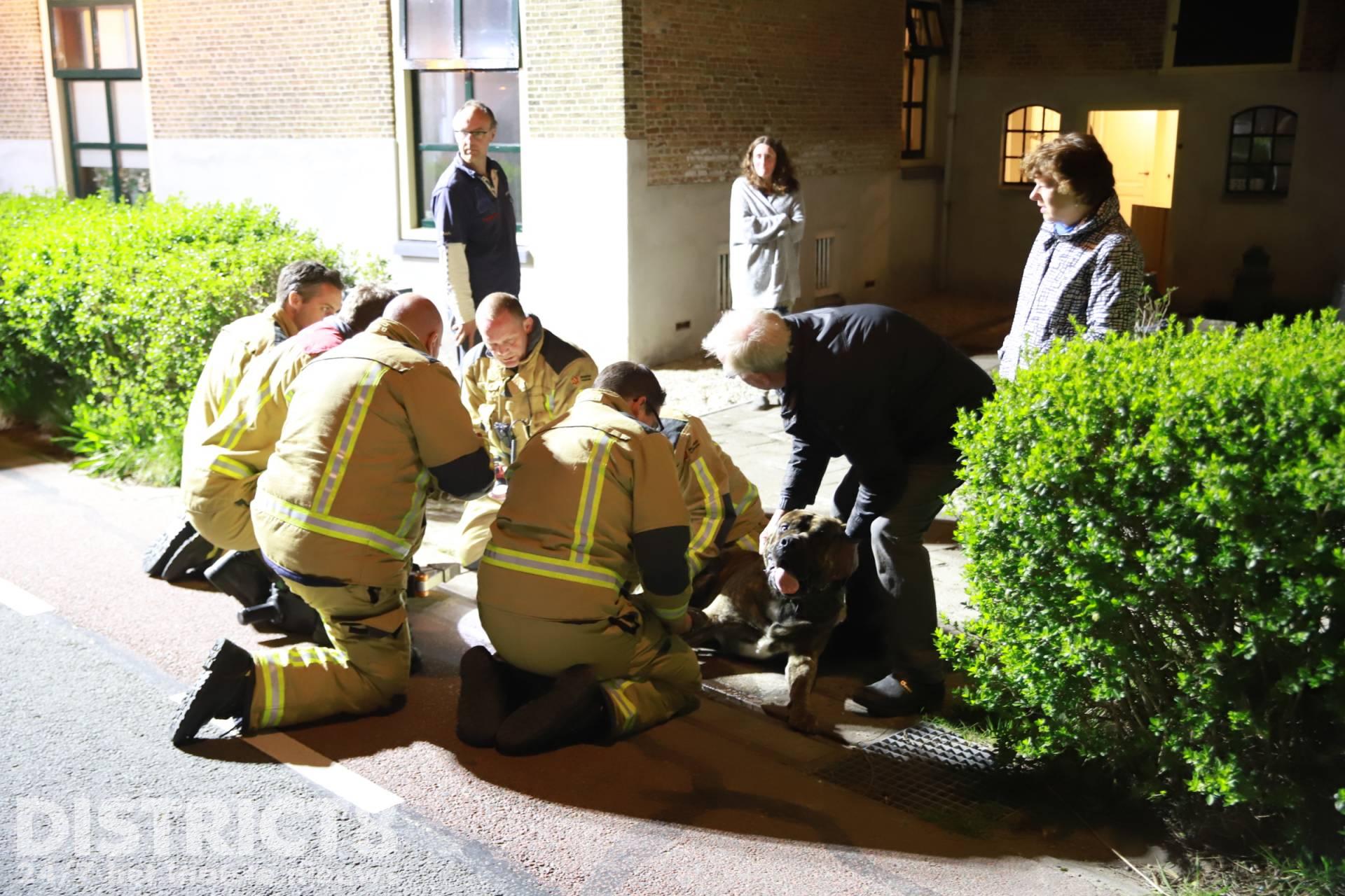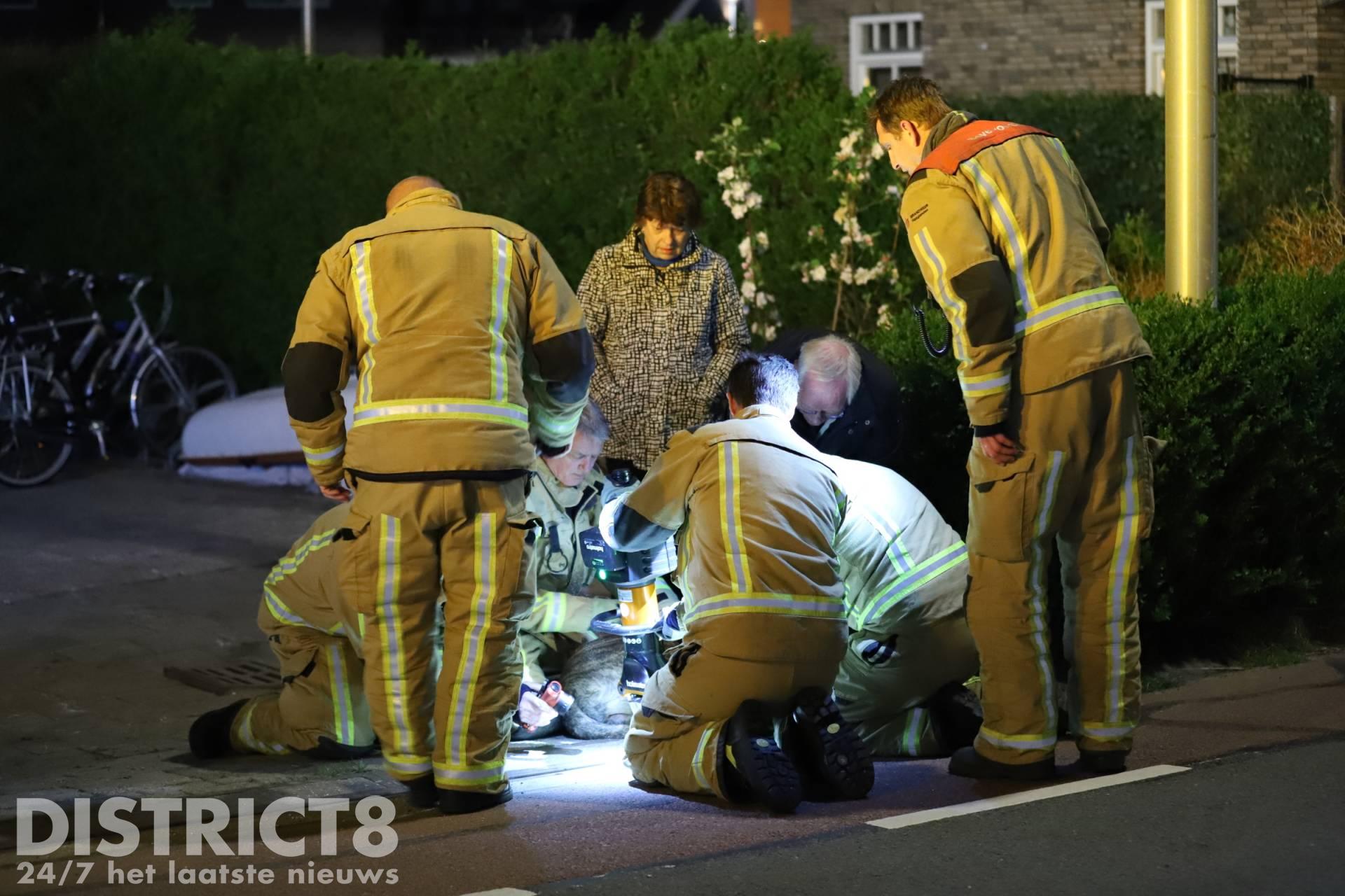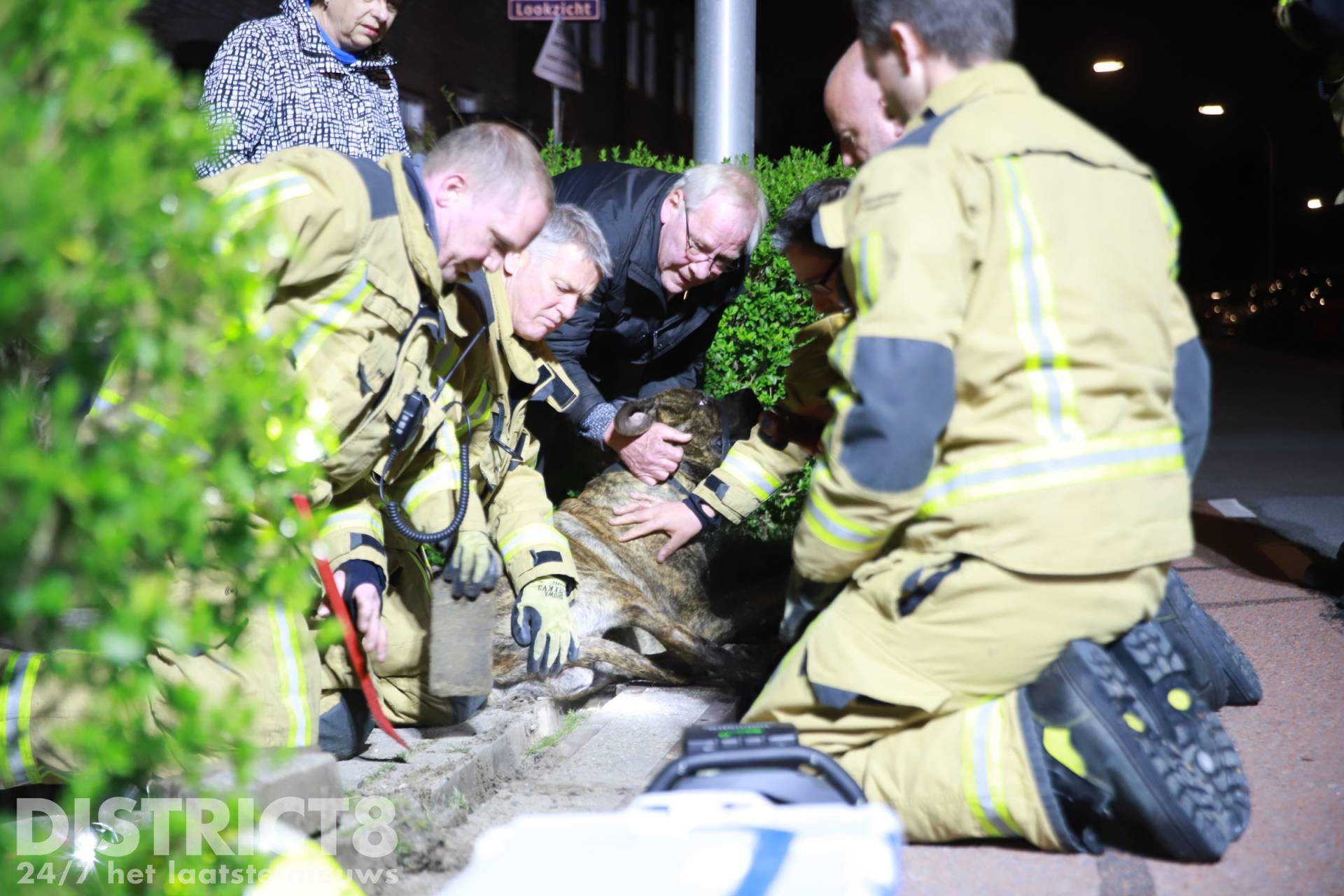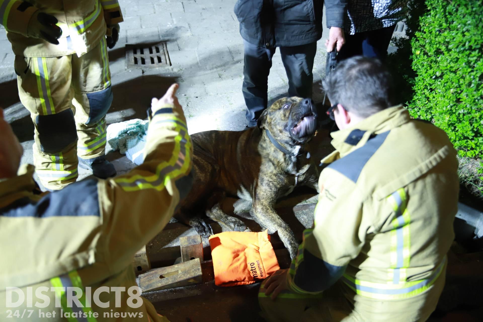 Brandweer bevrijd hond die vast zit in goot Dijkshoornseweg Den Hoorn