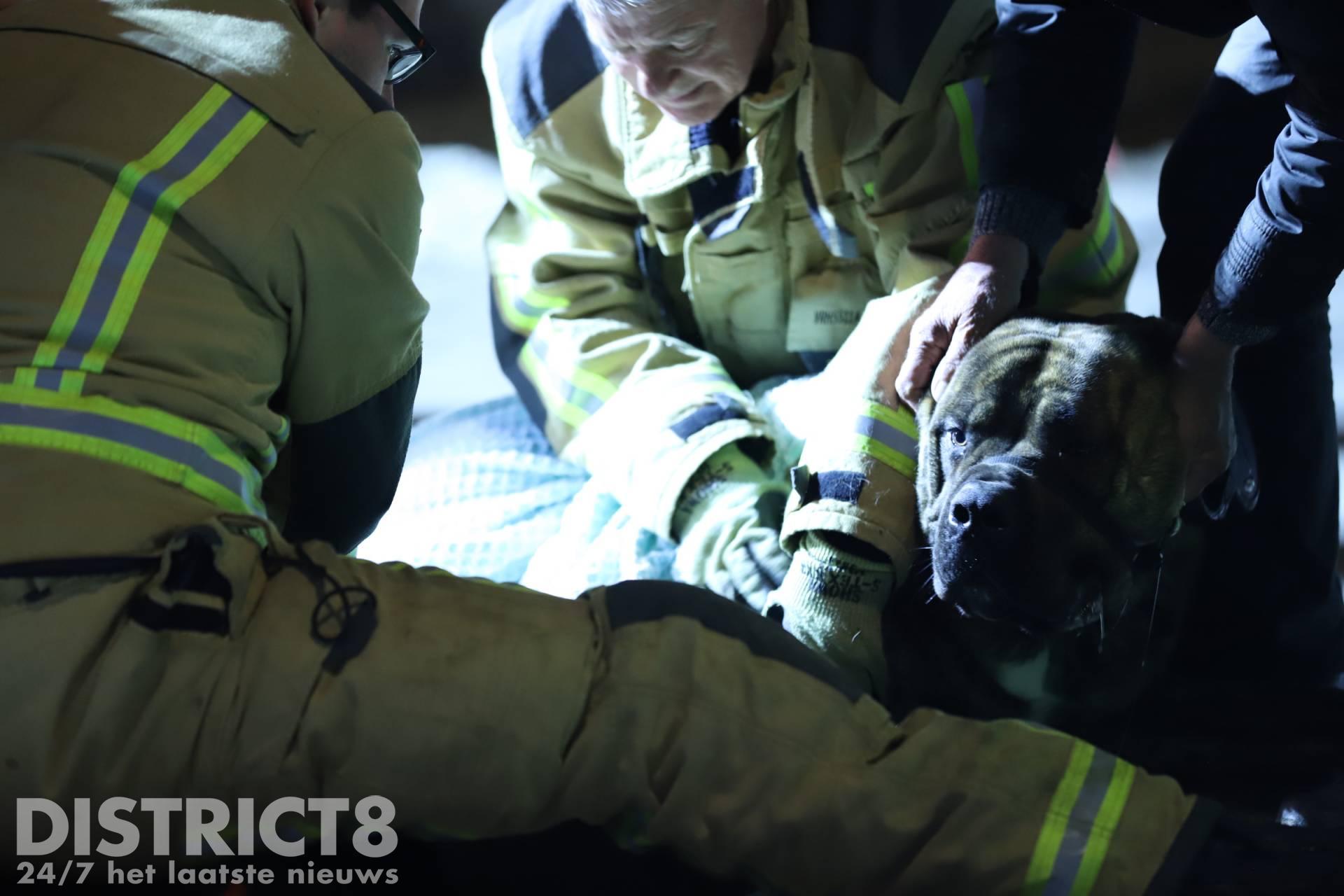 De brandweer rukte uit om de hond te bevrijden. Omdat de bemanning van de gealarmeerde tankautospuit er niet in slaagde om de hond te redden werd een hulpverleningsvoertuig met extra redgereedschap opgeroepen.