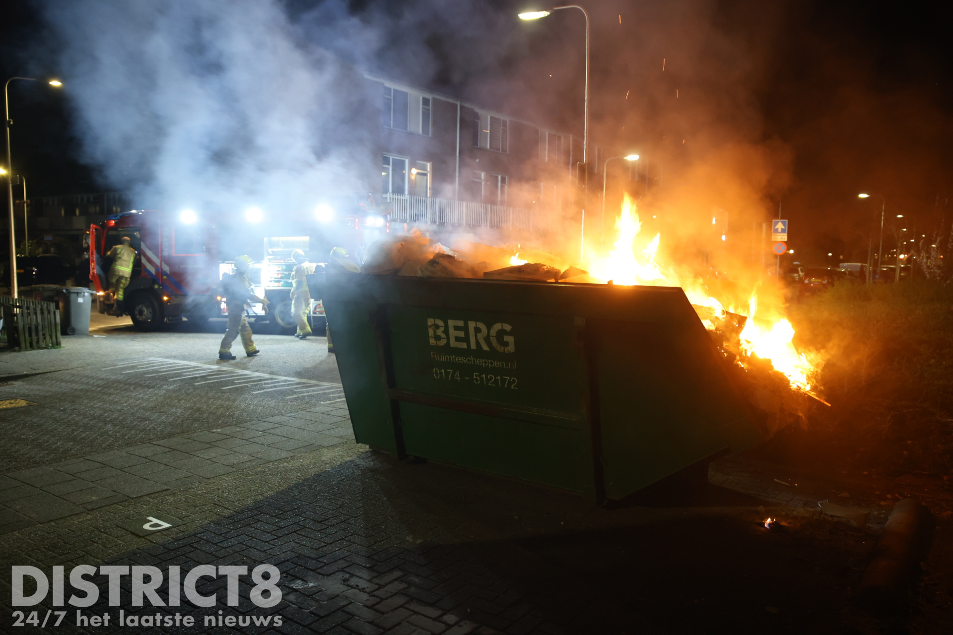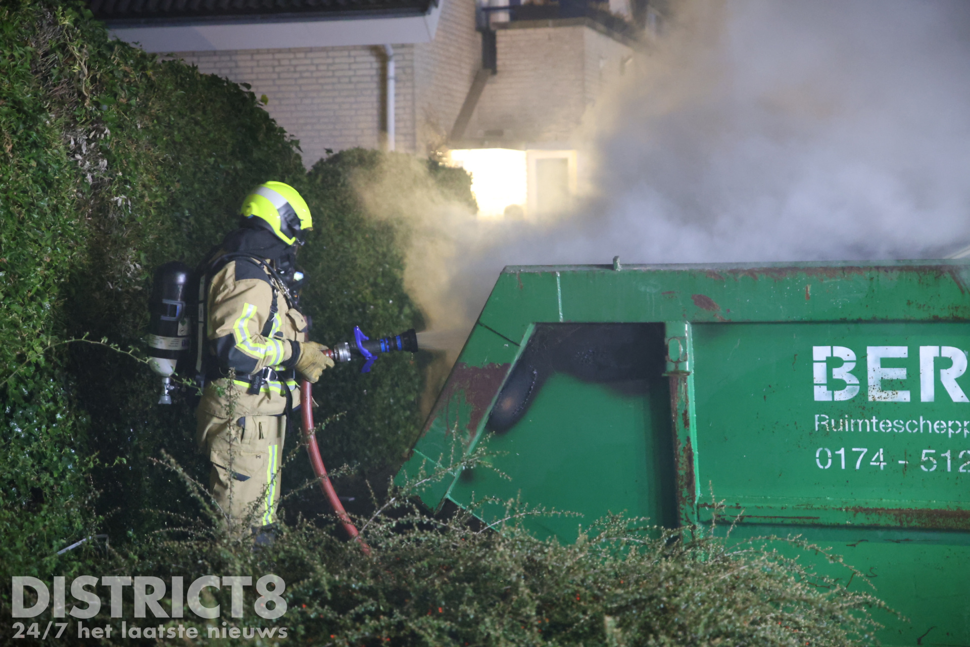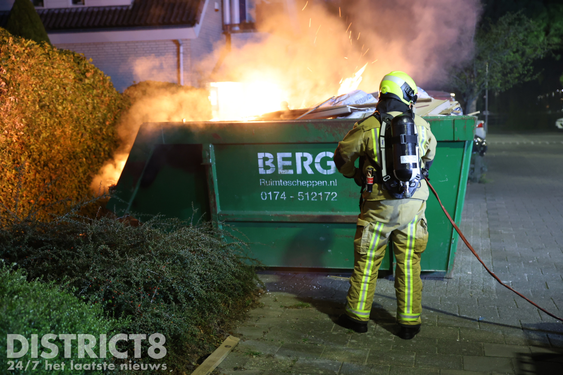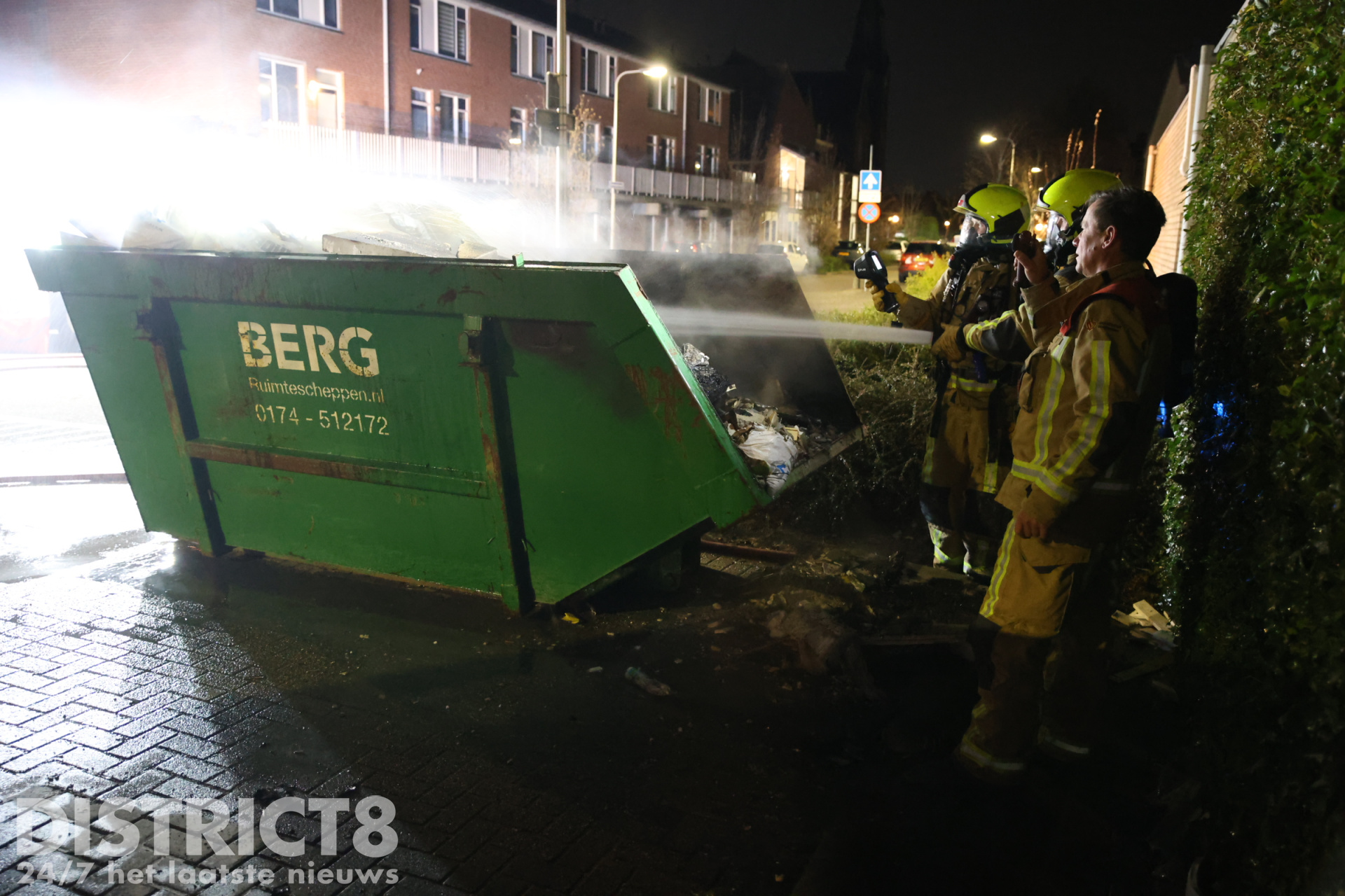 Wie de container in brand heeft gestoken en waarom is niet bekend.
