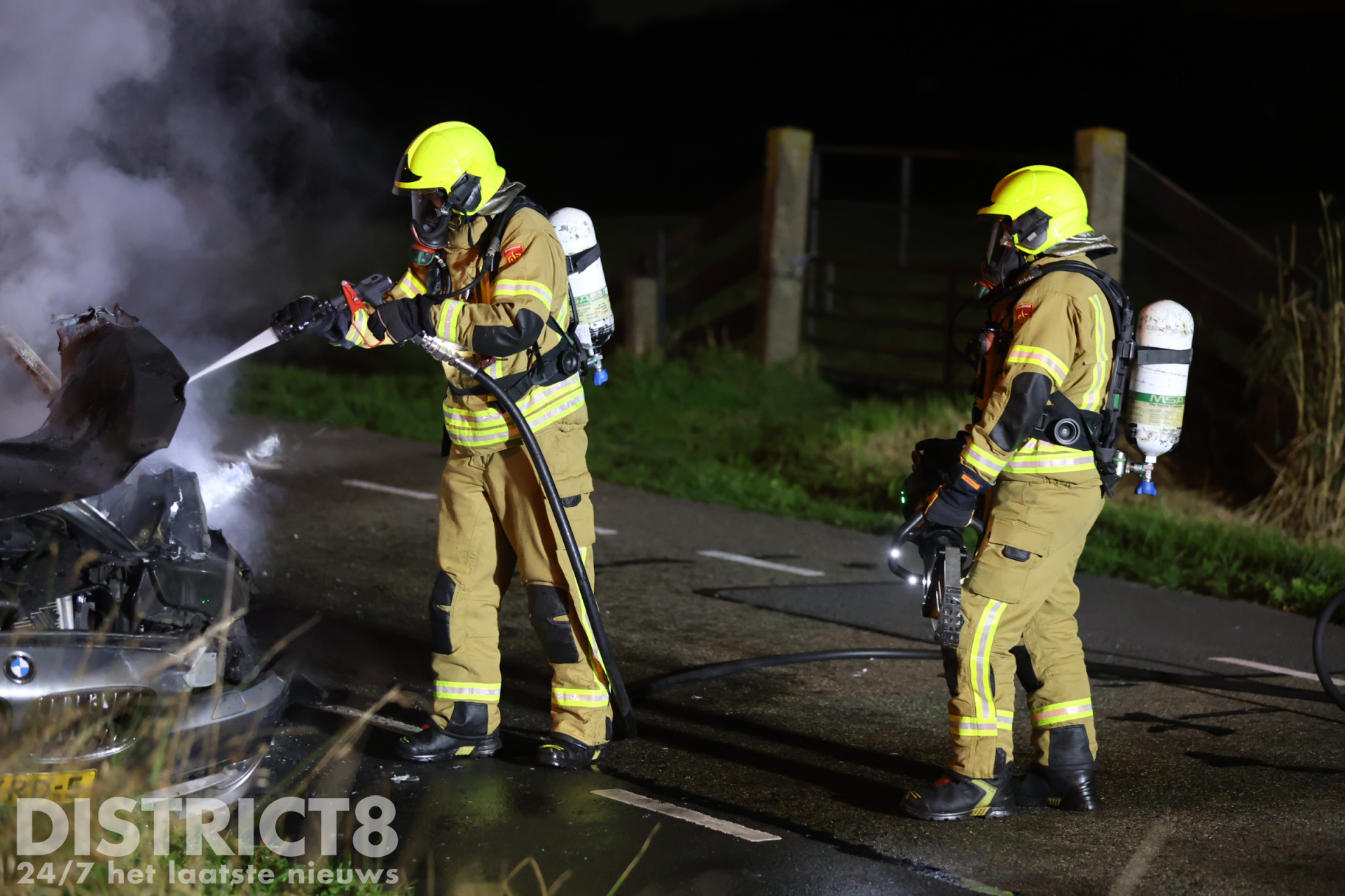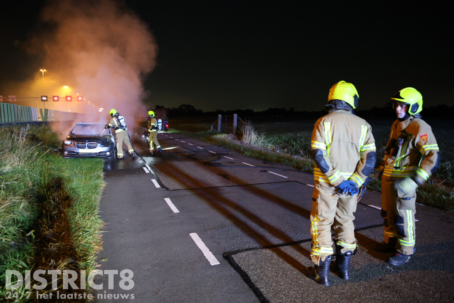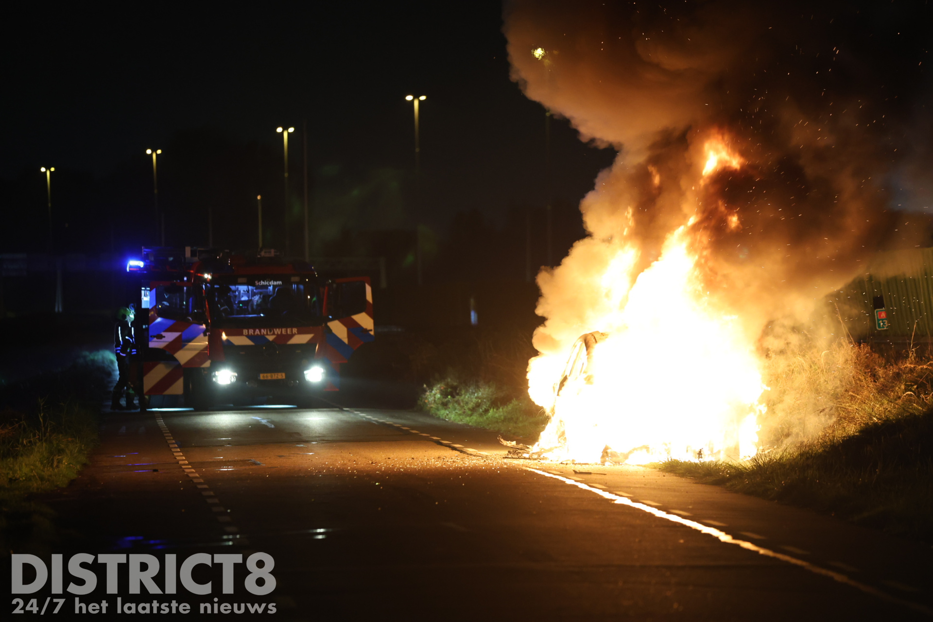 De automobilist parkeerde zijn wagen naast de weg en stapte uit, toen waren er al snel vlammen zichtbaar die snel om zich heen grepen. Al snel stond een groot gedeelte van de wagen in brand, direct werd 112 gebeld waarop de brandweer van Schiedam met spoed gealarmeerd werd. Bij aankomst van de brandweer zijn deze direct begonnen met het blussen van de brand.
