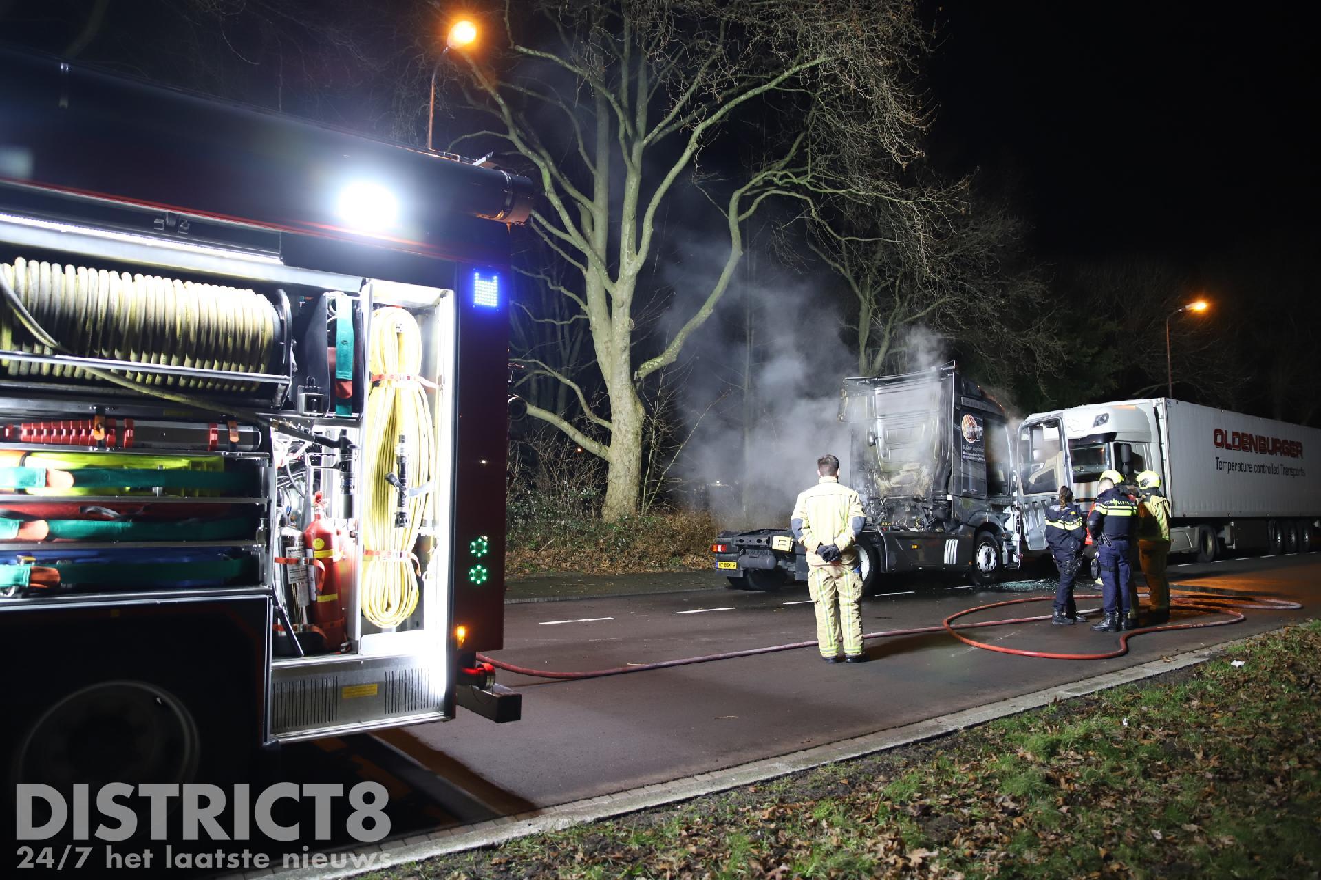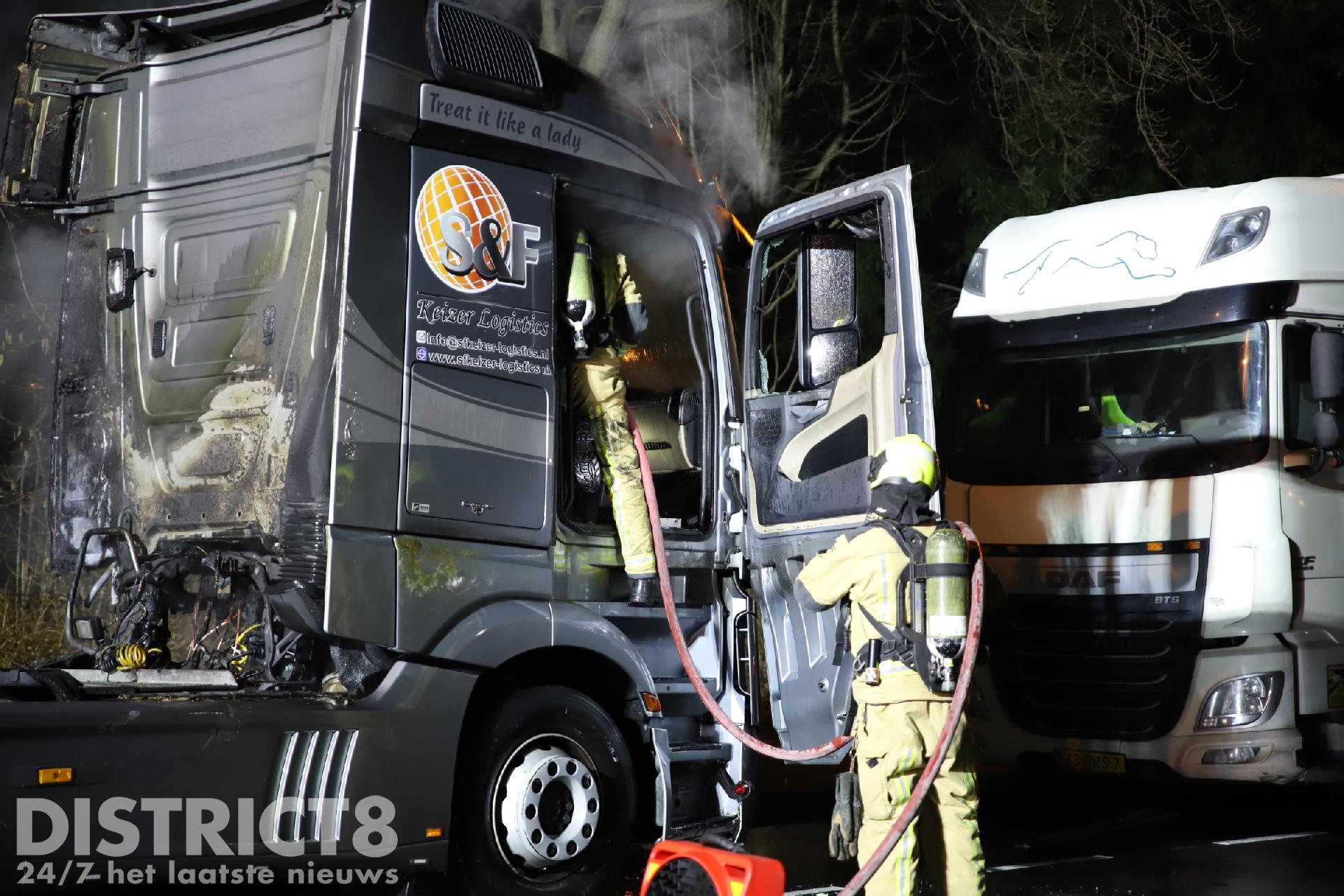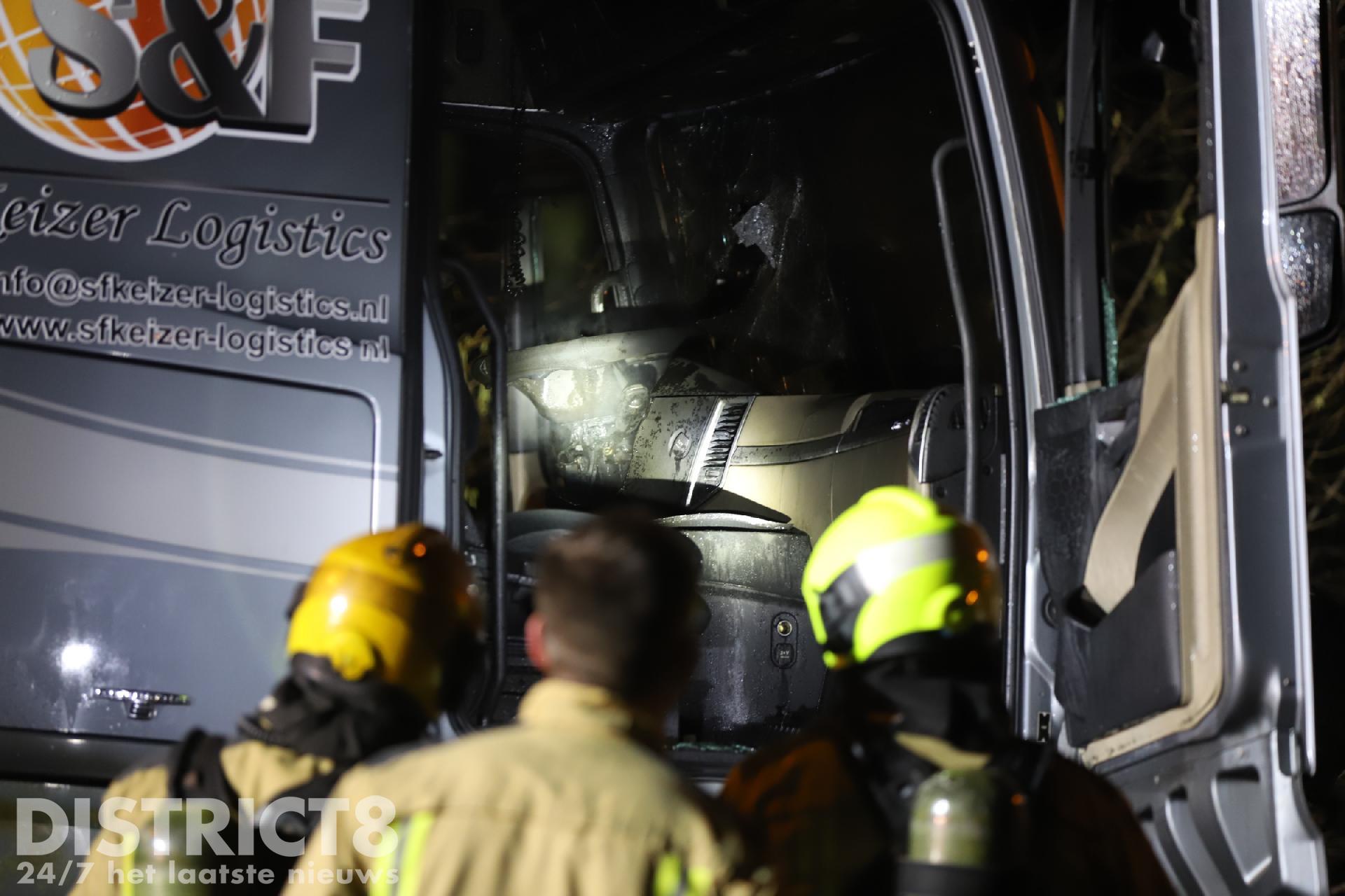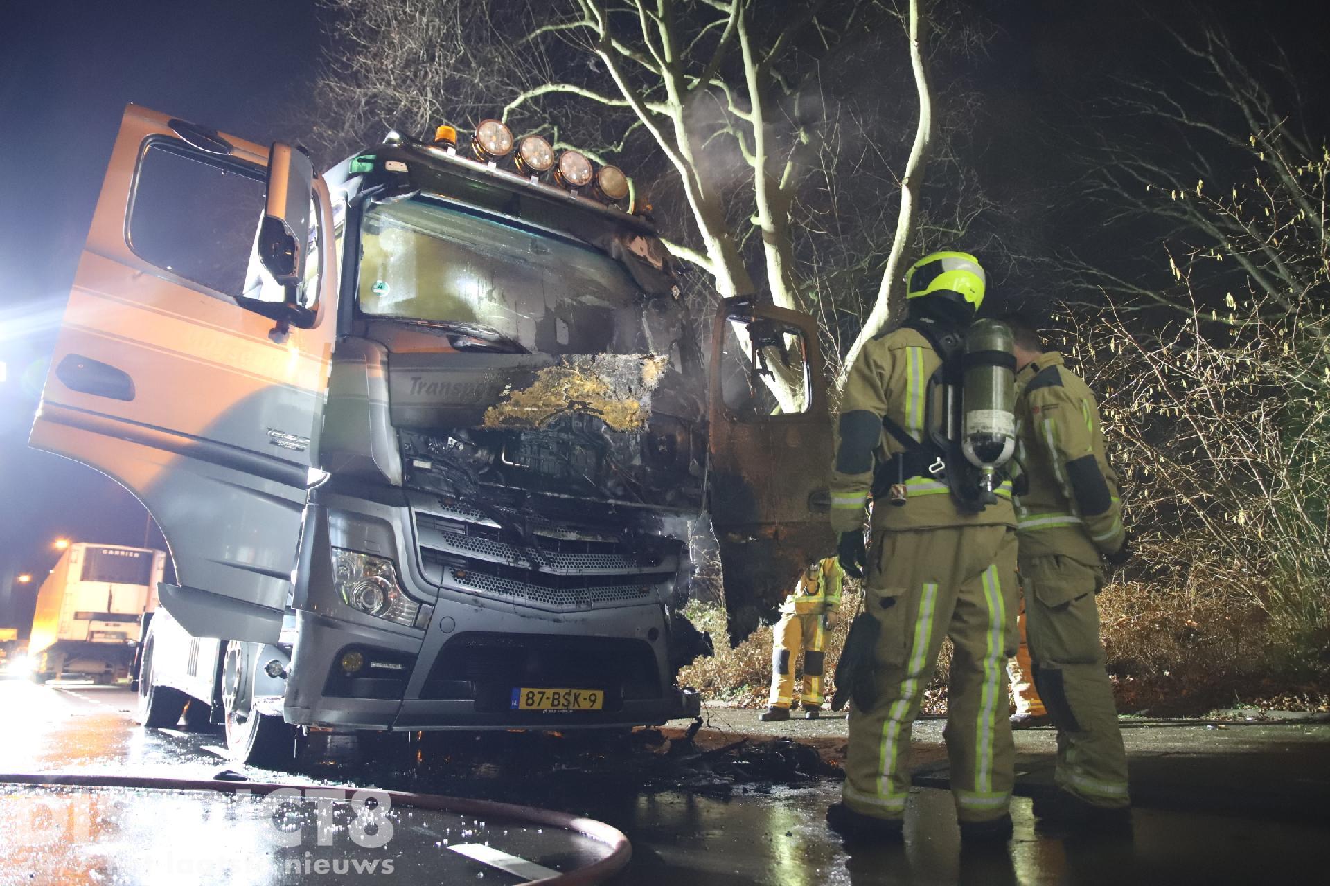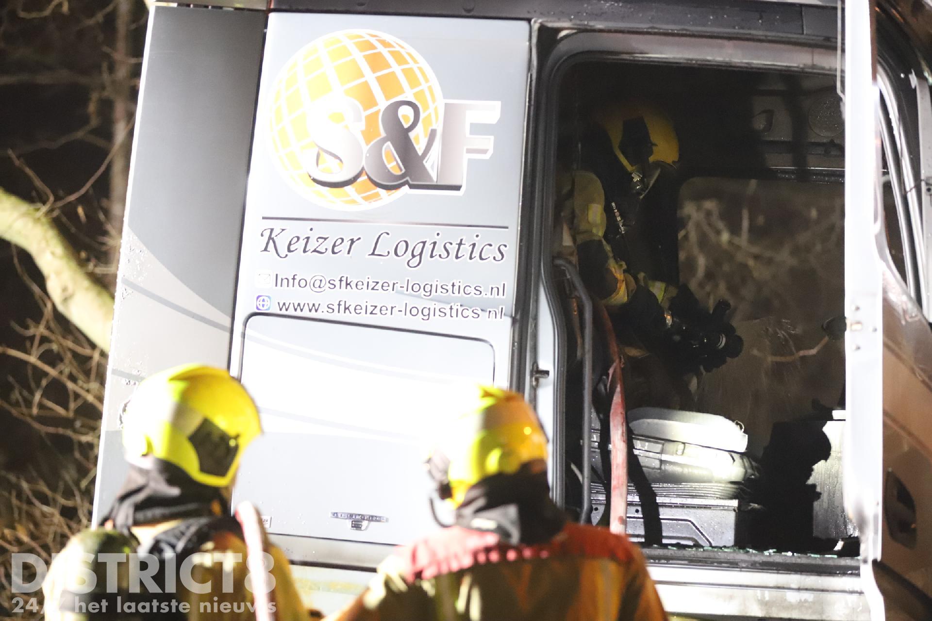 Ondanks het snelle handelen van de brandweer is de vrachtwagen volledig uitgebrand.