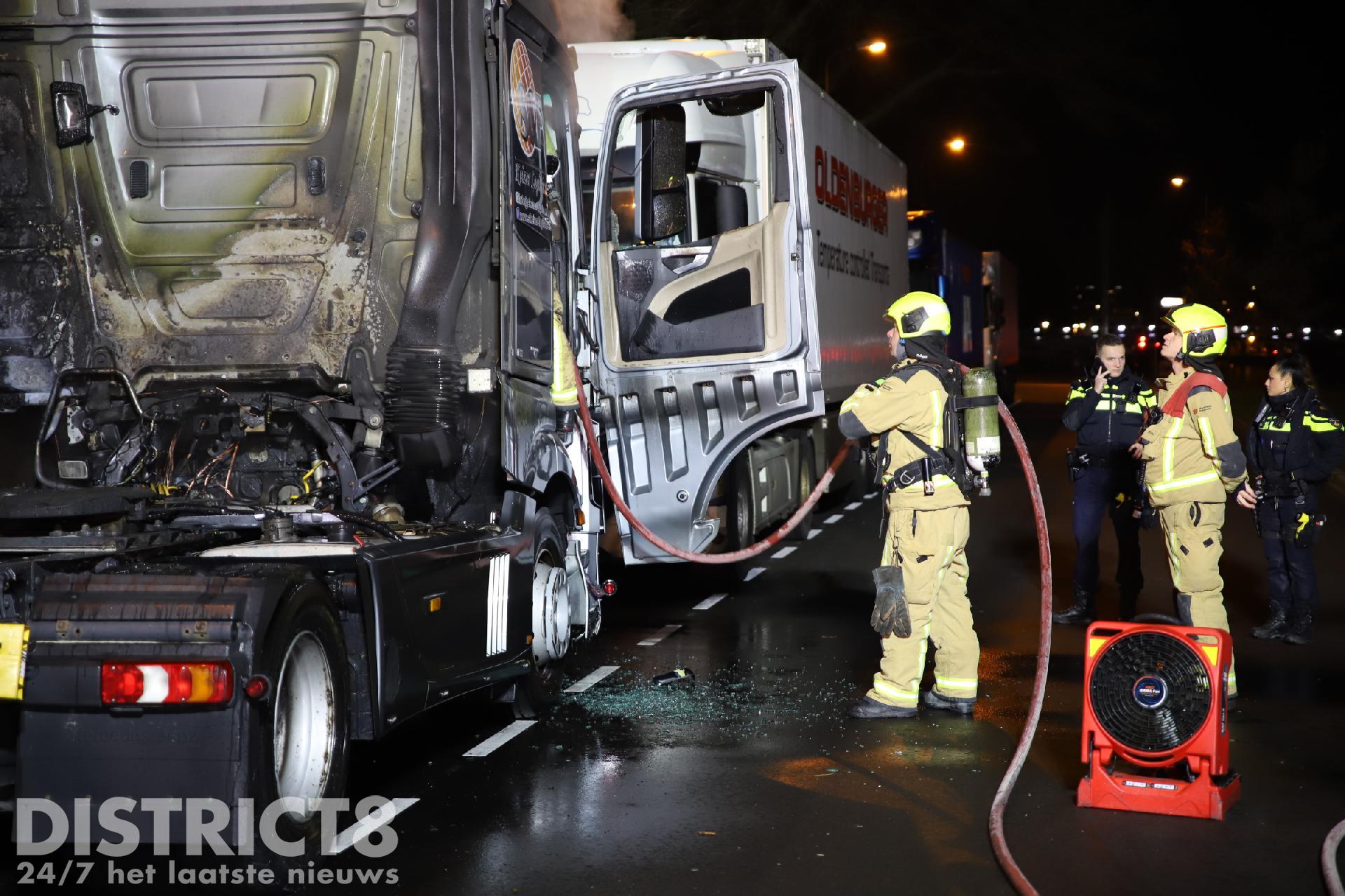 Zaterdagavond, iets na 23:00 uur, zag een passerende fietser op de Tinbergenstraat in Rijswijk vlammen onder de ruit van een vrachtwagen vandaan komen. Hierop waarschuwde hij onmiddellijk 112. De brandweerlieden van kazerne Rijswijk werden direct gealarmeerd.