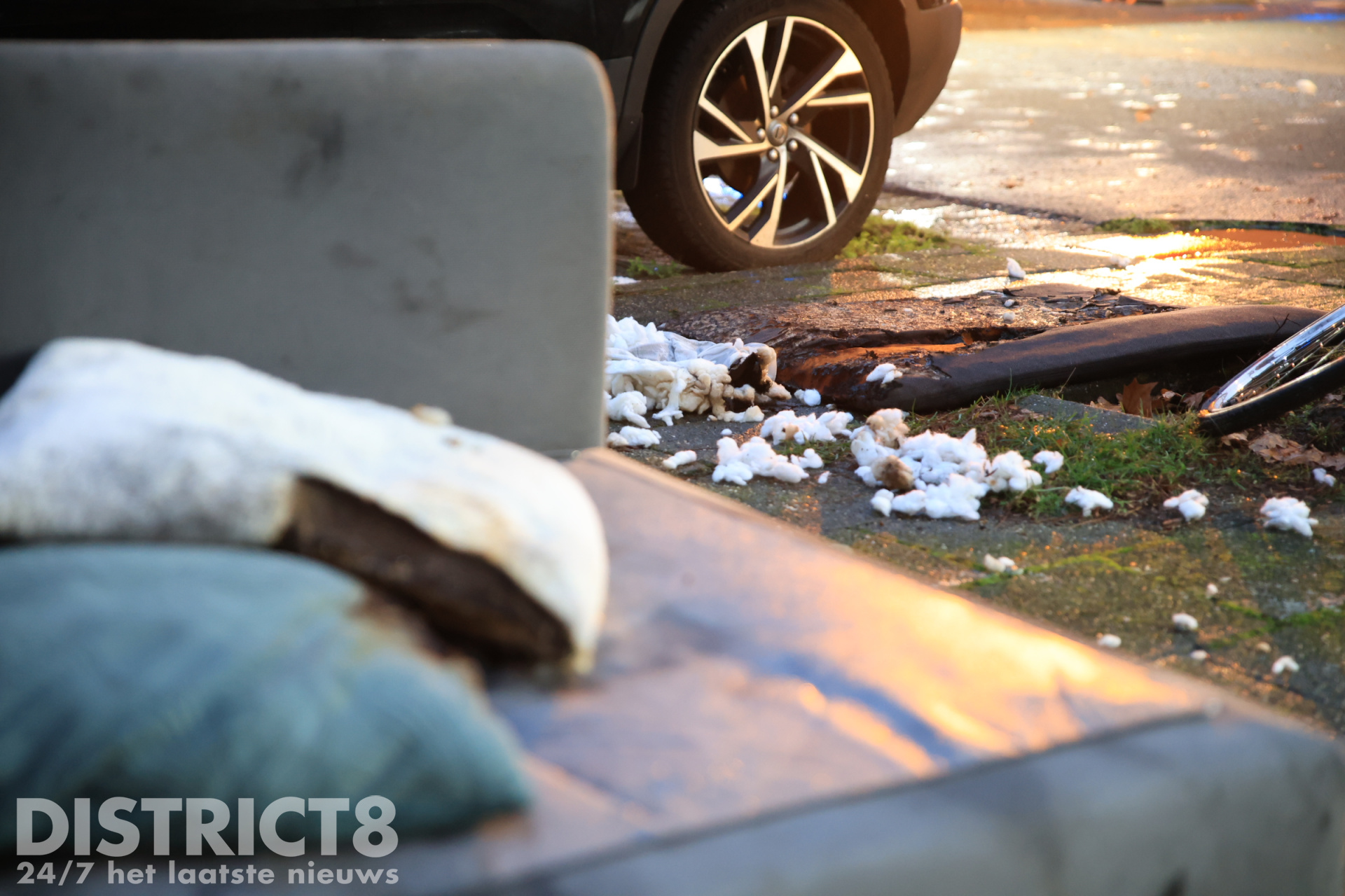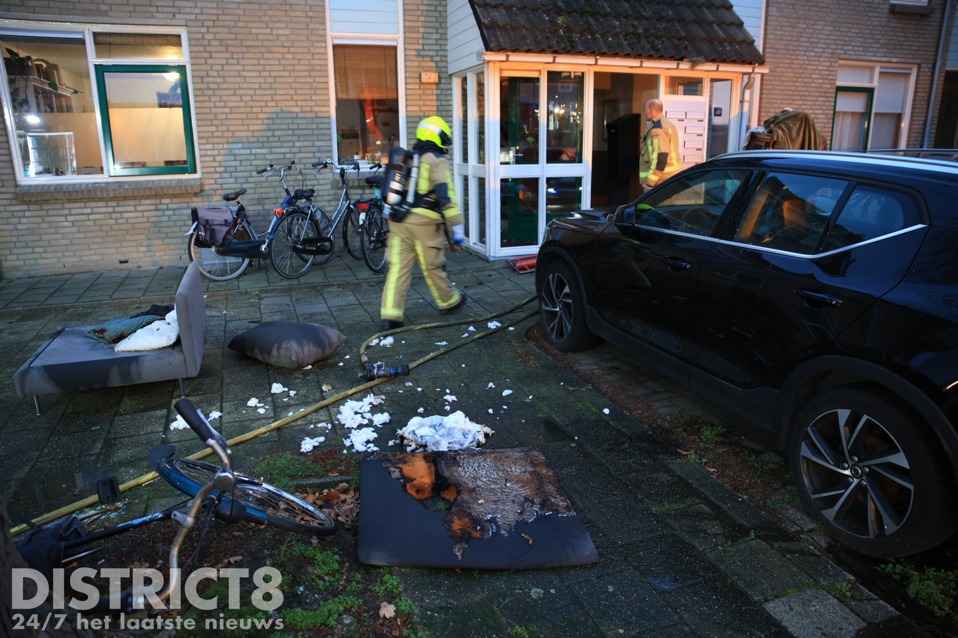 De brandweer heeft het bankstel naar buiten getrokken en het vuur geblust. Tijdens de actie werd ook een vogelkooi uit de woning gehaald.