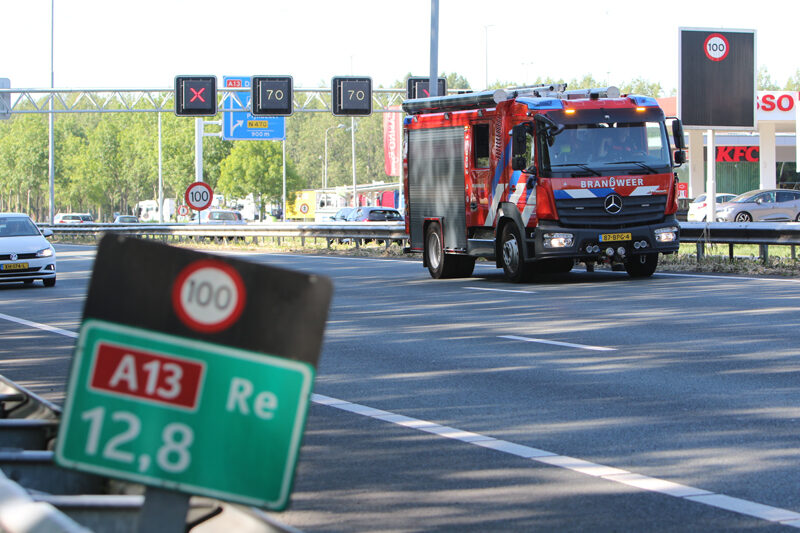 Delft – Op de A13 bij Delft is zondagmiddag 13 juni een brandje ontstaan in de middenberm.