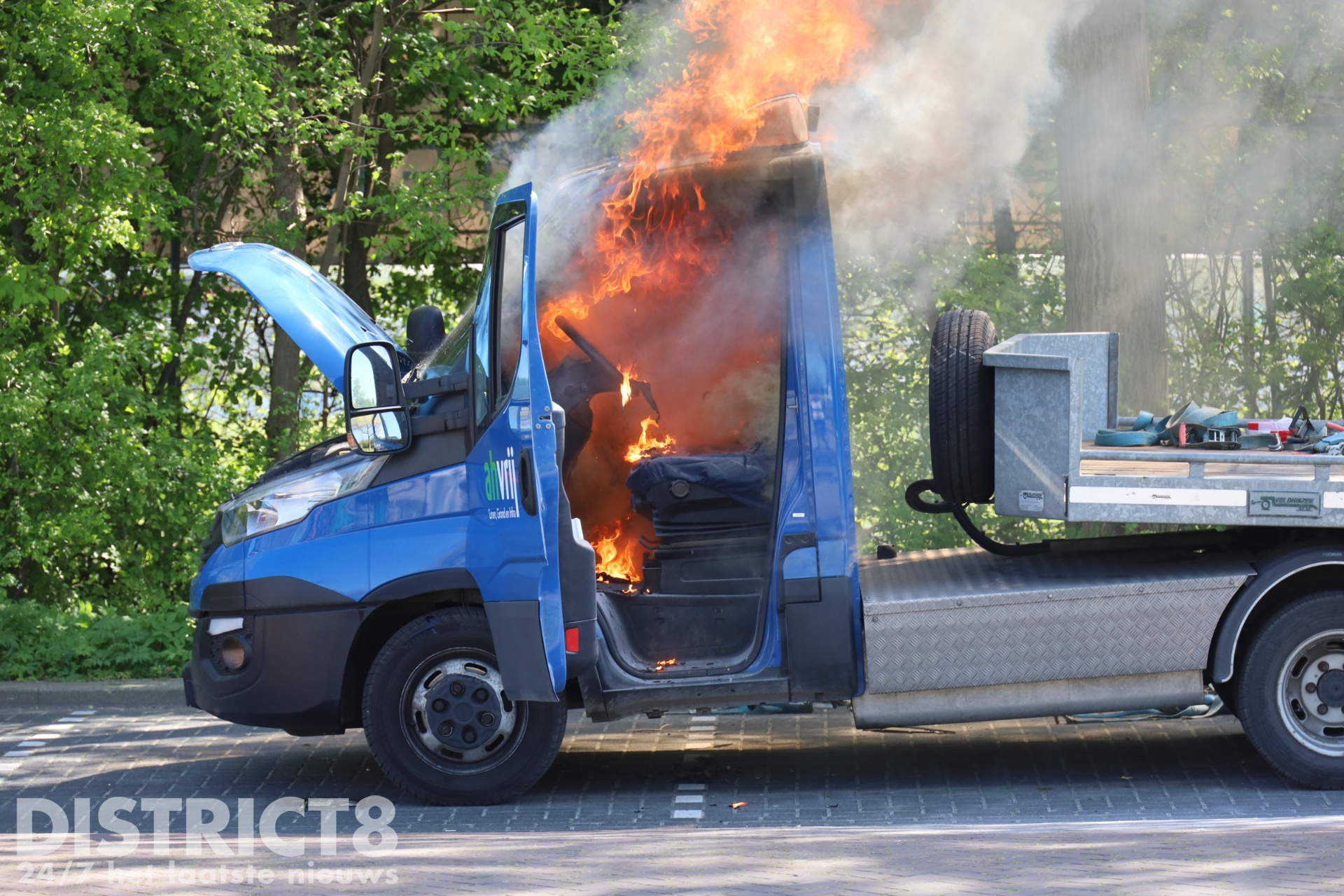 Naaldwijk – Op Hoogwerf in Naaldwijk is donderdagmiddag 23 april de cabine van een bedrijfswagen in brand gevlogen. De oorzaak van de brand is niet bekend. De brand ontwikkelde zich snel; bij aankomst van de brandweer sloegen de vlammen al uit de cabine.
