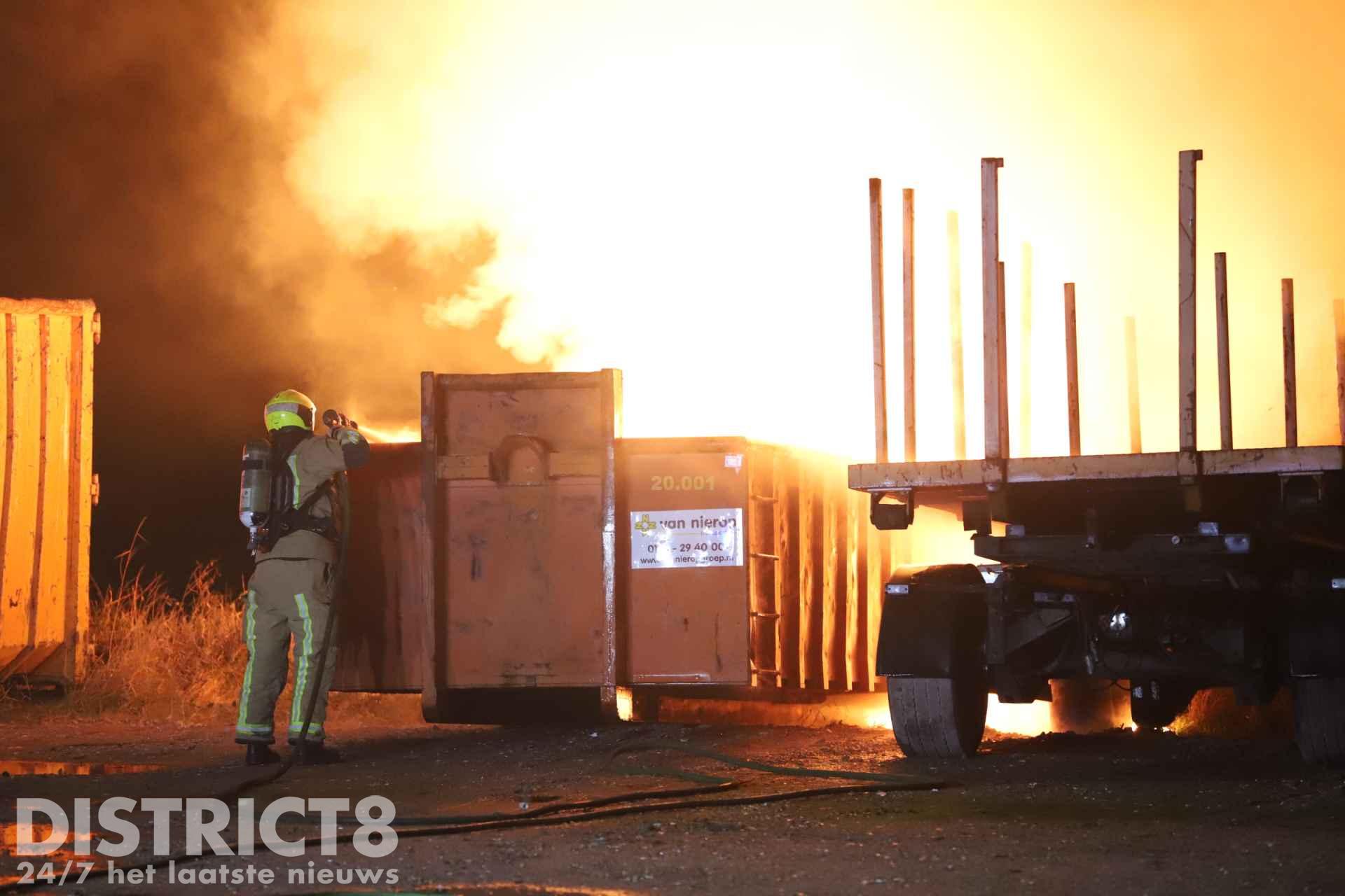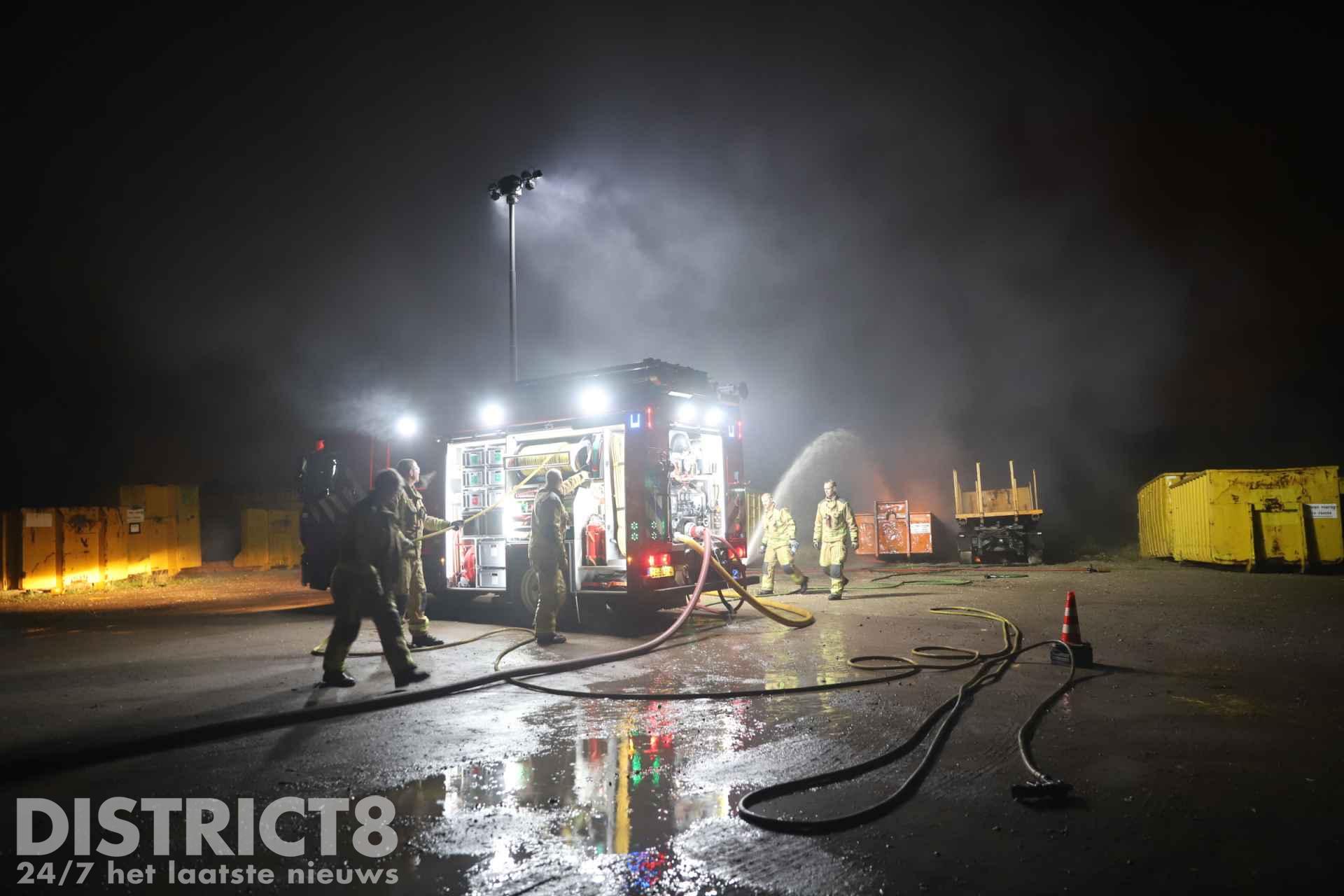 Ter plekke, op de Waterpas, aangekomen bleek de inhoud een puincontainer in brand te staan. De manschappen zette direct de blussing in, maar het vuur was moeilijk onder controle.