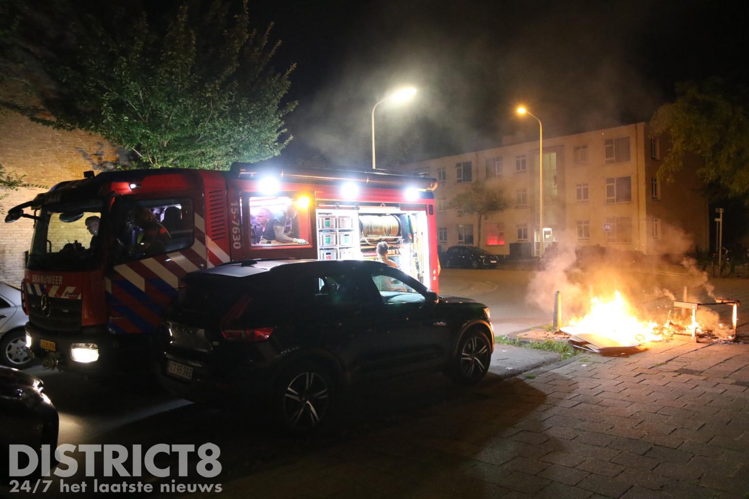 Brandweer blust in brand gestoken afval Ulenpasstraat Den Haag