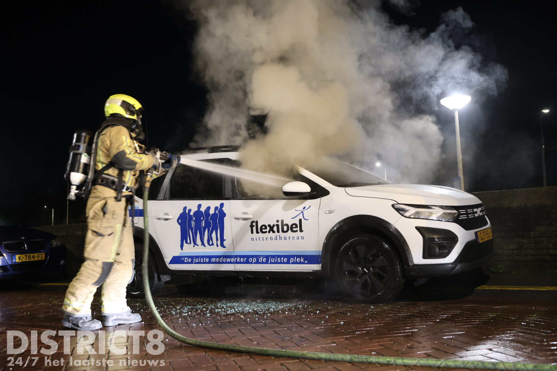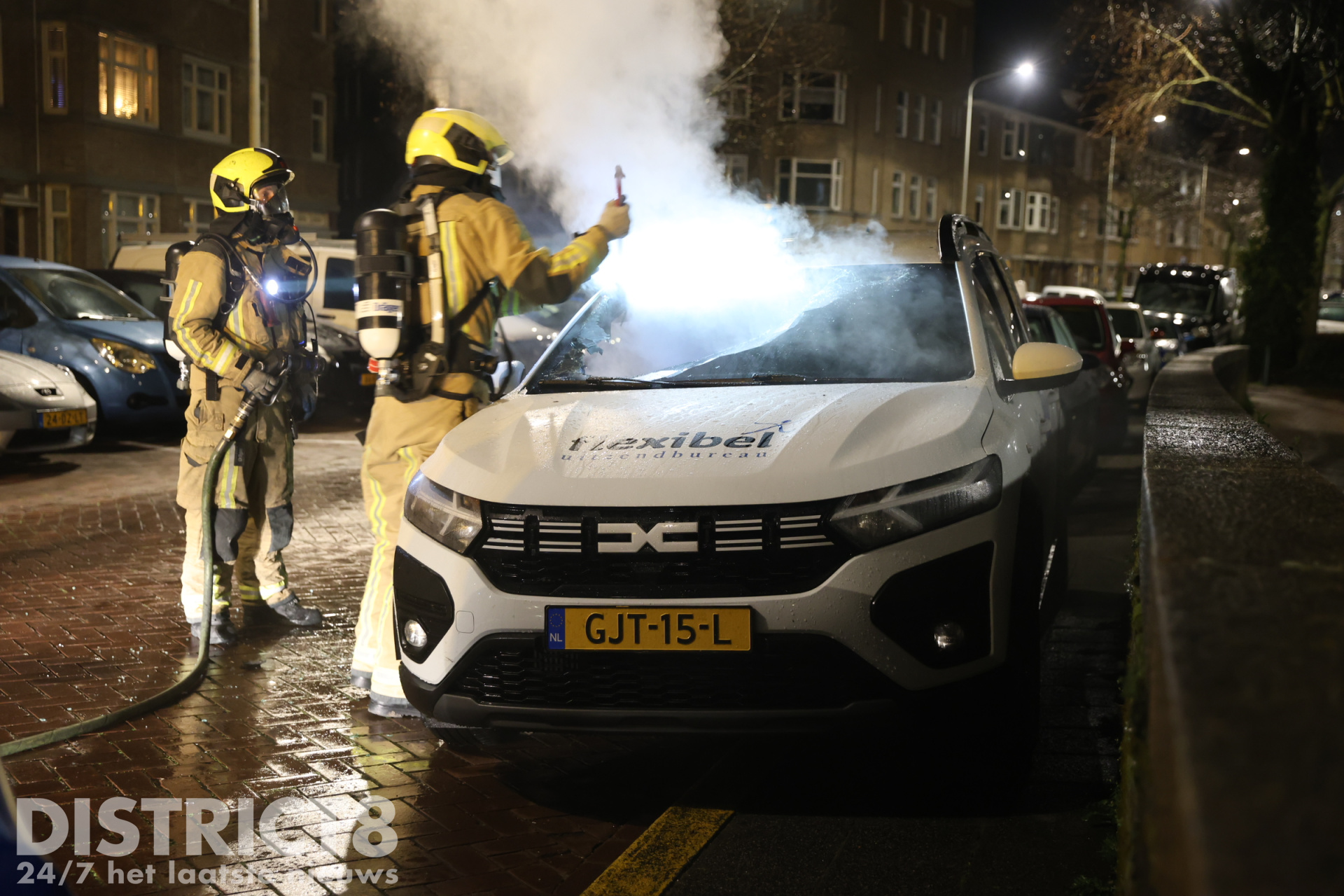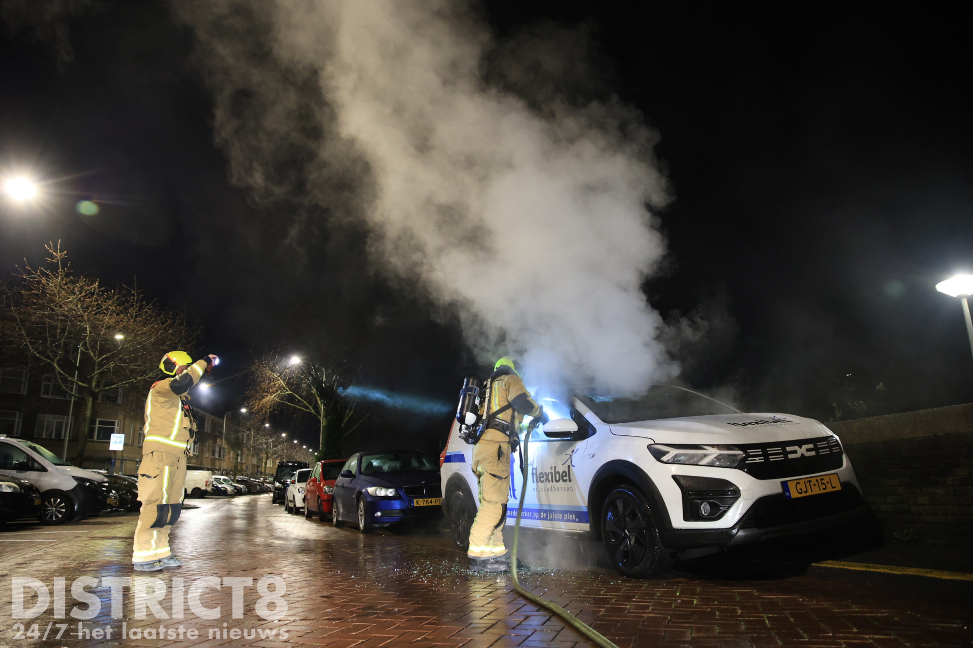 Brandweer blust in brand gestoken auto Soestdijksekade Den Haag