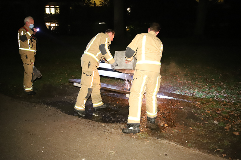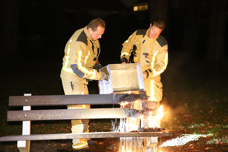 Bij aankomst van de brandweer hebben brandweermannen in eerste instantie geprobeerd om met aarde het brandende bankje uit te krijgen. Omdat dit zonder succes bleek hebben brandweermannen een bak gevuld met water van een naastgelegen sloot.