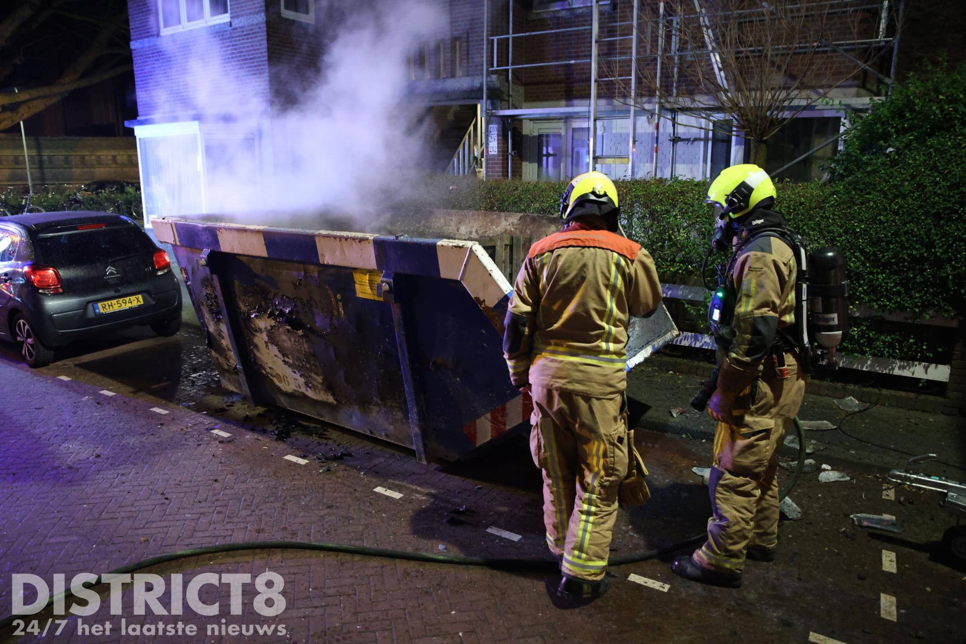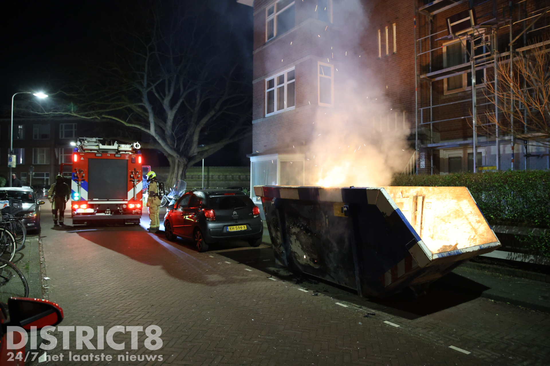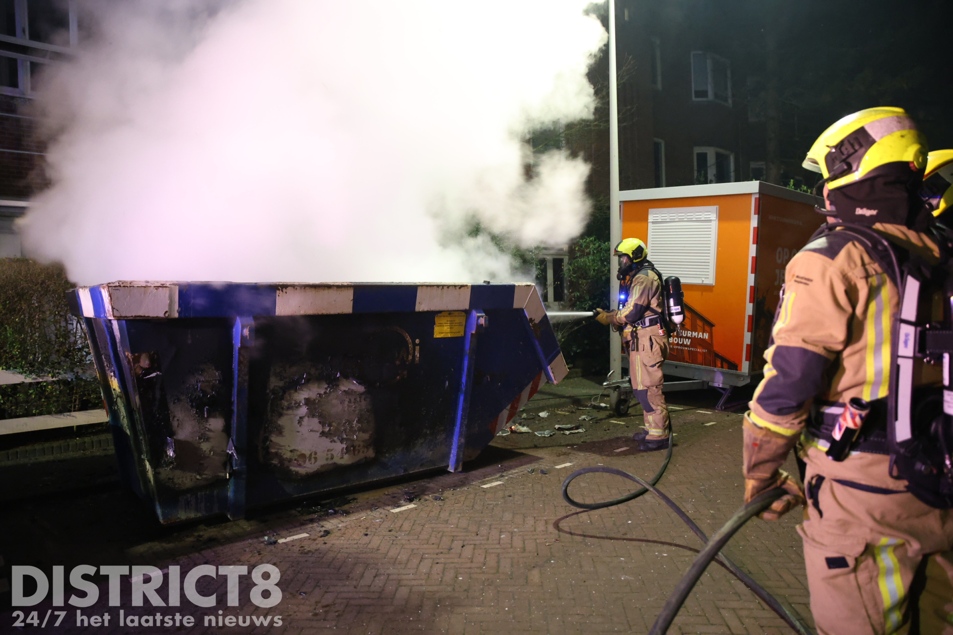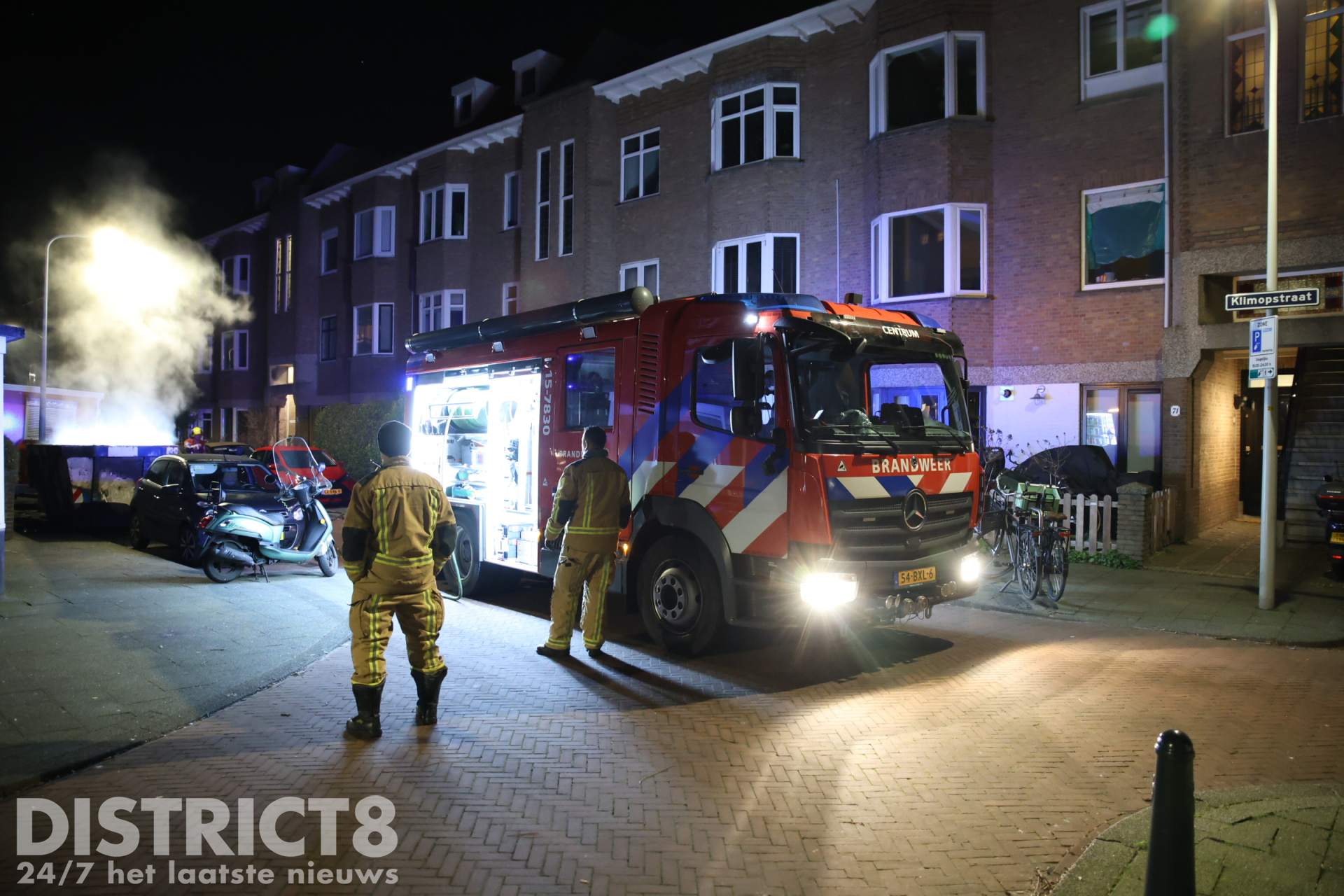 Den Haag – De brandweer is in de nacht van zaterdag 1 op zondag 2 februari met spoed uitgerukt naar de Klimopstraat in Den Haag. In de straat werd door omwonenden een brandende bouwafval container ontdekt.