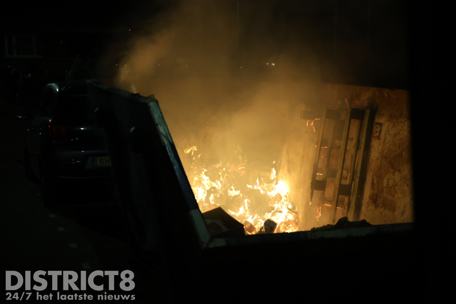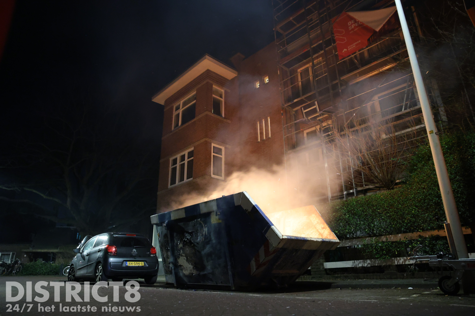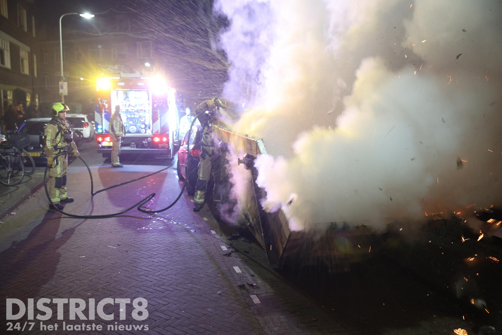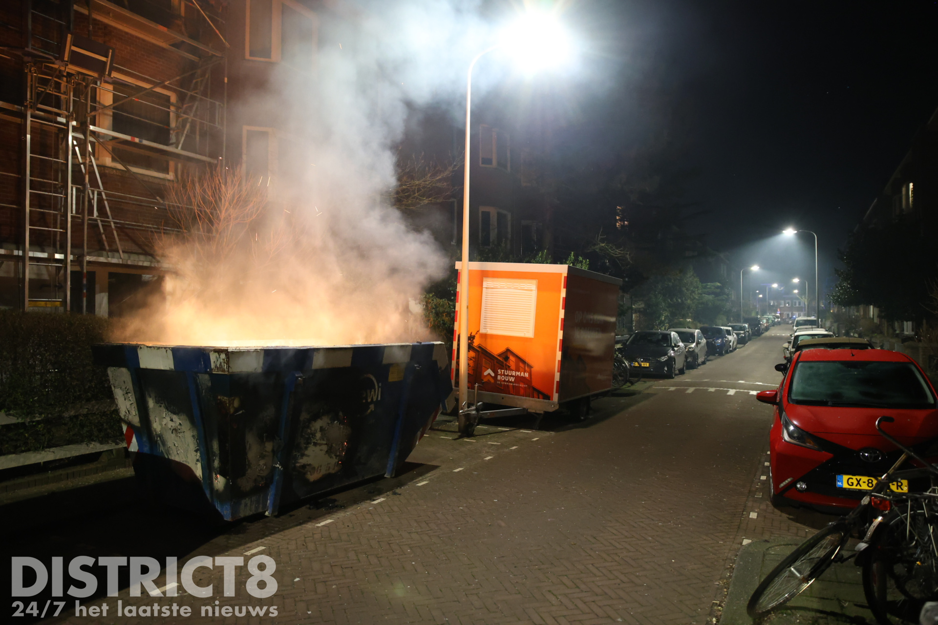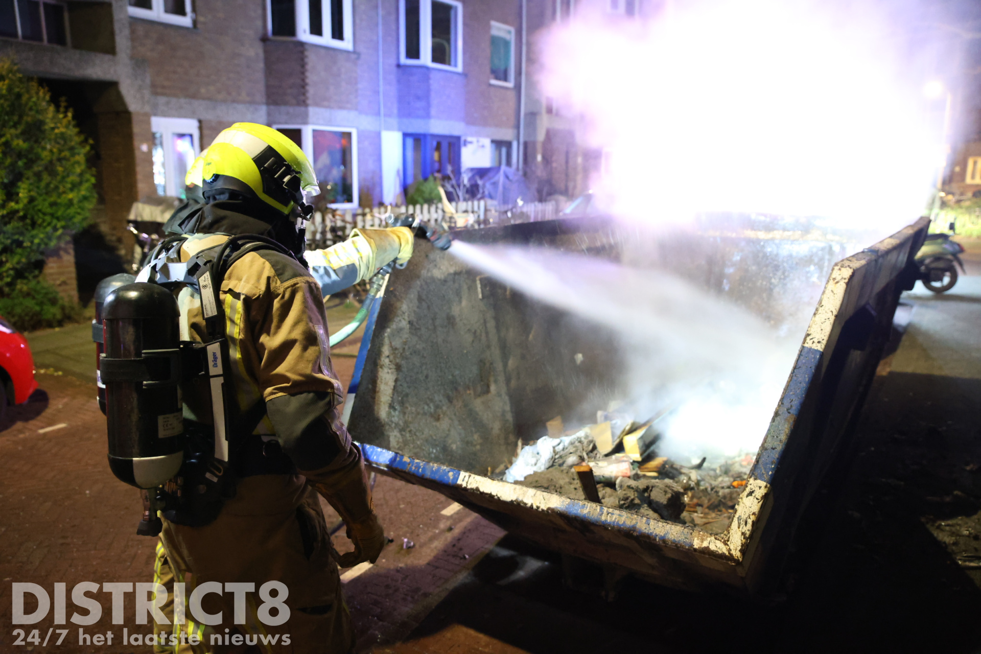 Den Haag – De brandweer is in de nacht van zaterdag 1 op zondag 2 februari met spoed uitgerukt naar de Klimopstraat in Den Haag. In de straat werd door omwonenden een brandende bouwafval container ontdekt.