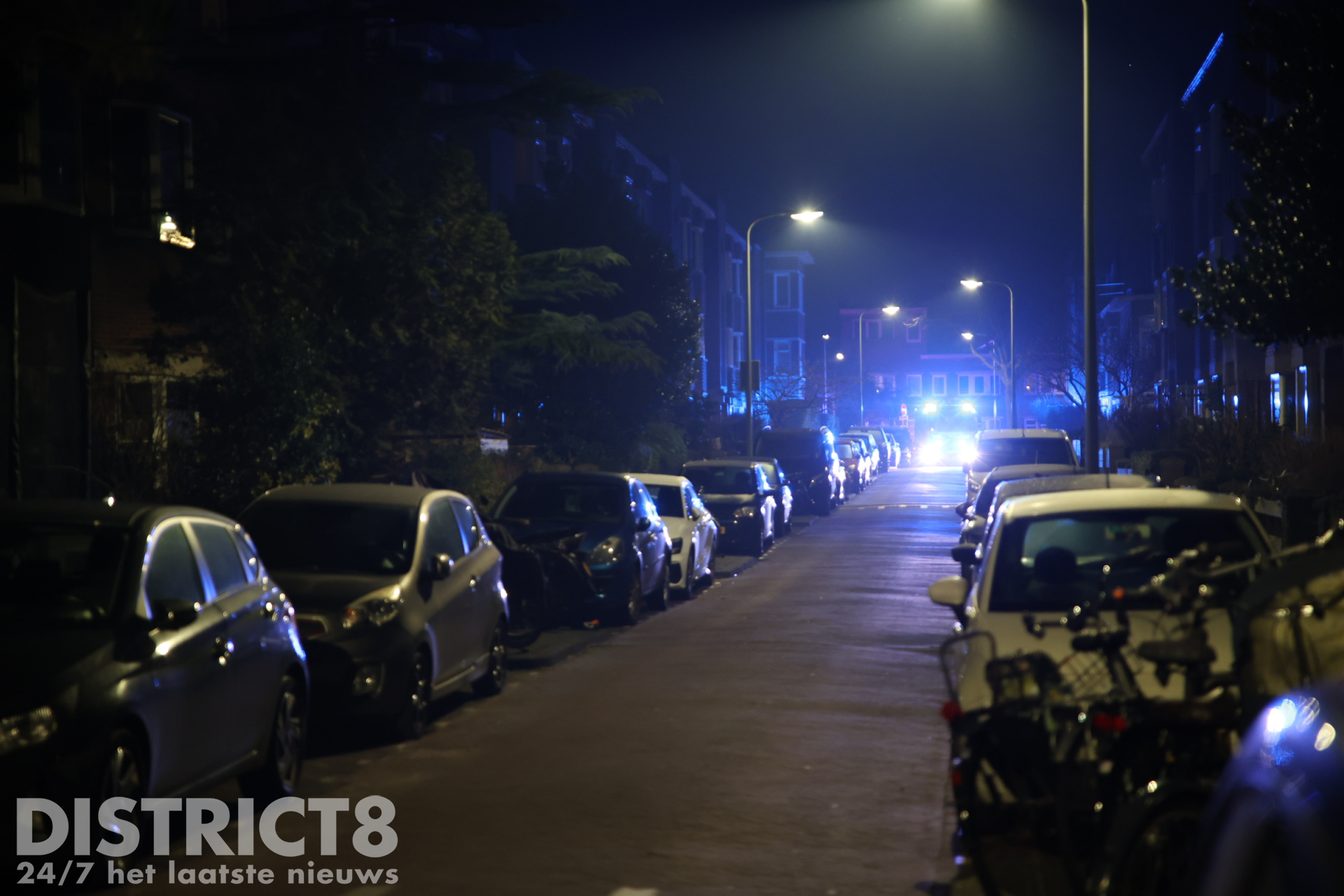 Bij aankomst had de brandweer nog enige moeite om de straat in te komen, na wat heen- en weer gesteek met de brandweerwagen kon de brandweer doorrijden.
