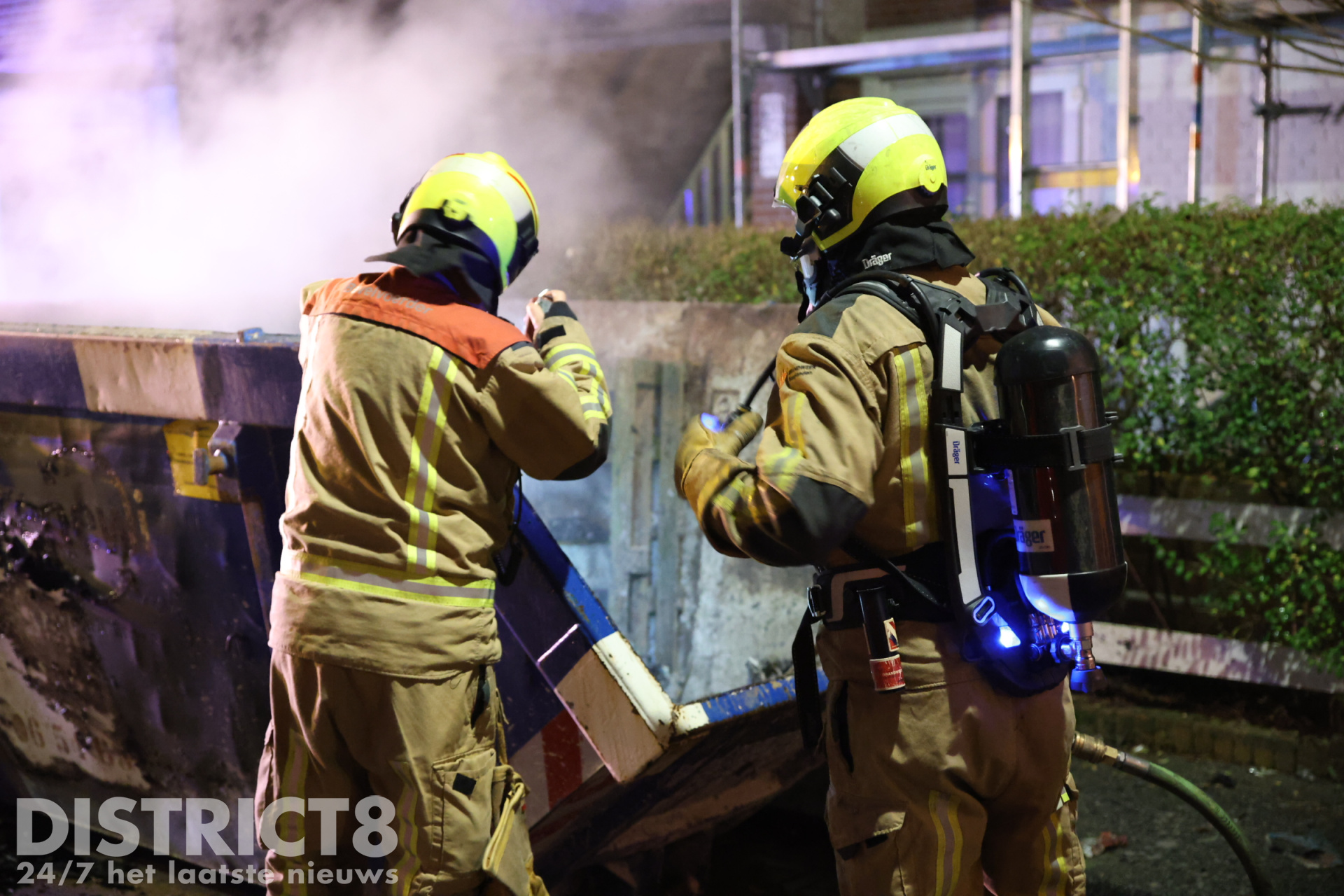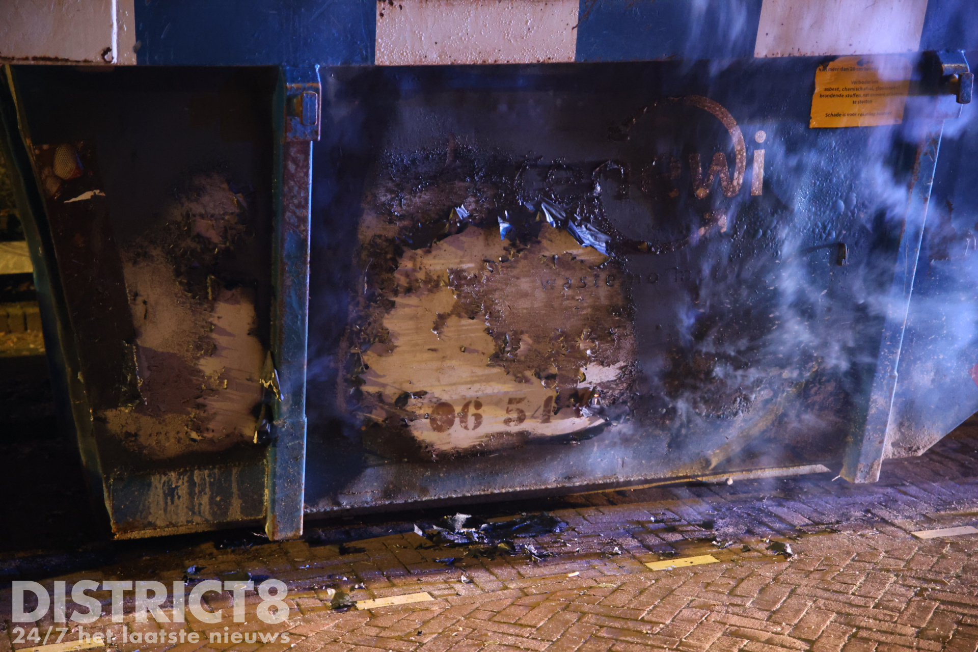 De brandweer had de brand snel onder controle, bij het blussen kwam korte tijd veel rook vrij. De brandweer heeft voor de zekerheid de inhoud van de container uit elkaar gehaald en de brand volledig geblust.