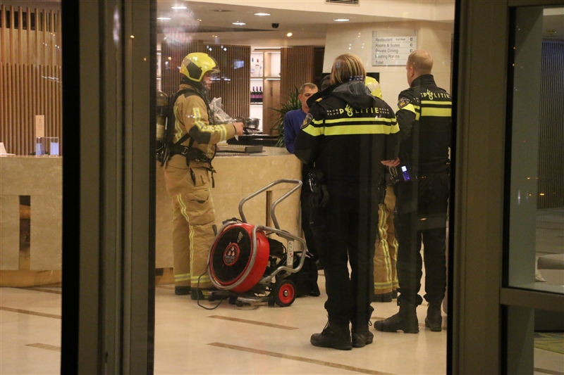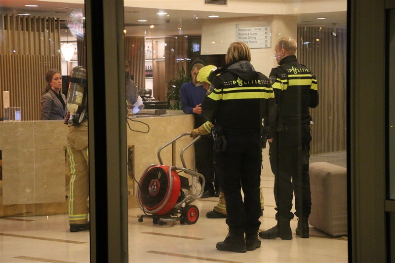 De brandweer heeft het hotel geventileerd. Wat er in brand heeft gestaan is niet bekend.