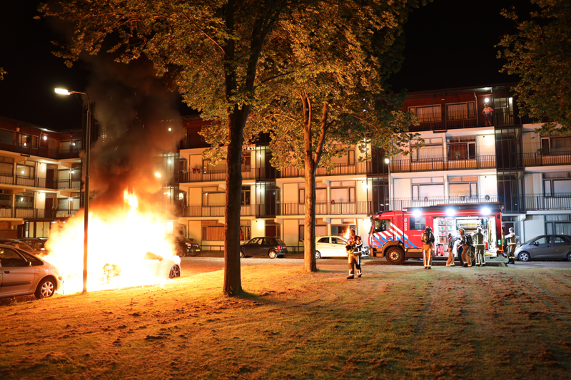 Delft – De brandweer van Delft is woensdagnacht 3 juli omstreeks 03:15 gealarmeerd voor een autobrand op de Beethovenlaan in Delft. Omwonende werden even daarvoor gewekt door een harde knal, toen deze gingen kijken stond er buiten op de parkeerplaats een auto volledig in brand.