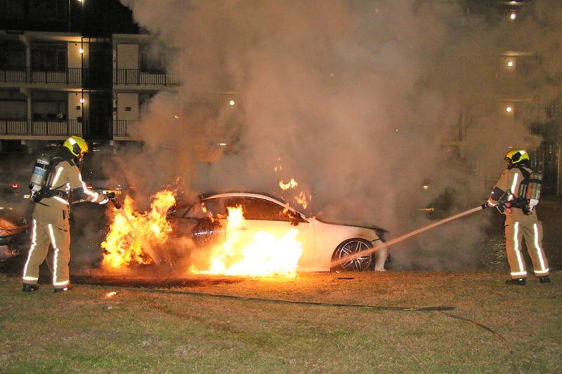 De brandweer kwam met spoed ter plaatse, bij aankomst van de brandweer stond de auto al volledig in brand. Direct is de brandweer begonnen met blussen, echter werdt dit bemoeilijkt door een lekkende brandstof-tank. De vlammen bleven telkens oplaaien, uiteindelijk is met schuim de brandstofbrand geblust.
