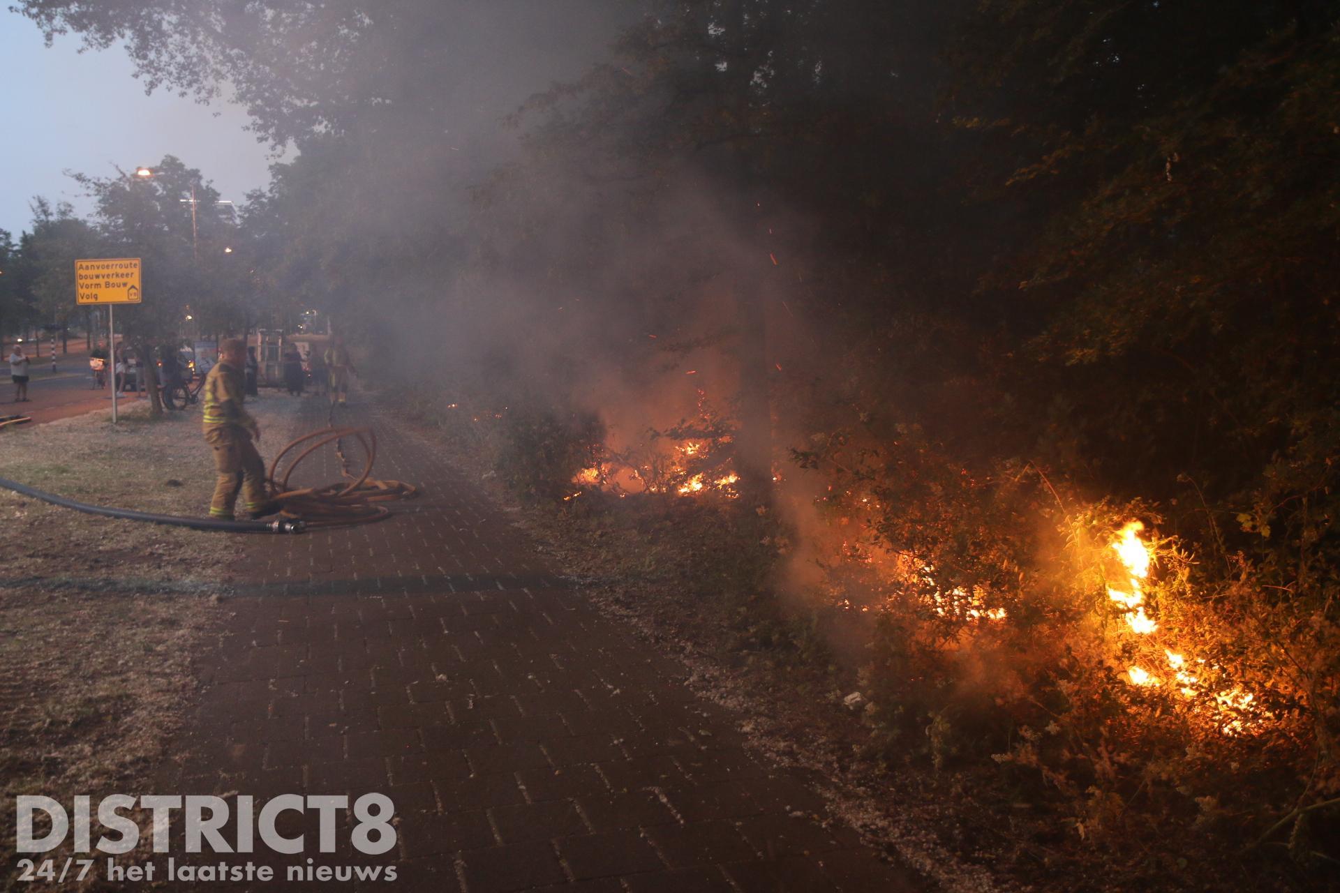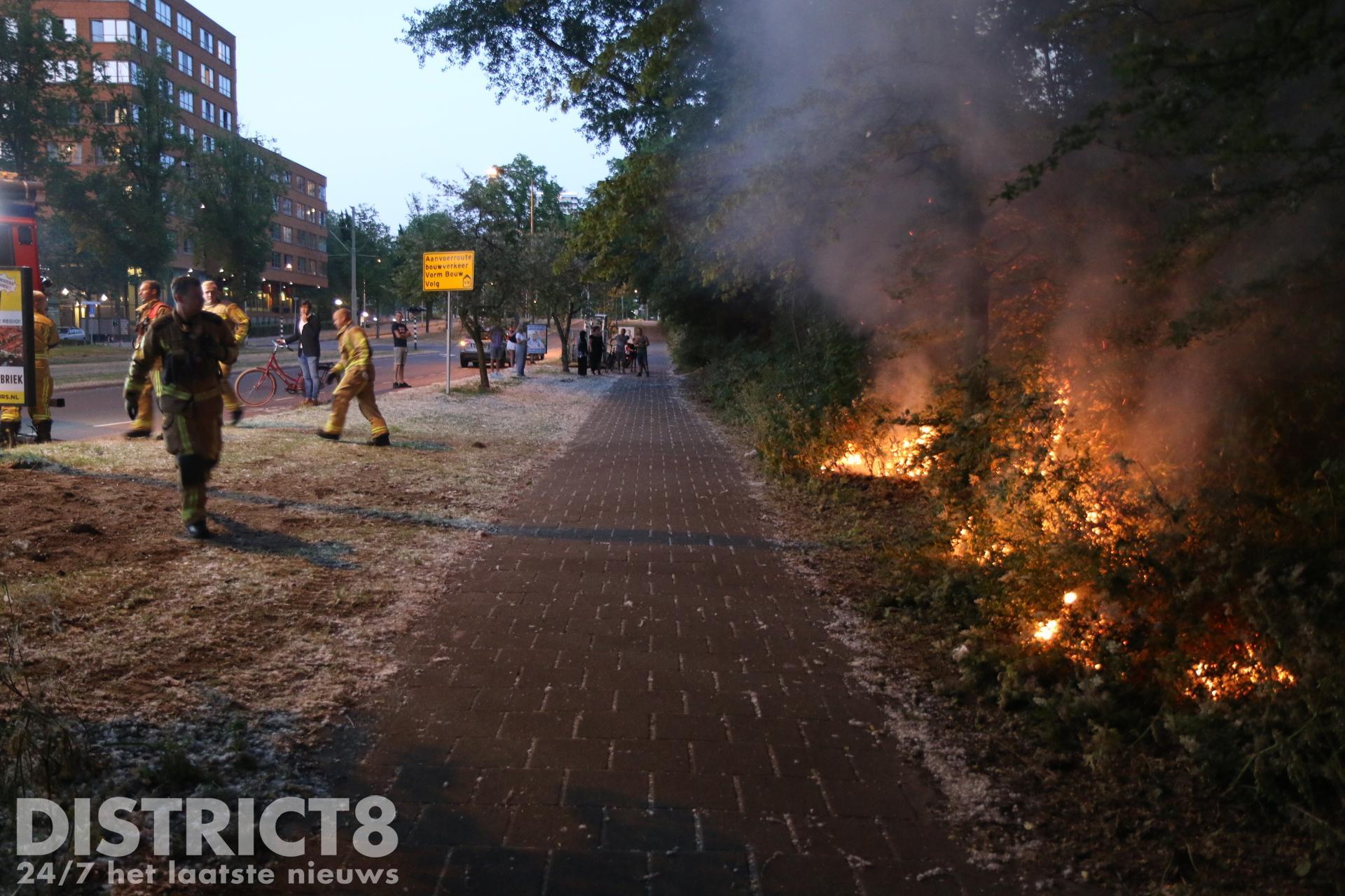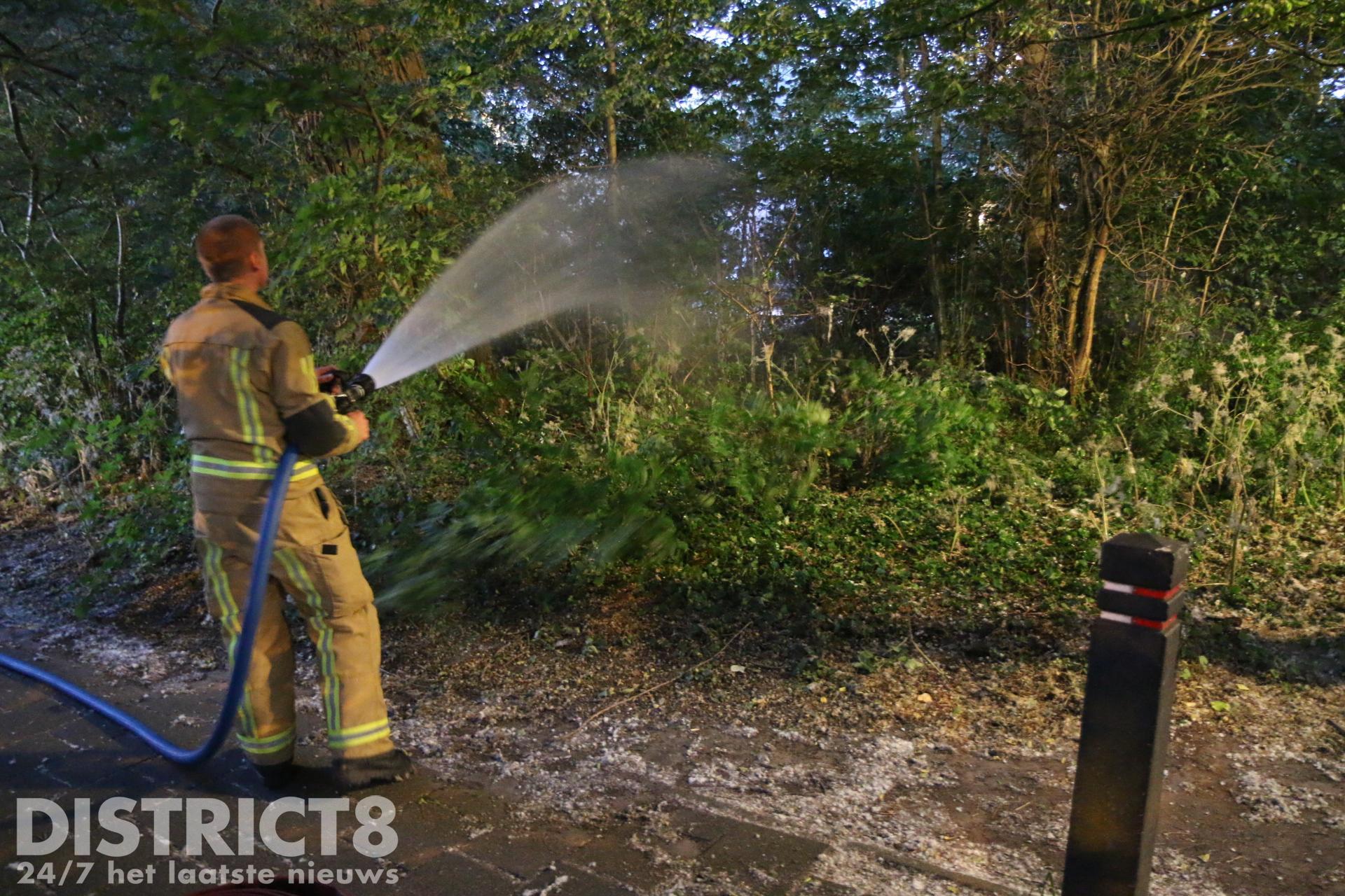 Brandweer blust meerdere brandjes in bossage Pierre Van Hauwelaan Delft