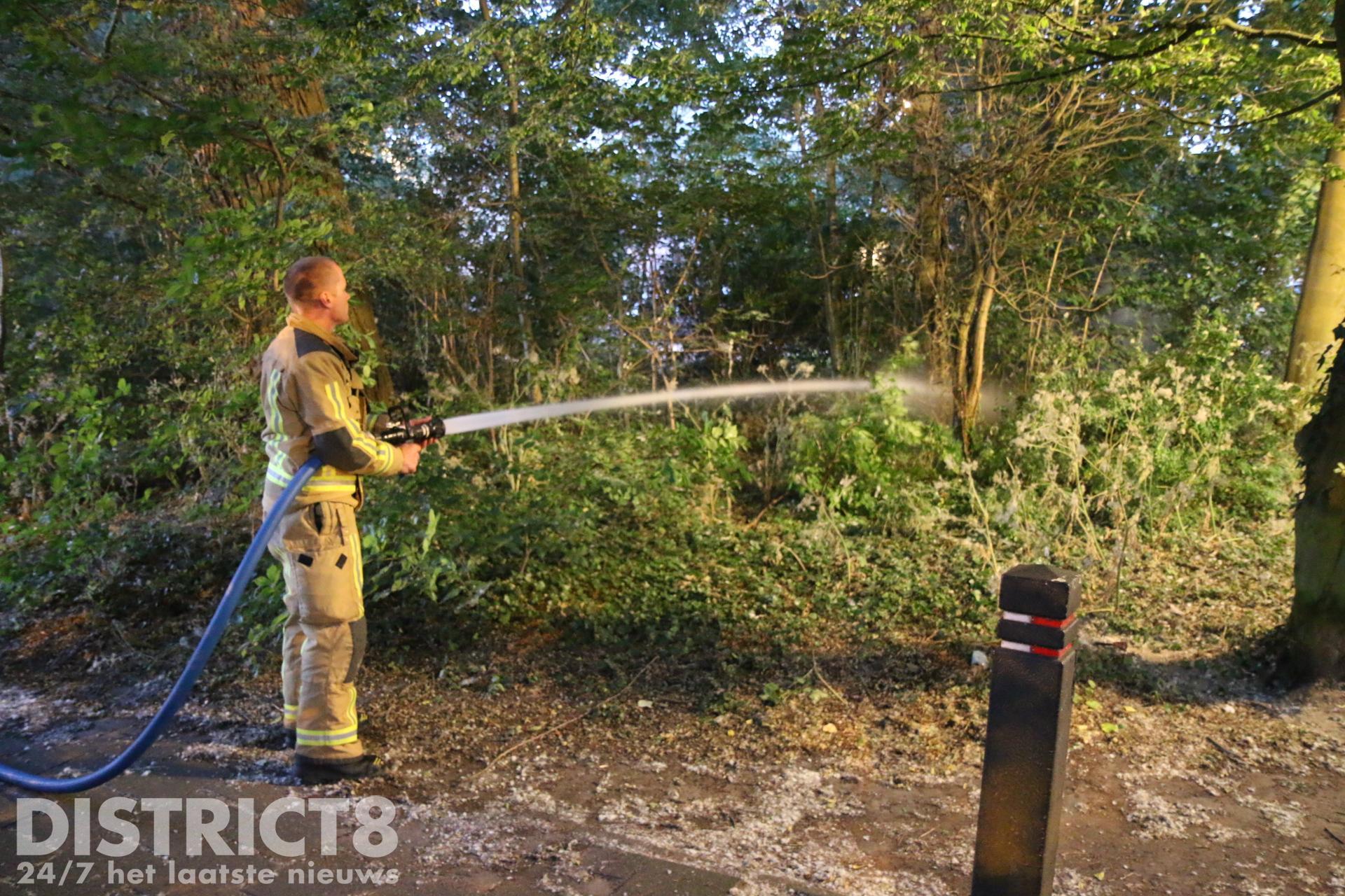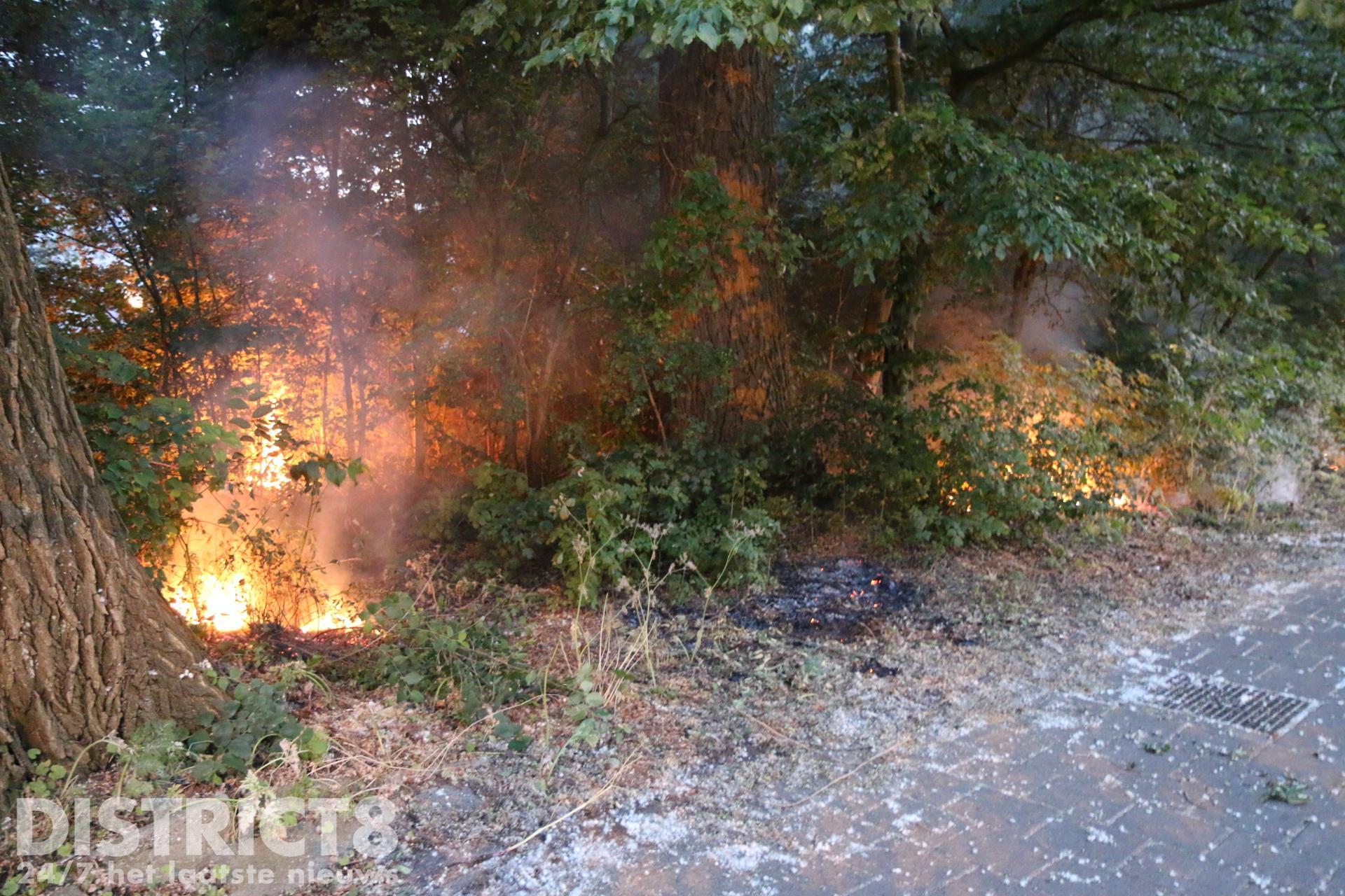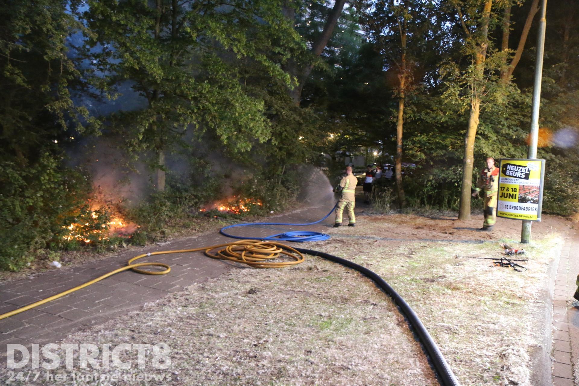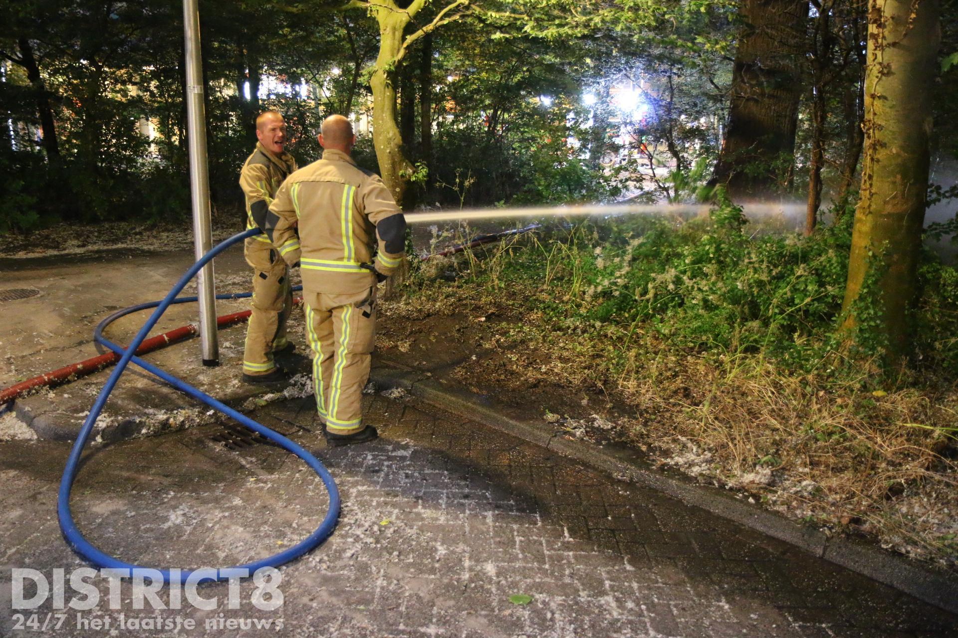 Brandweer blust meerdere brandjes in bossage Pierre Van Hauwelaan Delft