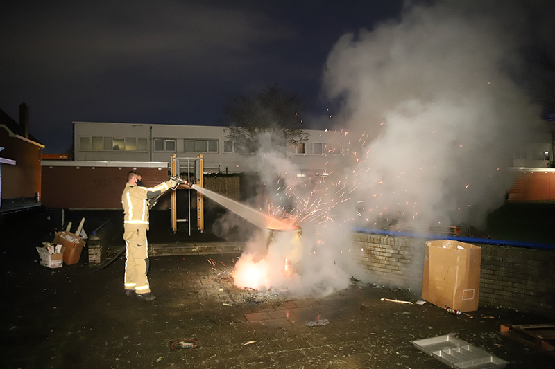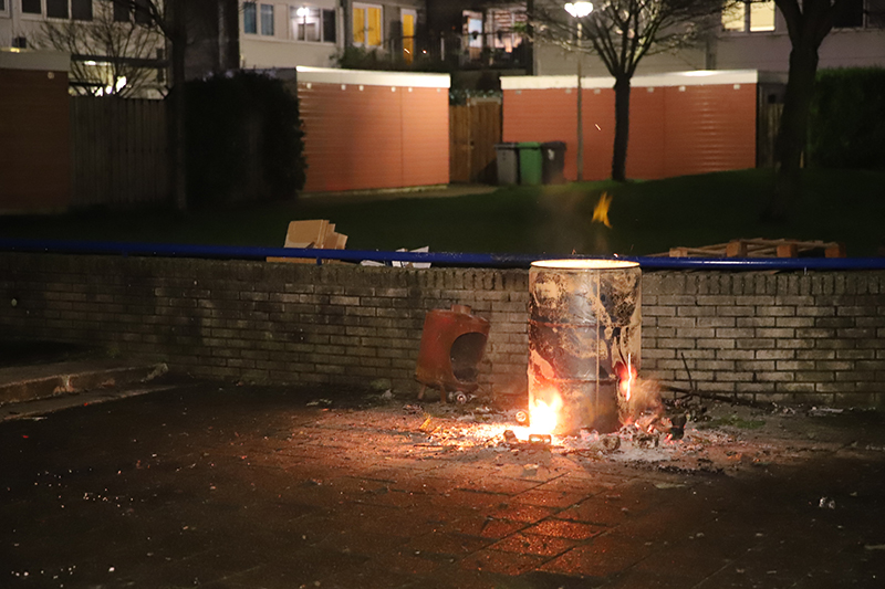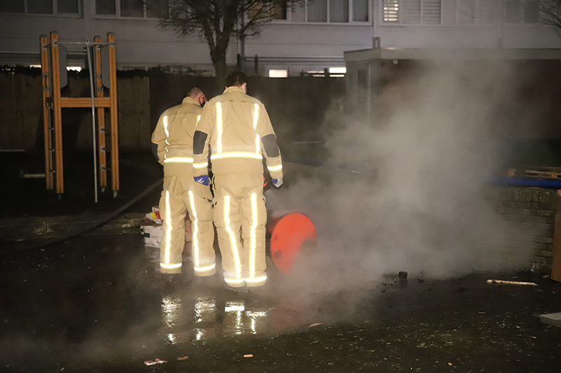 Delft – De brandweer van Delft heeft woensdagavond 30 december een brandende vuurton geblust op een pleintje aan de Billitonstraat in Delft. Dit ging onder toeziend oog van de politie.
