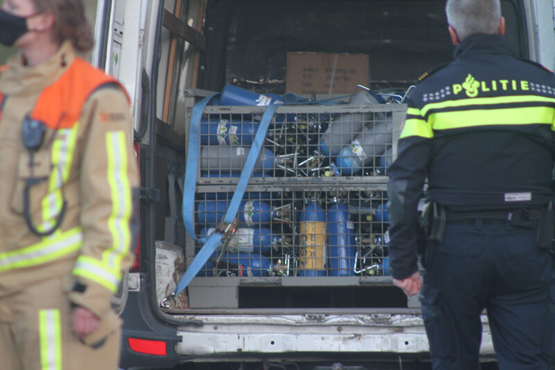 De politie gaf aan de Elzenlaan een busje een stopteken, nadat de politie een onderzoek instelde troffen hun in de laadruimte meerdere lachgas flessen aan. De politie vertrouwde de situatie niet en heeft de hulp van de brandweer ingeroepen.