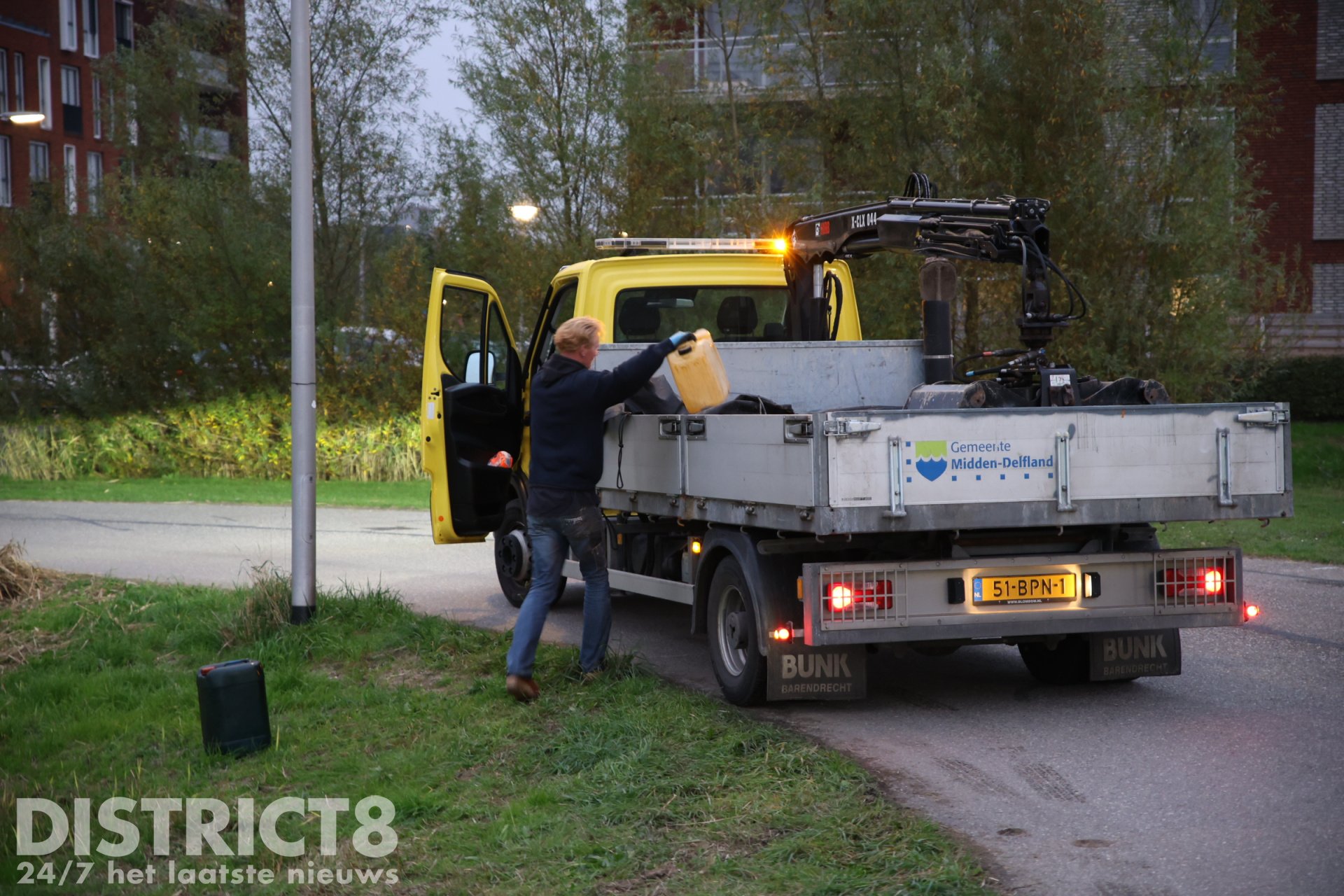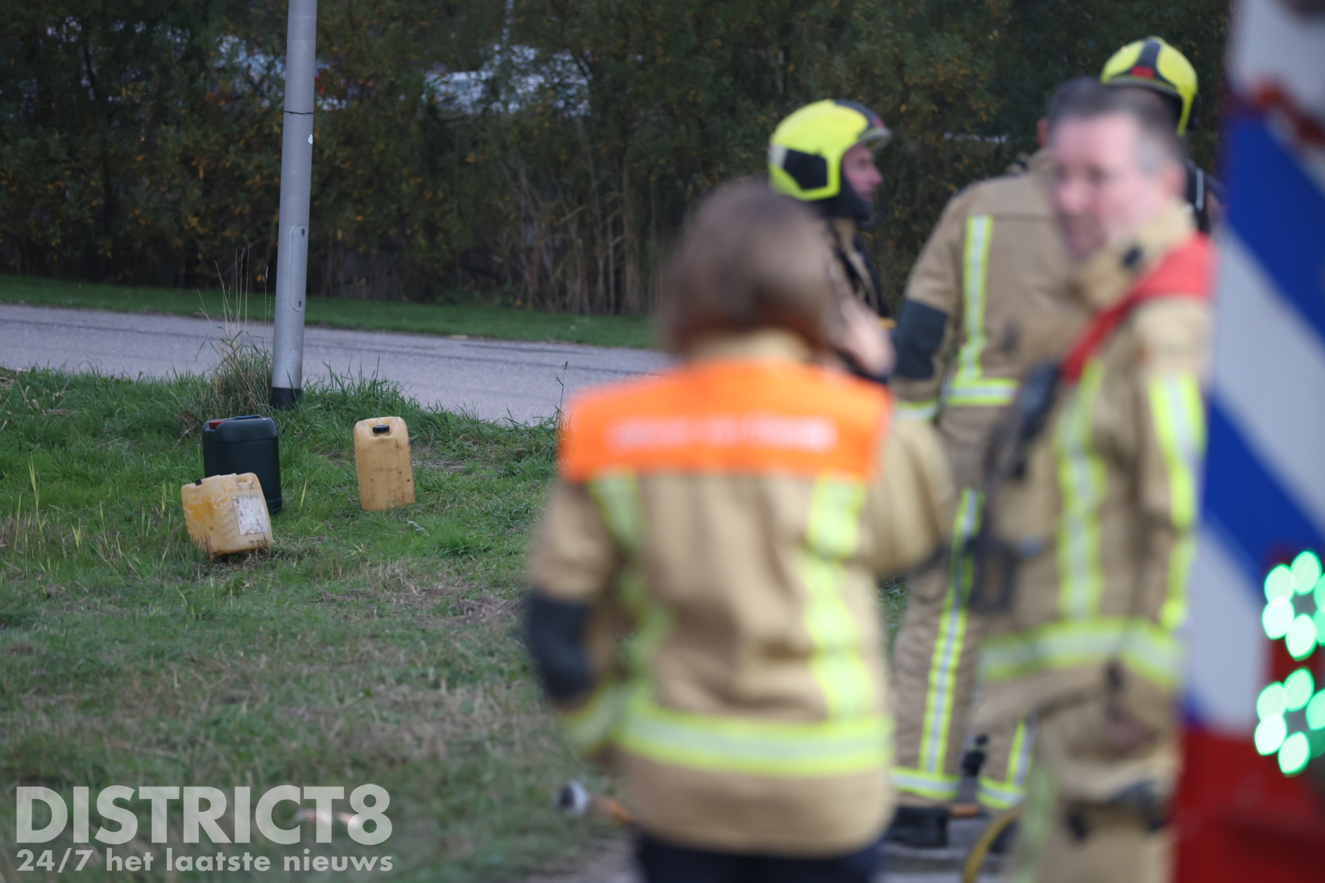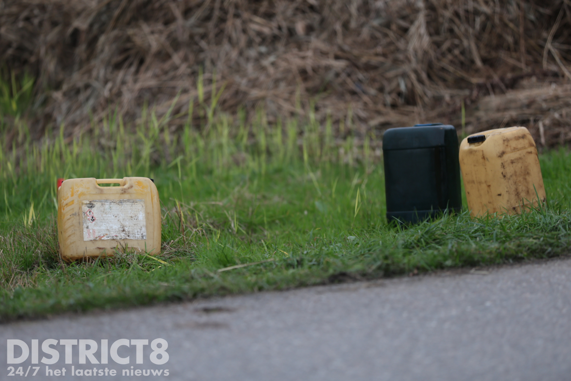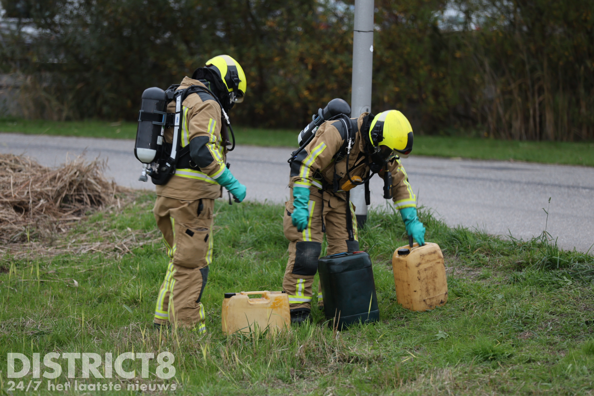 Uit nader onderzoek blijkt er van gevaarlijke stoffen geen sprake, de brandweer gaat weer inpakken en de gemeente zorgt dat de jerrycans op de juiste wijze worden afgevoerd.