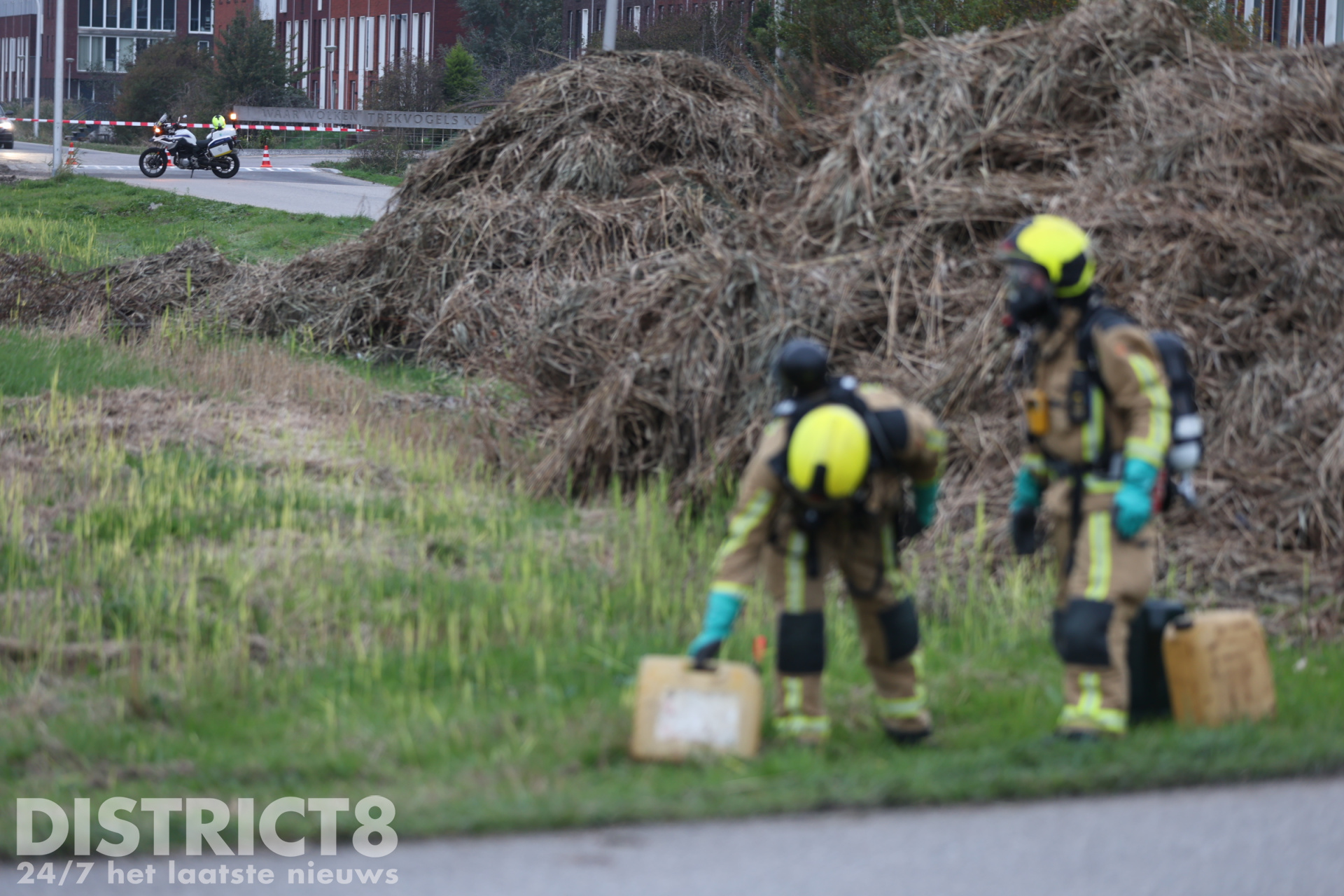 Brandweermannen met ademlucht hebben rondom de jerrycans onderzoek gedaan, hieruit bleek dat twee van de jerrycans leeg zijn. De brandweer wacht op hun Adviseur Gevaarlijke Stoffen om ander onderzoek te doen naar de inhoud.