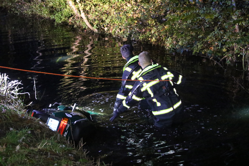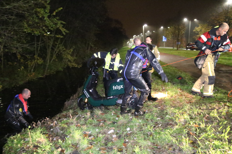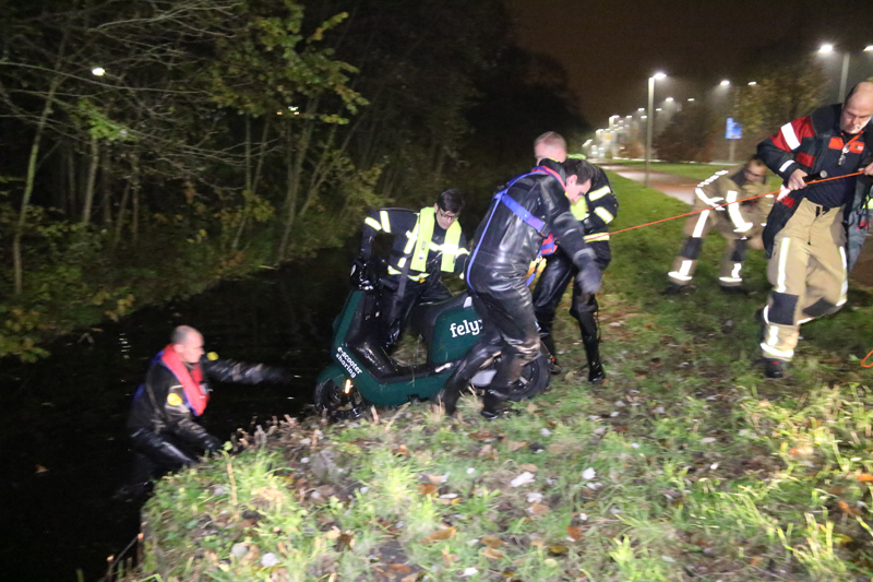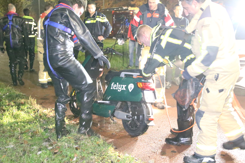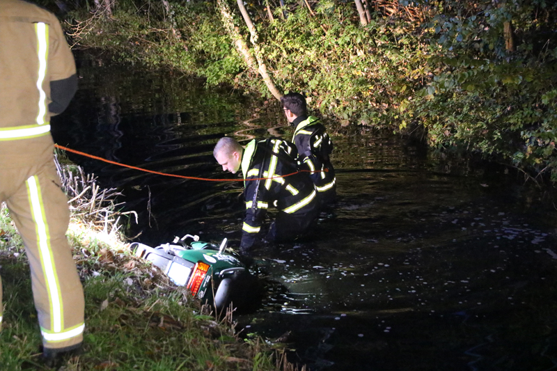 De scooter stond al enige tijd langs de weg, en is waarschijnlijk door iemand in het water gegooid.