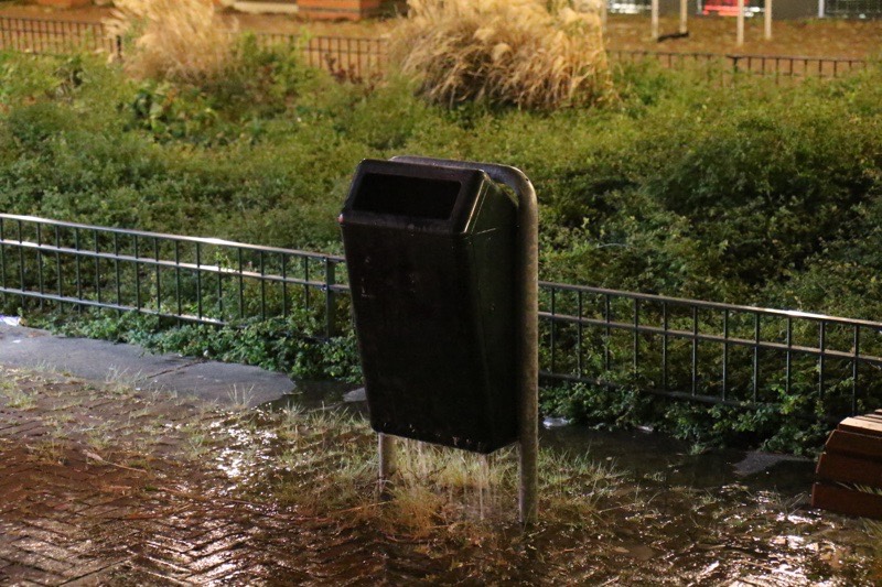 Toen de brandweer net weer retour ging richting de kazerne werd er aan de andere zijde van het Slachthuisplein een andere brand ontdekt. Het bleek te gaan om een prullenbak.