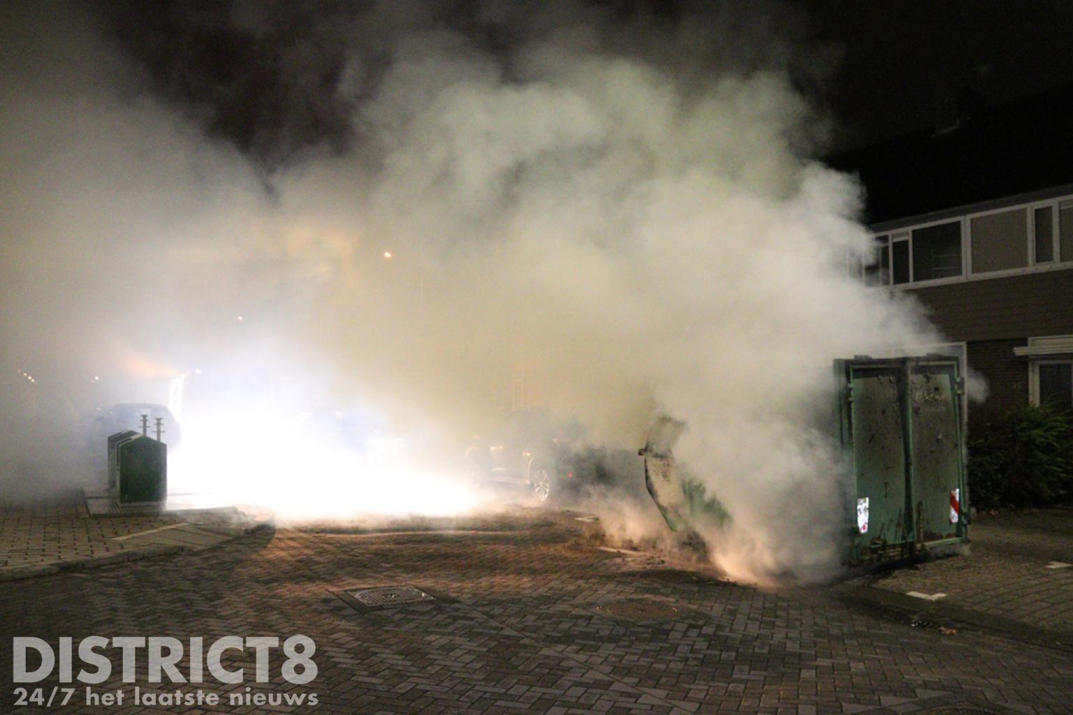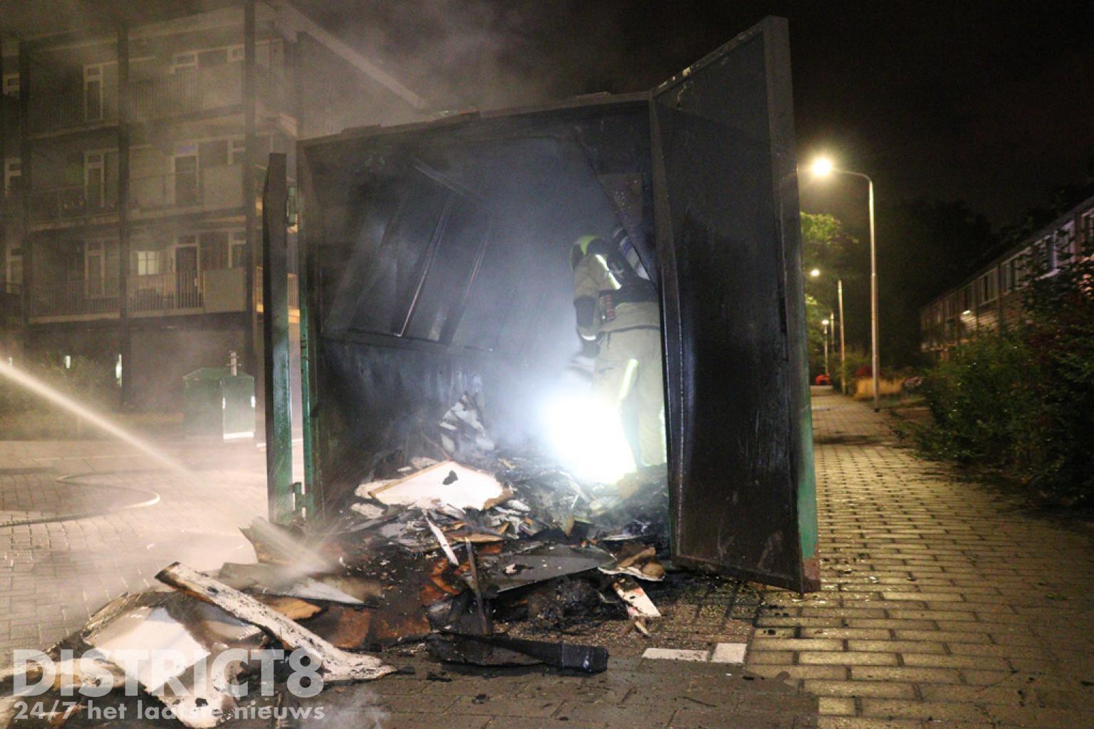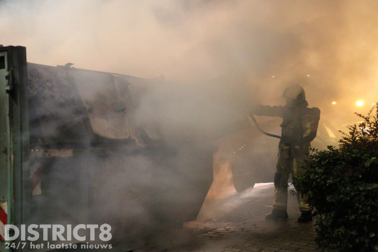 De brandweerlieden hadden hier iets langer nodig om de brand onder controle te krijgen, ook vanwege de toevoer van het water gezien de vorige brand. Nadat eenmaal genoeg watervoorziening was opgebouwd en de deuren van de bouwcontainer werden geopend kon het vuur snel gedoofd worden. De politie heeft met meerdere eenheden in de wijk gezocht naar verdachte personen, voor zover bekend is er (nog) niemand aangehouden.