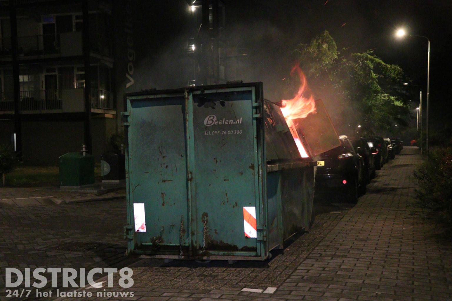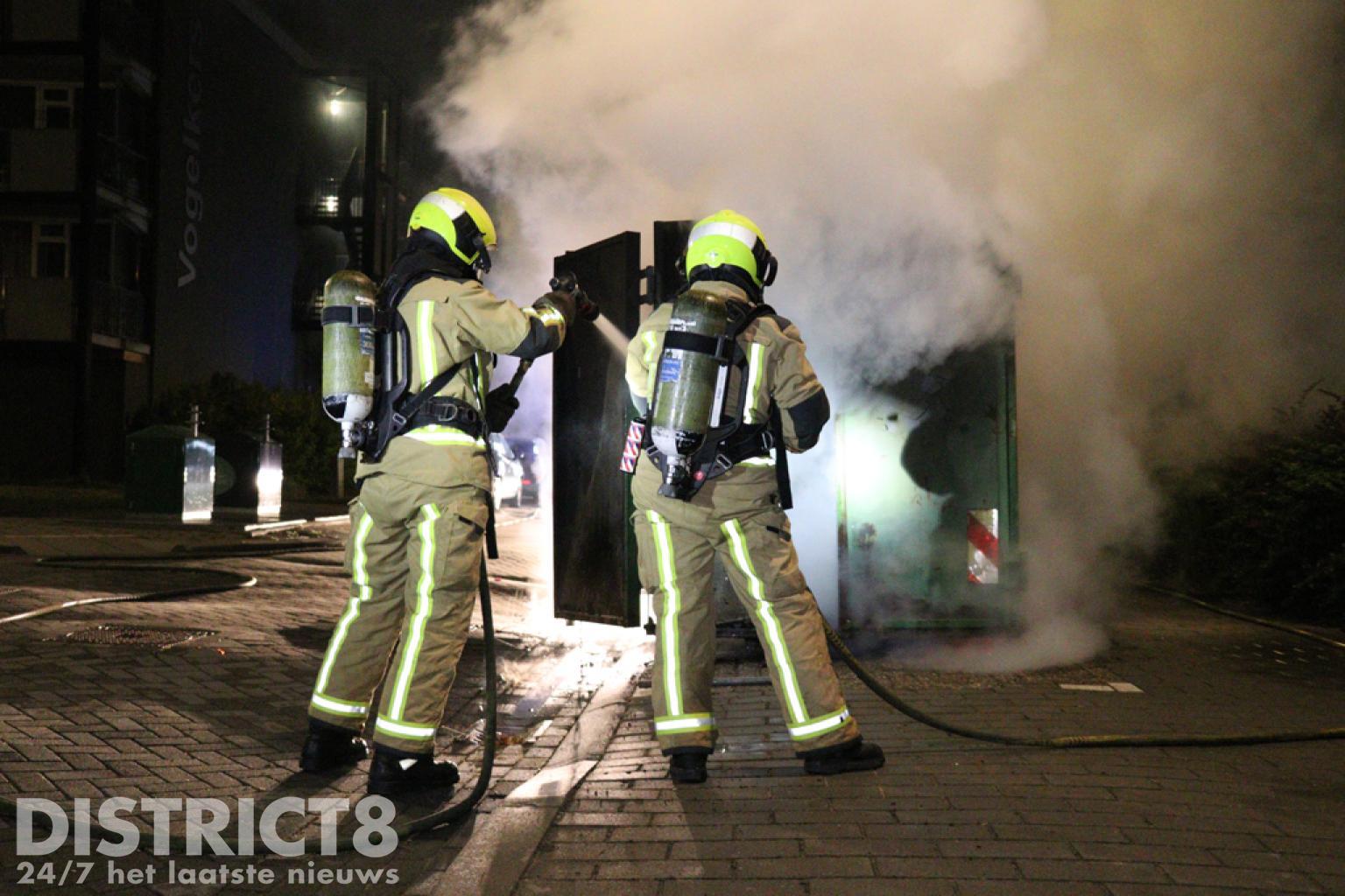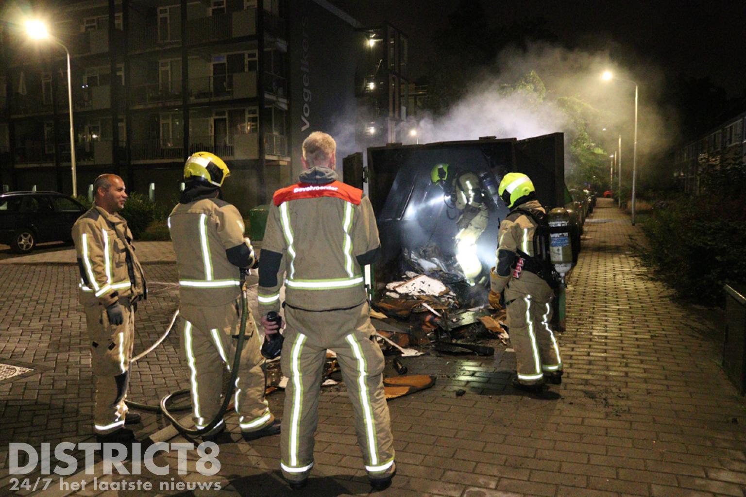 De brandweerlieden hadden hier iets langer nodig om de brand onder controle te krijgen, ook vanwege de toevoer van het water gezien de vorige brand. Nadat eenmaal genoeg watervoorziening was opgebouwd en de deuren van de bouwcontainer werden geopend kon het vuur snel gedoofd worden. De politie heeft met meerdere eenheden in de wijk gezocht naar verdachte personen, voor zover bekend is er (nog) niemand aangehouden.