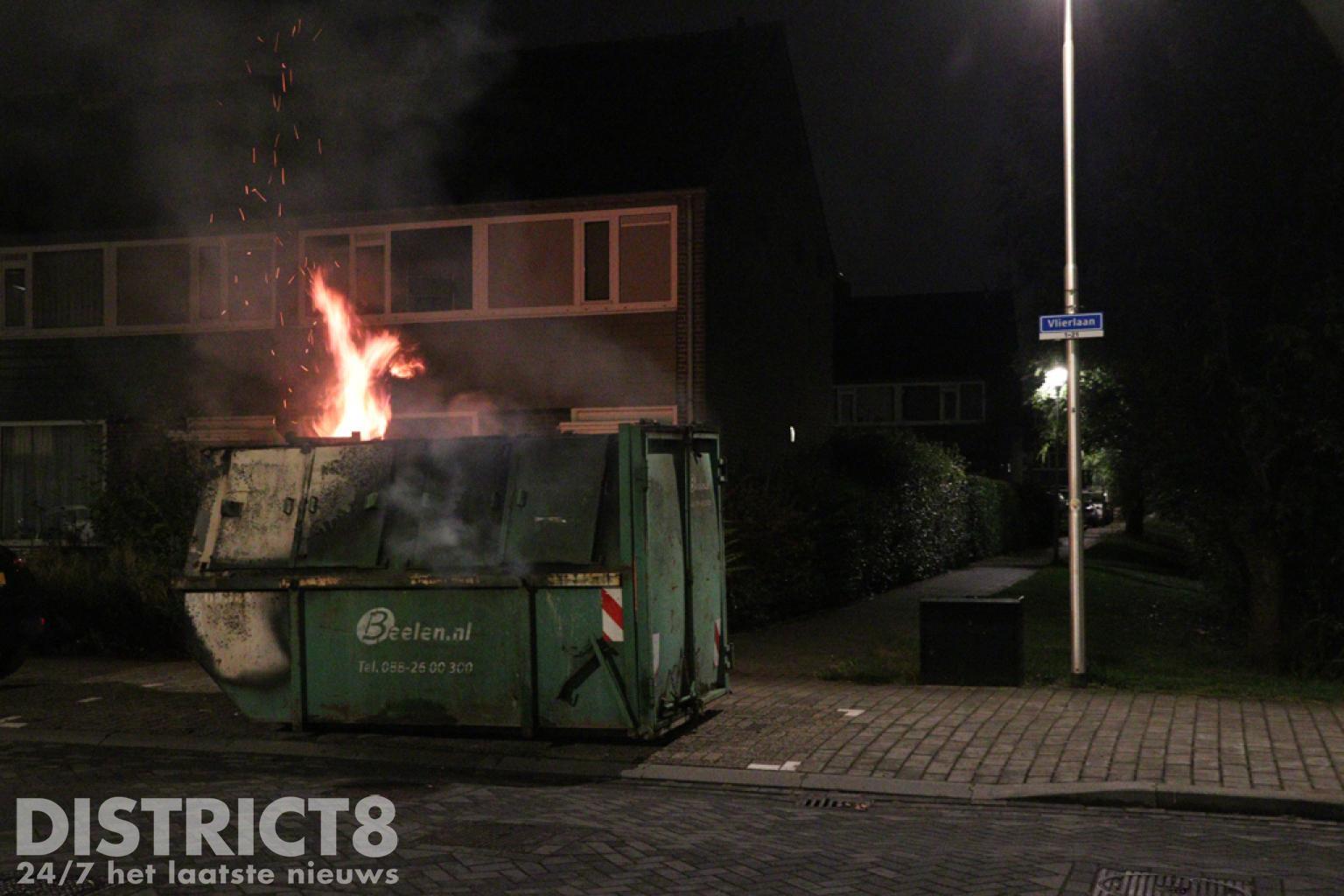 Terwijl zij bezig waren met het nablussen van de brand kwam een buurtbewoner langs om te melden dat er nog een brand was, enkele straten verderop. Aan de Vlierlaan in Pijnacker stond de inhoud van een bouwcontainer volledig in brand. De brandweer kwam met spoed ter plaatse. Bij aankomst stond de gehele straat al vol met rook.