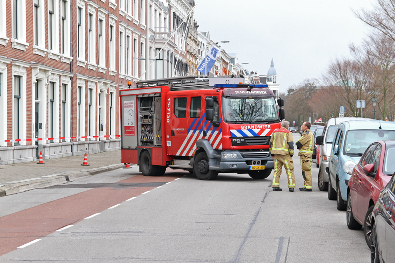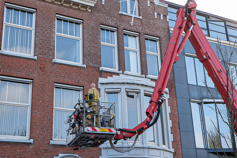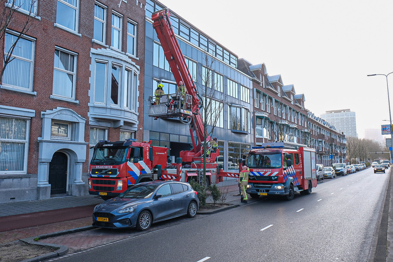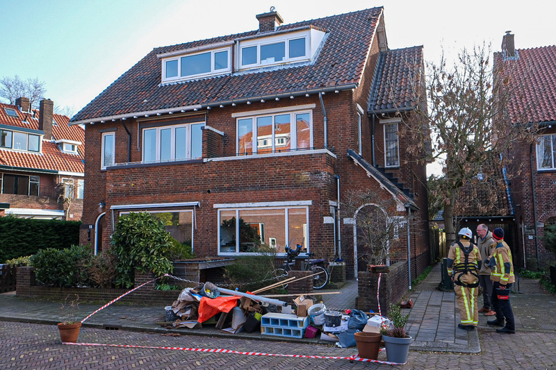 Den Haag – De brandweer heeft vanmorgen een aantal losse stenen uit de muur gehaald van een gebouw aan de Raamweg.