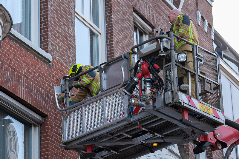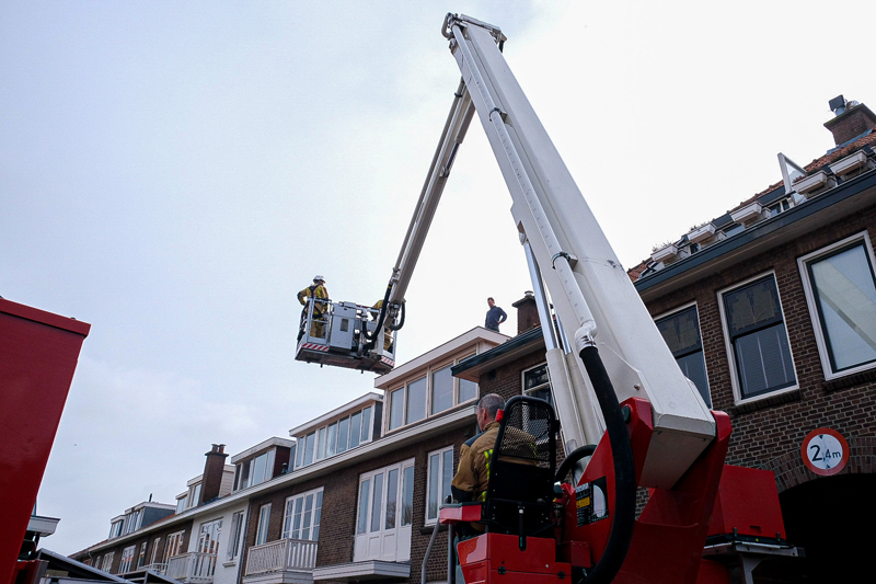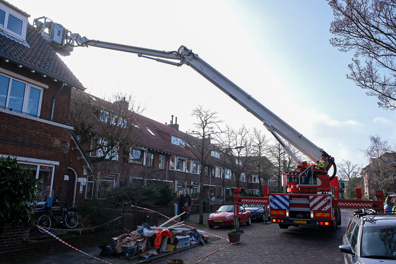 Door de harde wind waren er een aantal dakpannen naar beneden gekomen. Door middel van het gebruik van de hoogwerker kon de brandweer uiteindelijk de losse dakpannen verwijderen.