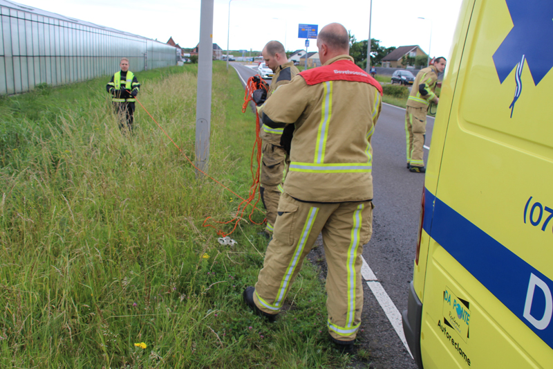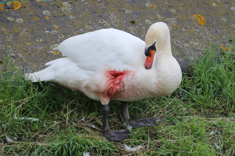 ‘s-Gravenzande – De hulpdiensten zijn zaterdagmiddag gealarmeerd voor een gewonde zwaan langs de Koningin Julianaweg. Volgens de dierenambulance lijkt het er op dat de zwaan is aangereden of ergens tegen aan is gevlogen, want hij had een nare verwonding aan zijn vleugel.