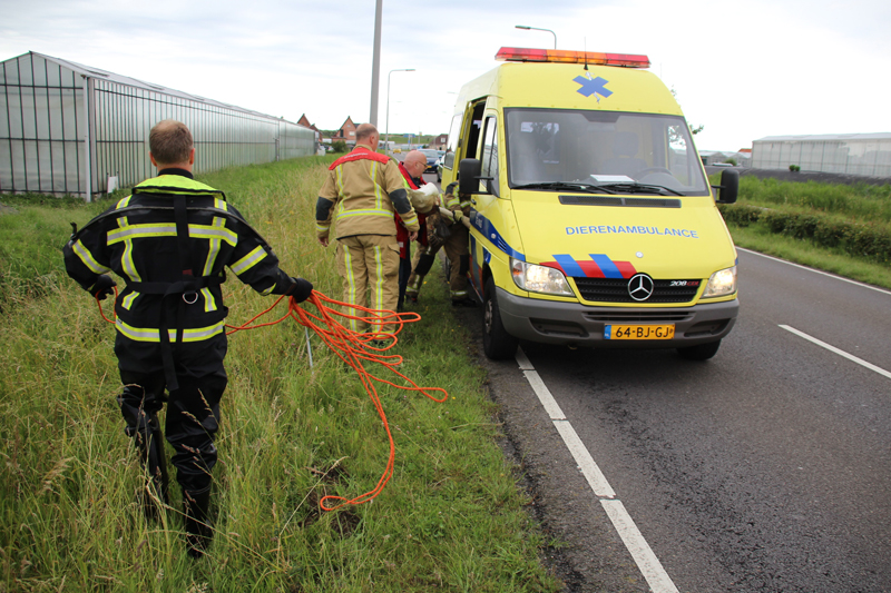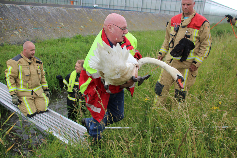 Het dier moest voor verzorging naar het vogelasiel, anders zou het leven niet meer dragelijk worden voor de zwaan. Met behulp van de brandweer van ‘s-Gravenzande is de zwaan ingesloten, waarna hij gevangen kon worden. De dierenambulance vervoerde hem naar vogelasiel De Wulp in Den Haag, alwaar de zwaan medisch onderzocht wordt en kan revalideren totdat hij weer sterk genoeg is om te vliegen. Door de inzet van de hulpdiensten was een rijbaan van de Koningin Julianaweg deels gestremd.