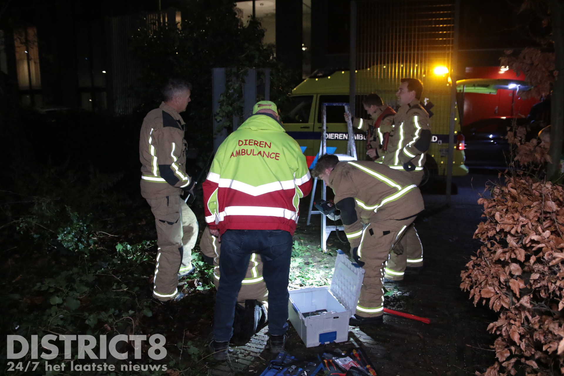 De dierenambulance heeft geprobeerd de duif te bevrijden, maar dit lukte niet. Hierop moest de brandweer ter plaatse komen. De brandweer heeft met gereedschap eerst geprobeerd een deel van het hek los te maken. Toen dit niet lukte is de spreider ingezet.